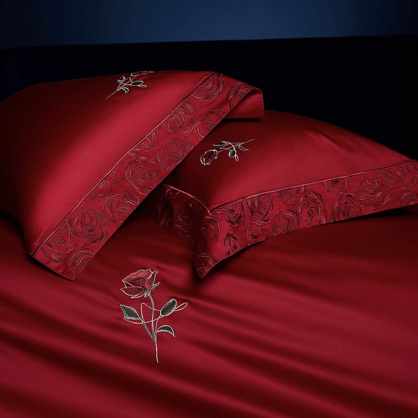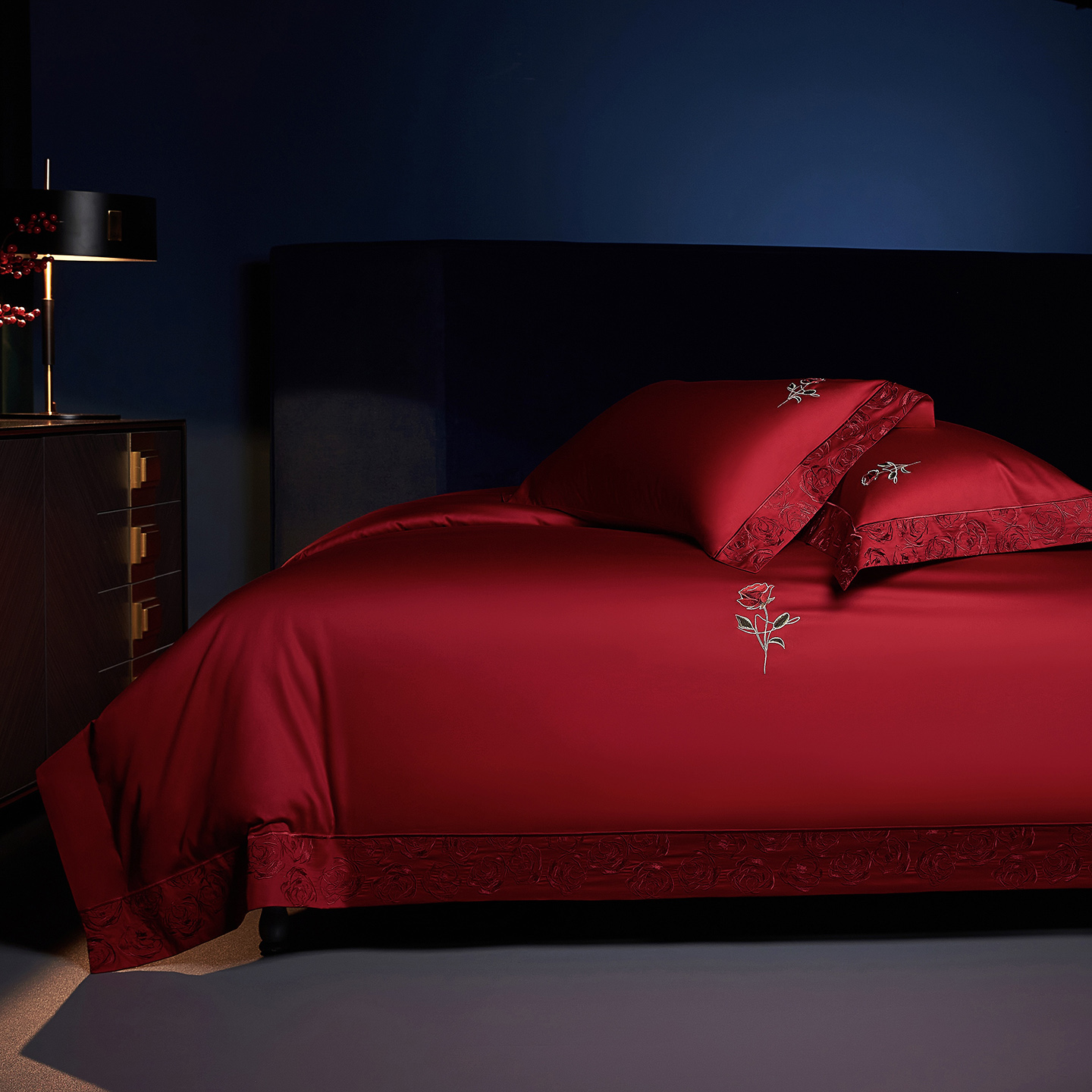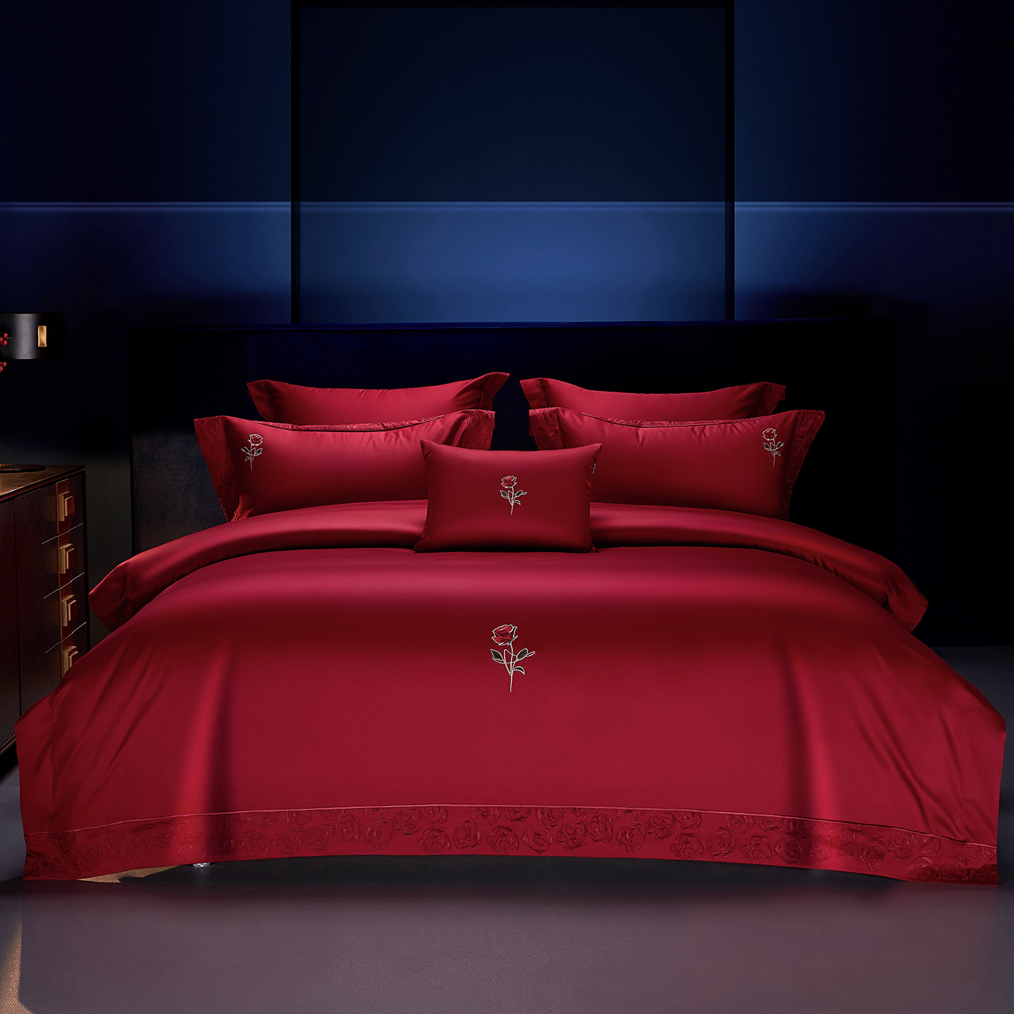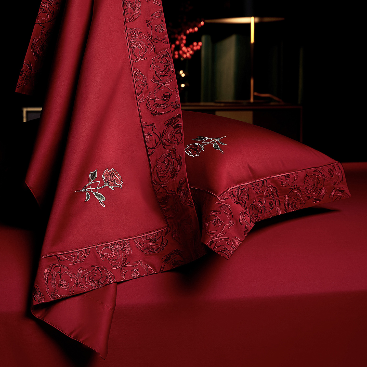 商品名称:(总)缔缦 2025新款Wedding高端婚庆60支长绒棉四件套-罗曼玫瑰