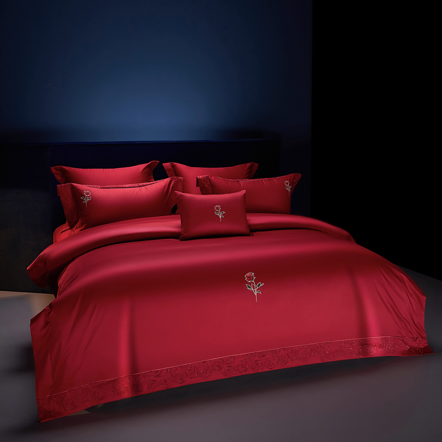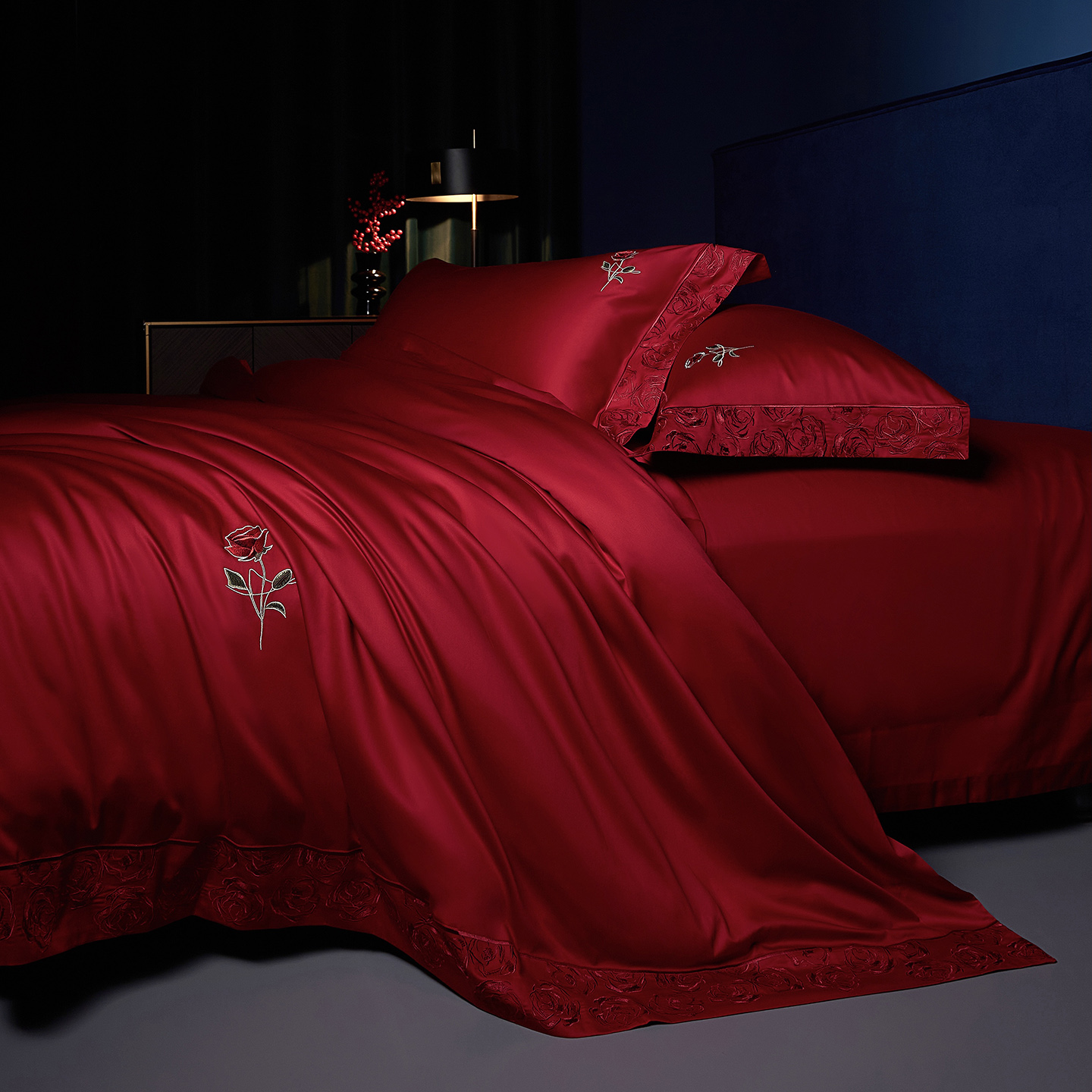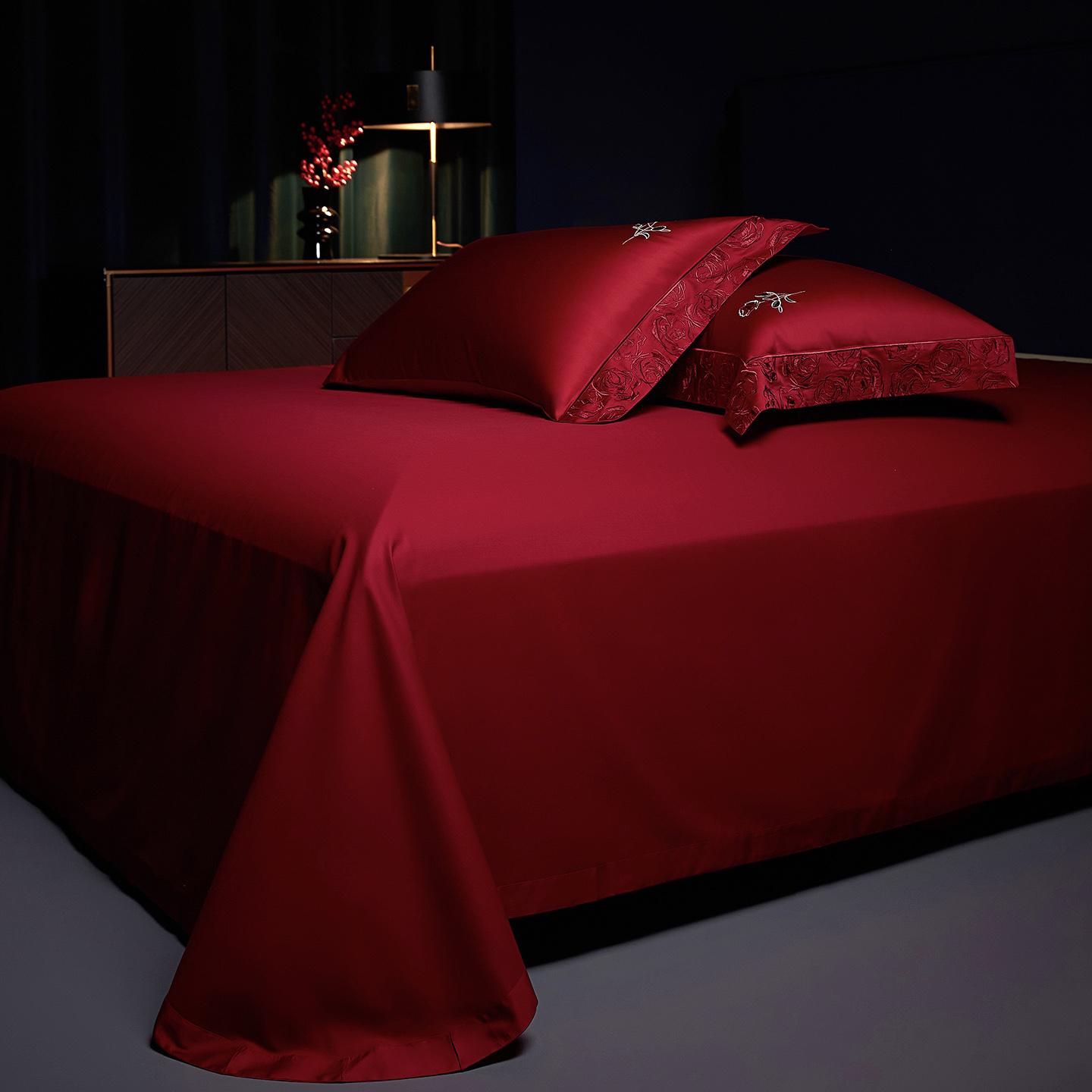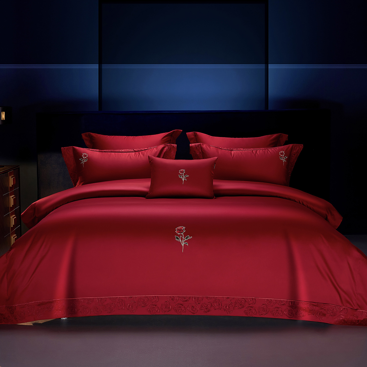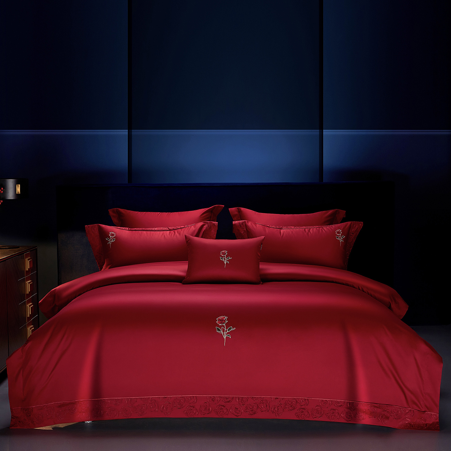 商品名称:(总)缔缦 2025新款Wedding高端婚庆60支长绒棉四件套-罗曼玫瑰