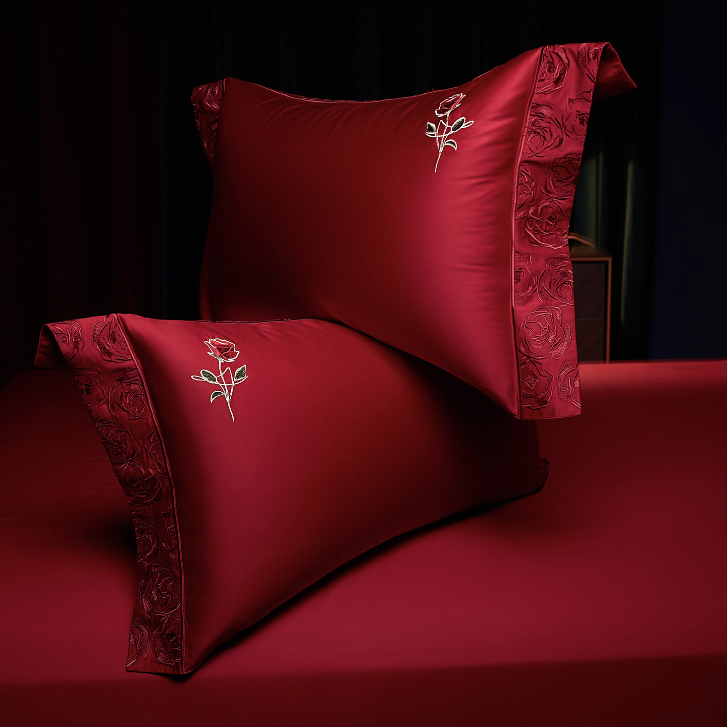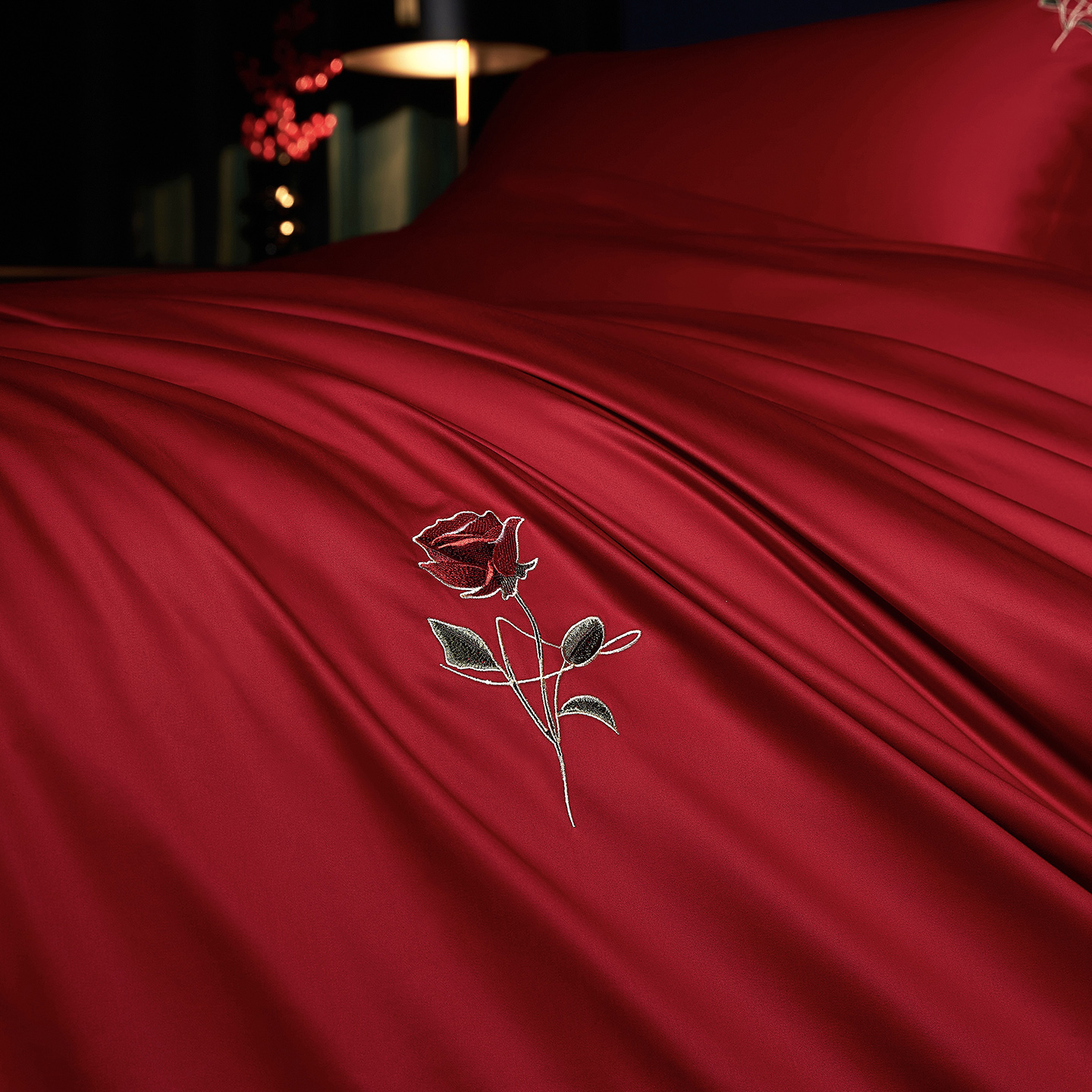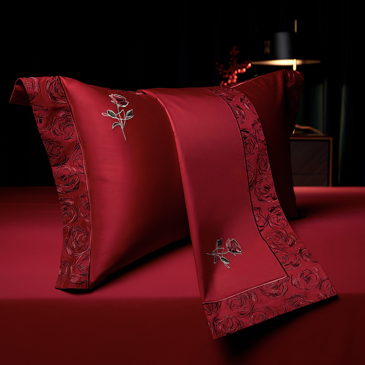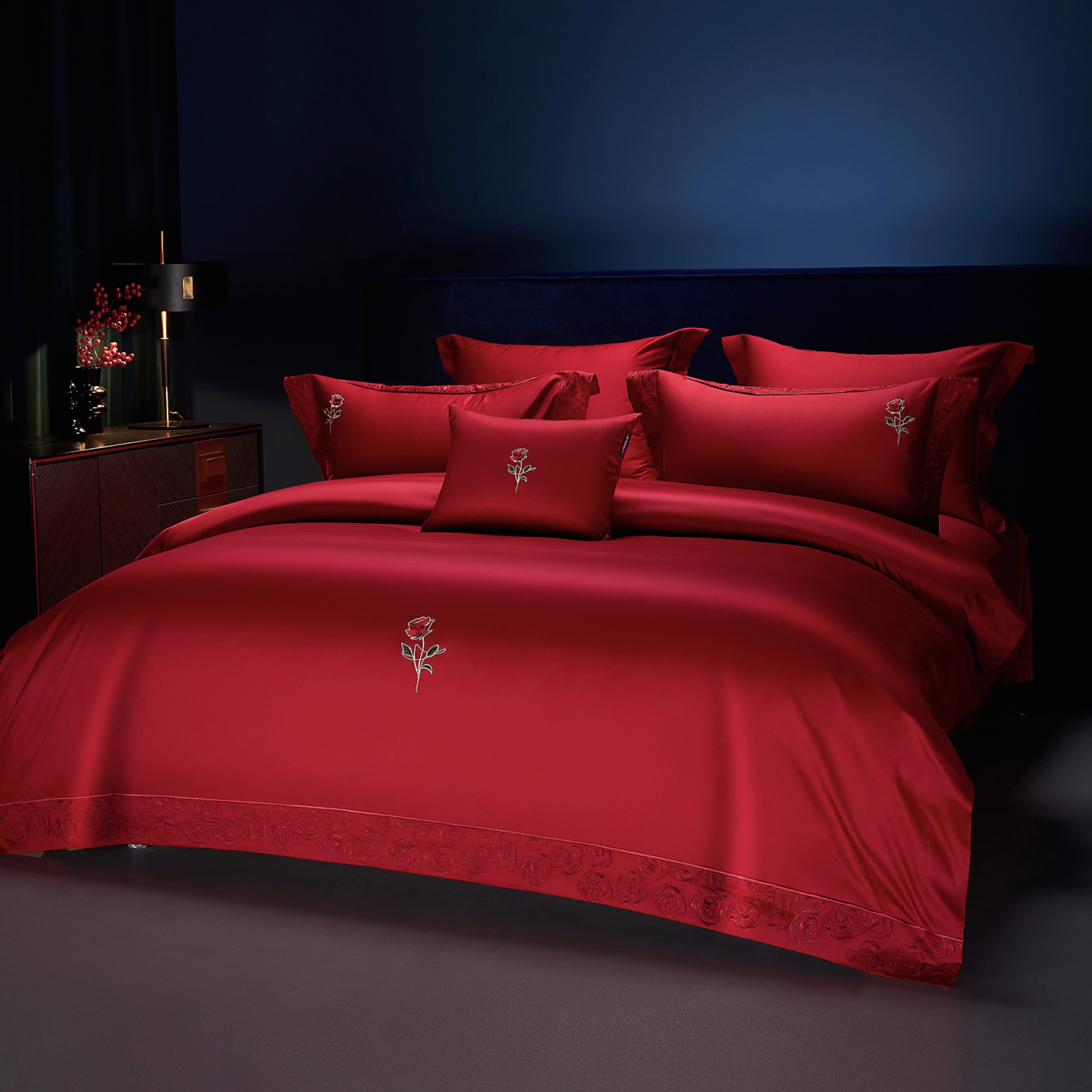 商品名称:(总)缔缦 2025新款Wedding高端婚庆60支长绒棉四件套-罗曼玫瑰