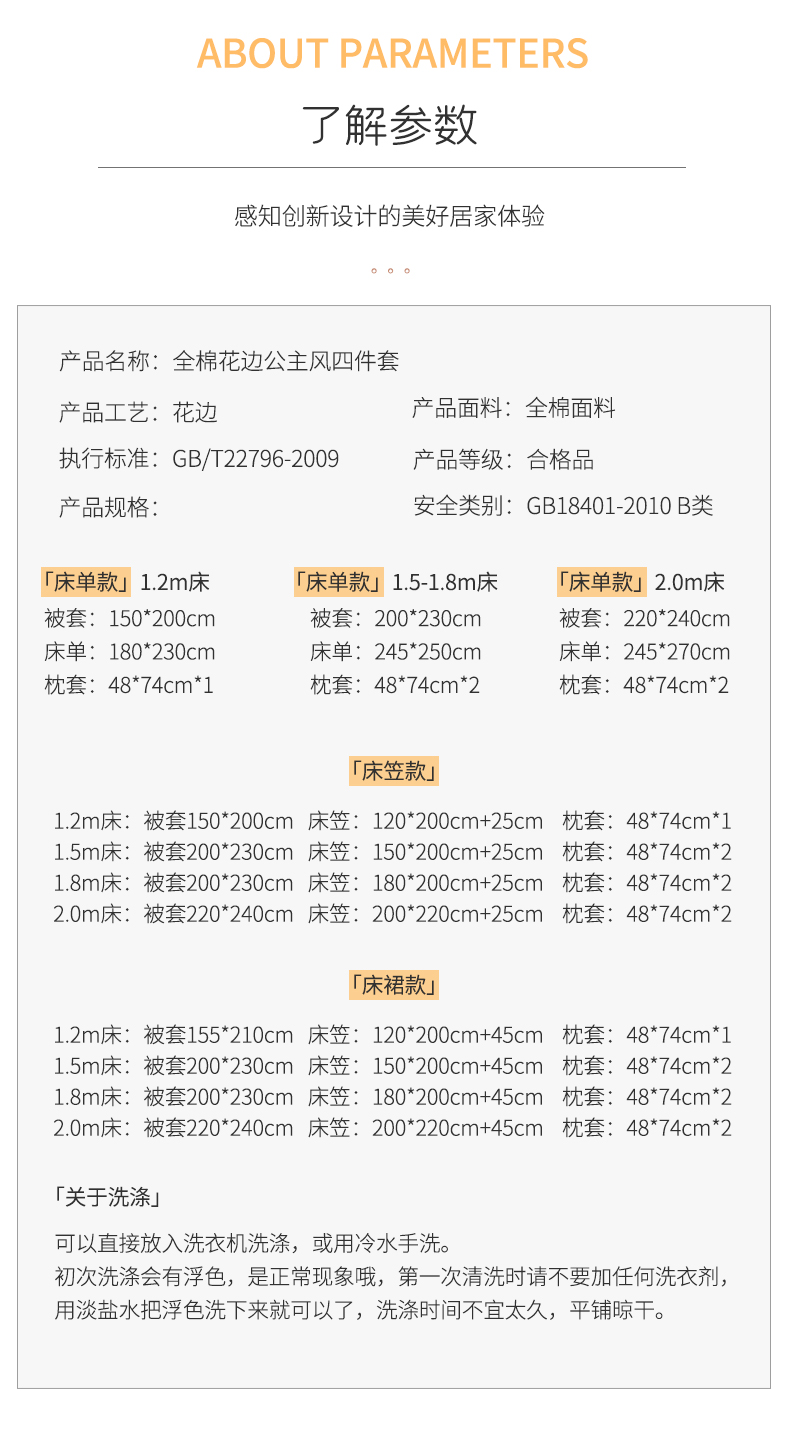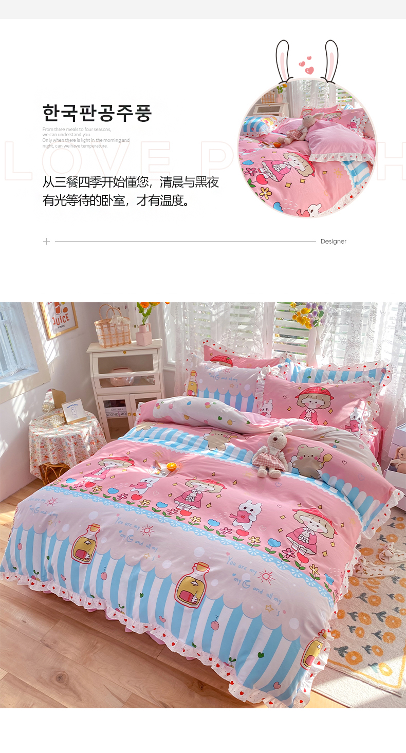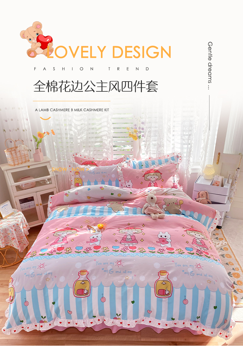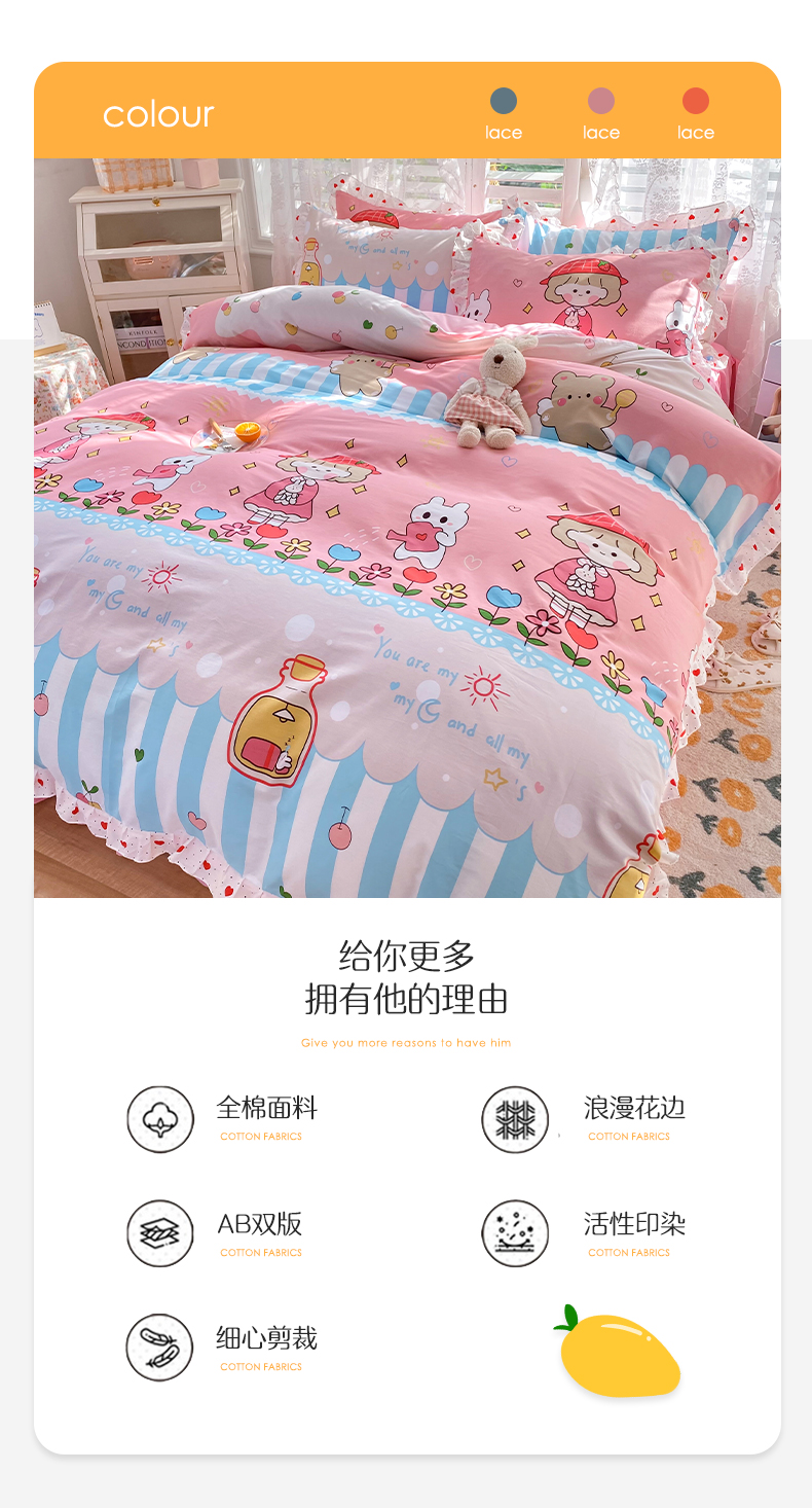 商品名称:玉元坊 2025春夏新款公主风全棉纯棉花边被套床单四件套 小公主