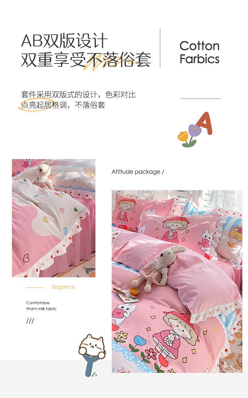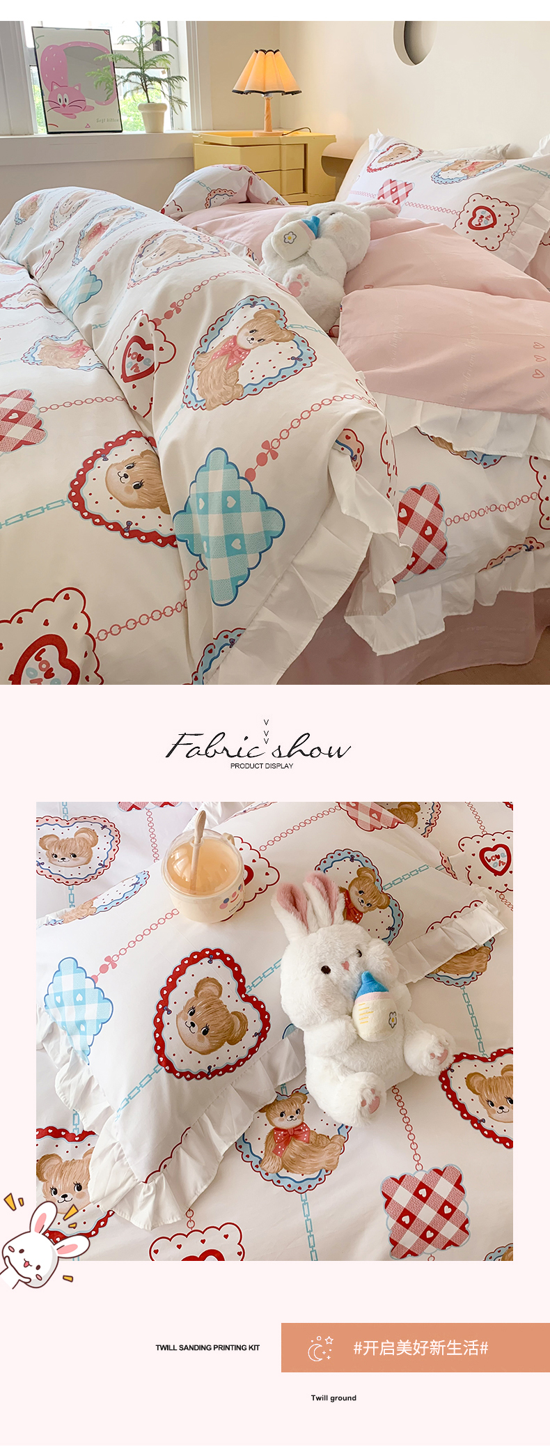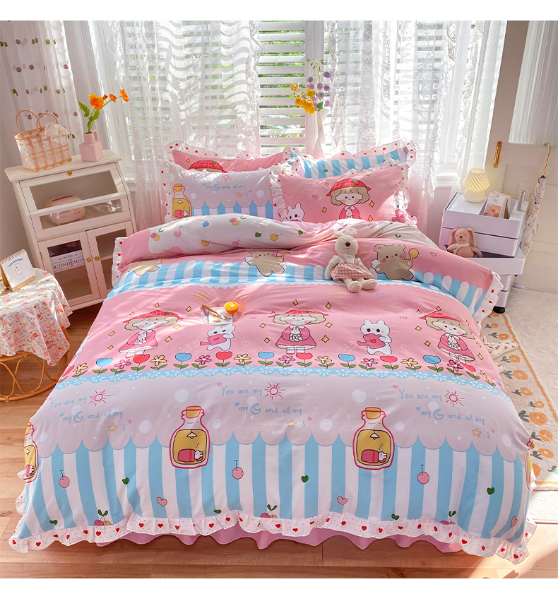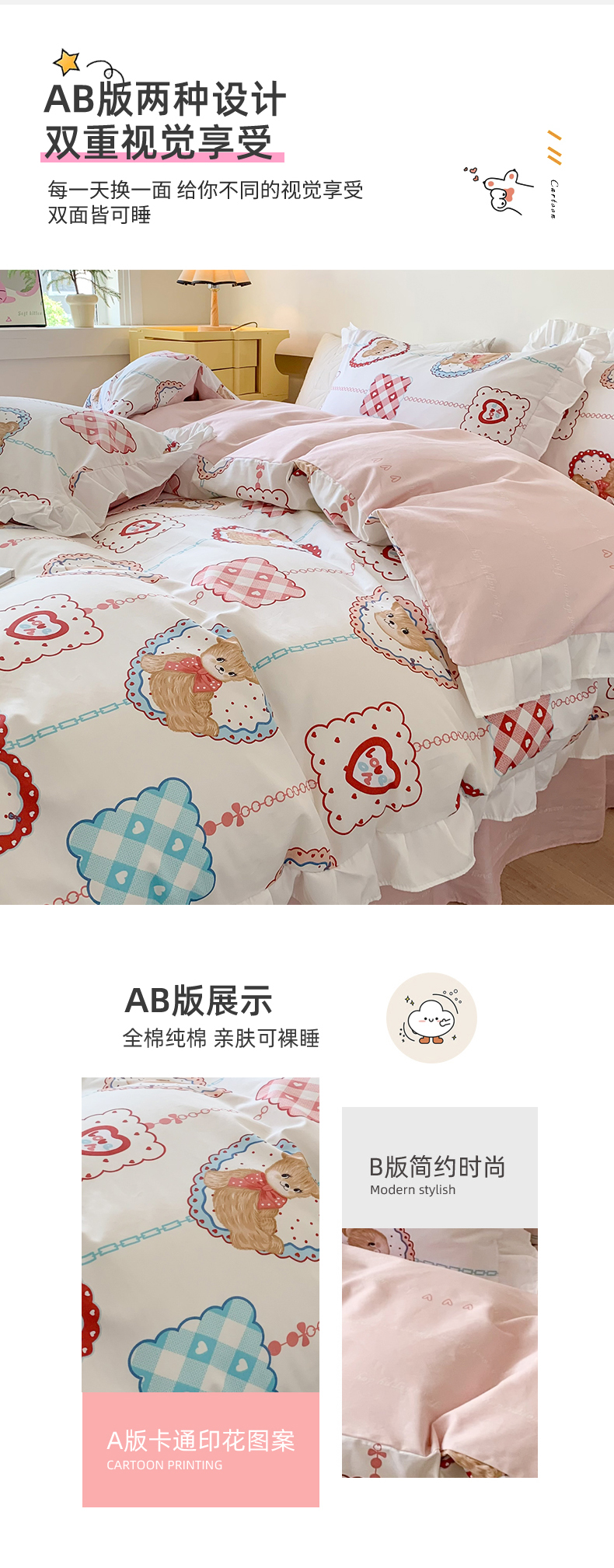 商品名称:玉元坊 2025春夏新款公主风全棉纯棉花边被套床单四件套 小公主