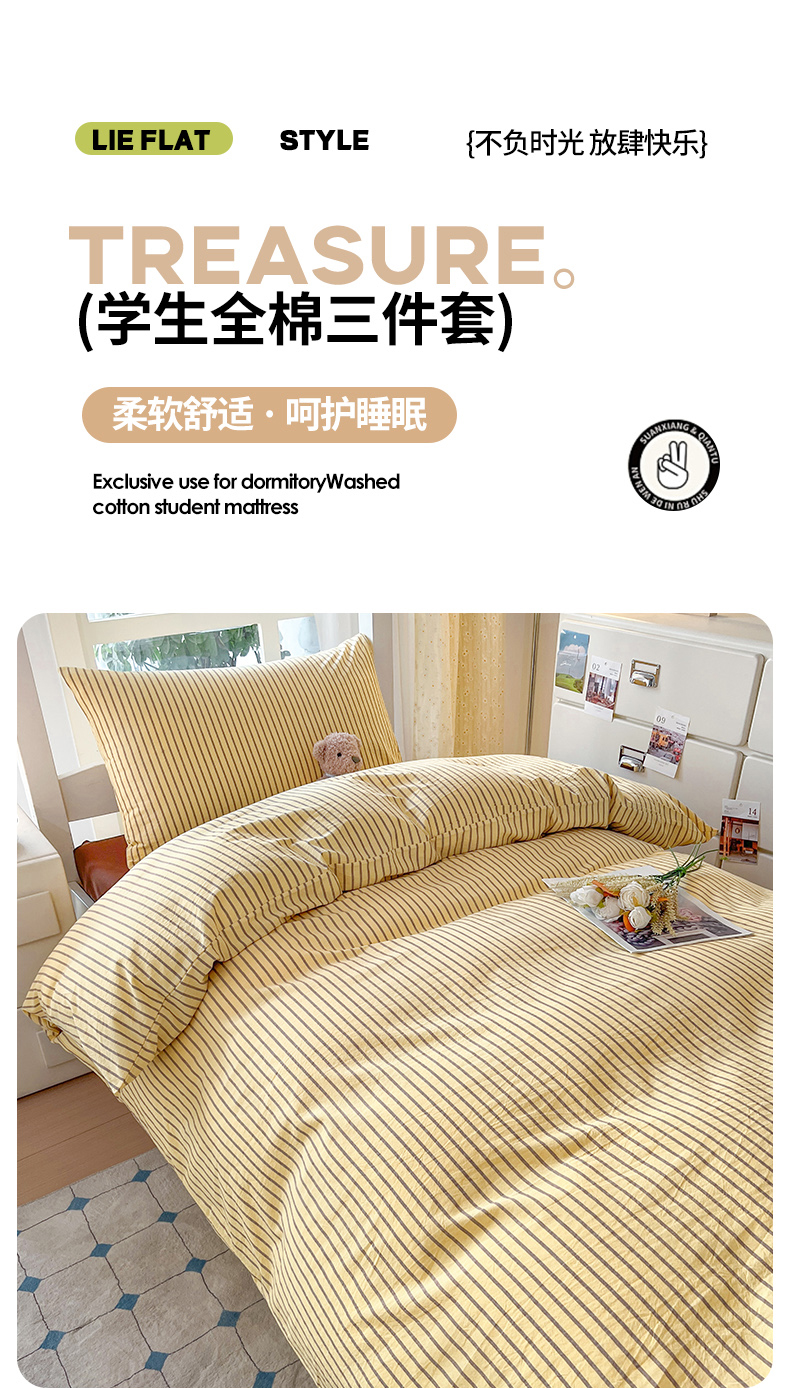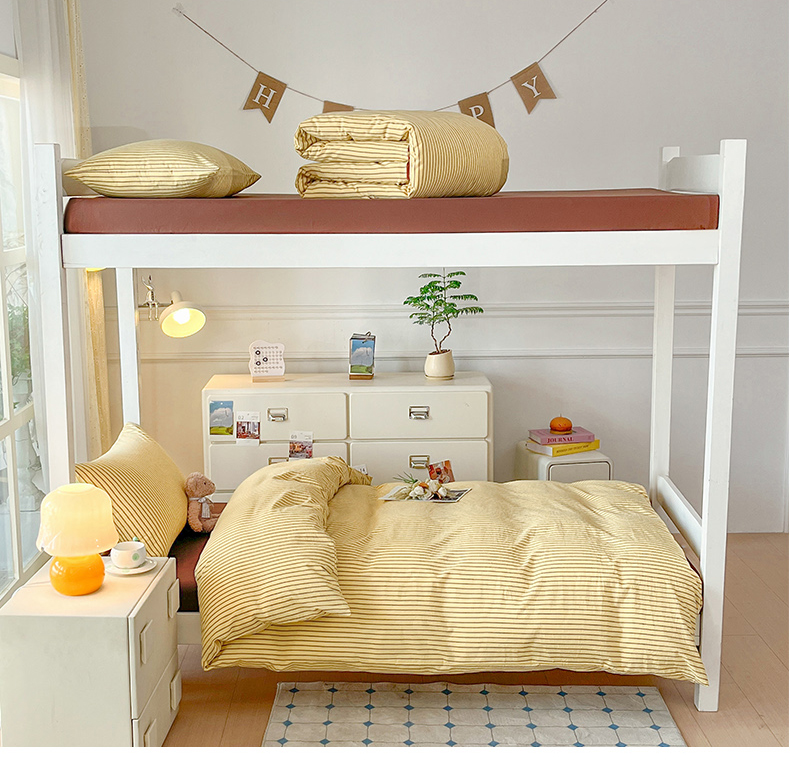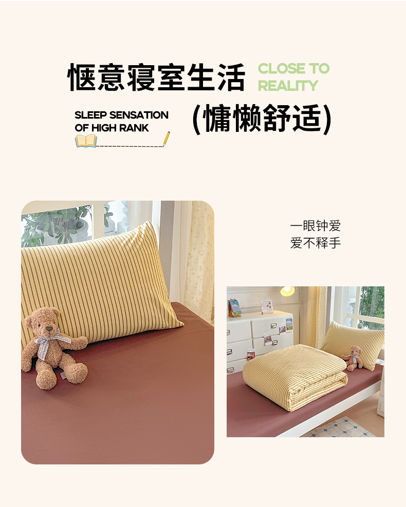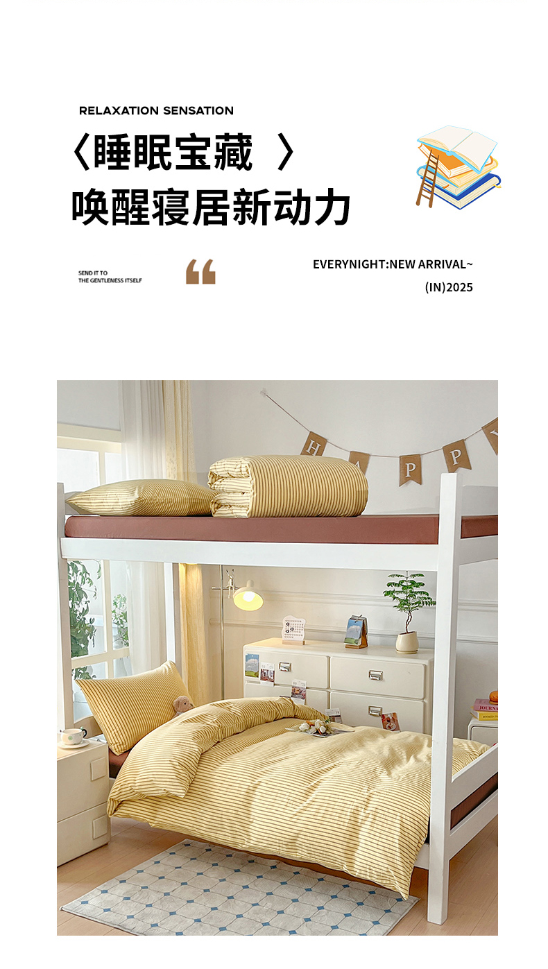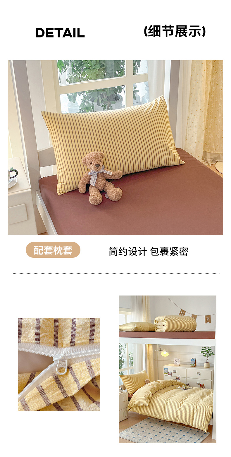 当前位置: 91家纺网 > 商品网购 > 床品套件 > 三件套 > 柠萌家居 2025年最新款学生宿舍全棉无印风A类良品宿舍上下铺三件套 黄咖条