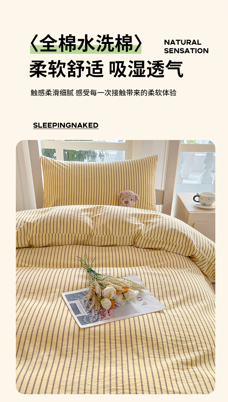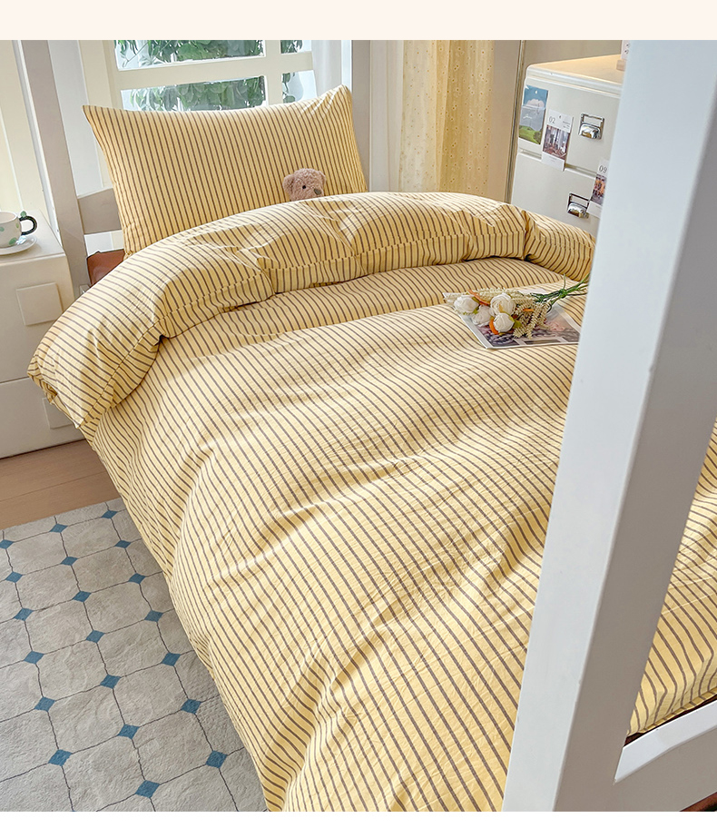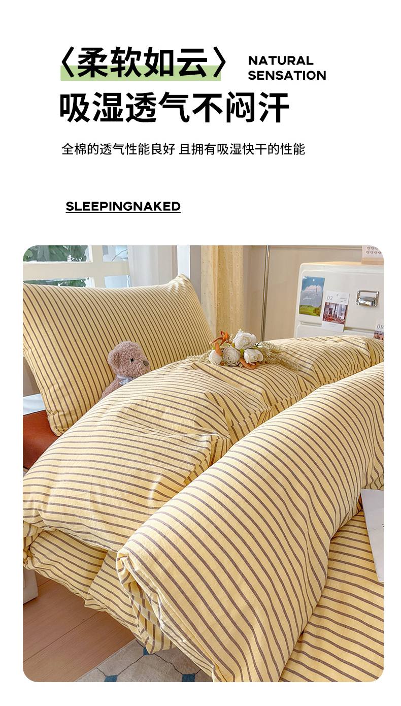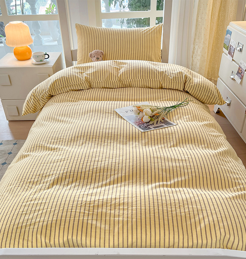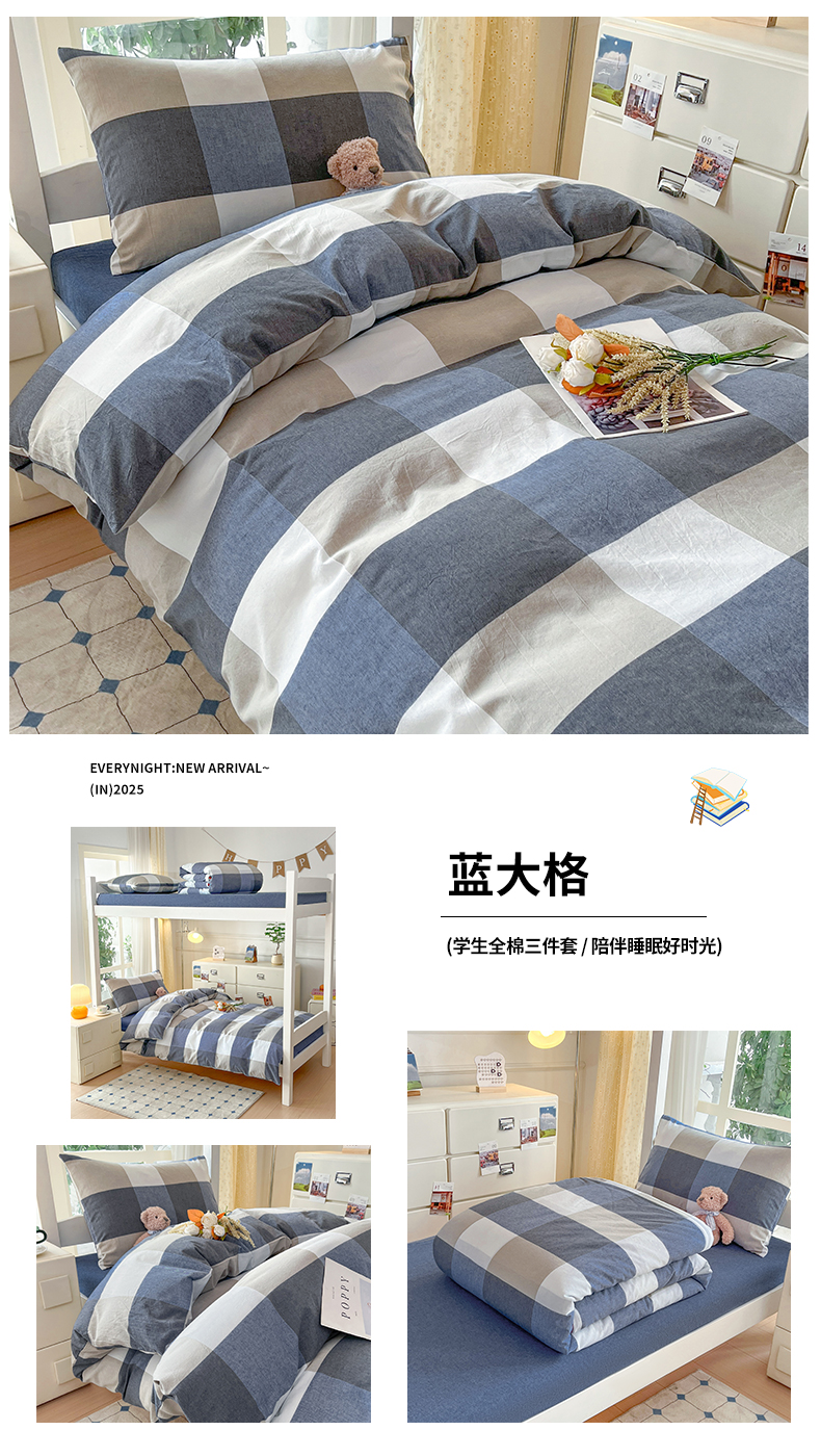 当前位置: 91家纺网 > 商品网购 > 床品套件 > 三件套 > 柠萌家居 2025年最新款学生宿舍全棉无印风A类良品宿舍上下铺三件套 黄咖条