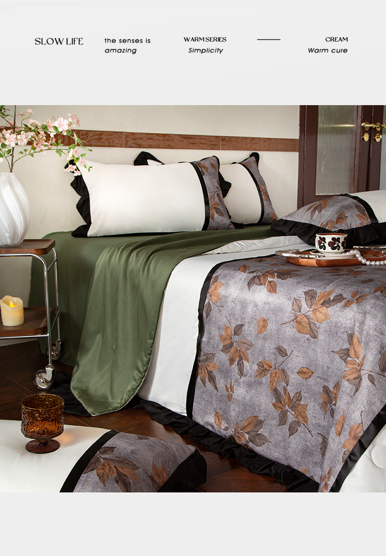 (总)富宁家纺 2025新款直播爆款水洗棉磨毛立体浮雕刺绣四件套-卡诗,橙叶子,灰叶子,粉叶子,绿叶子,蓝叶子