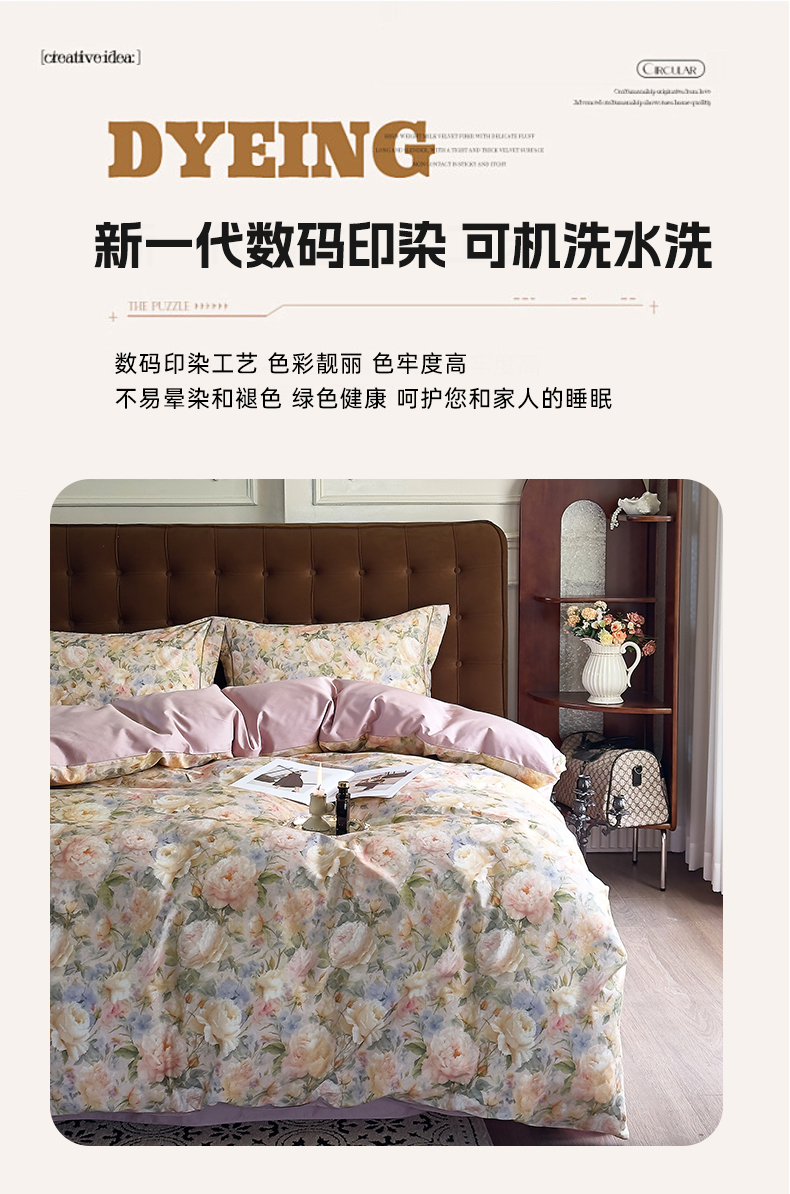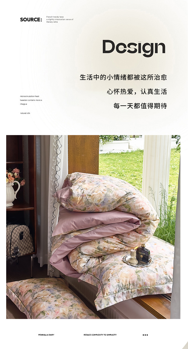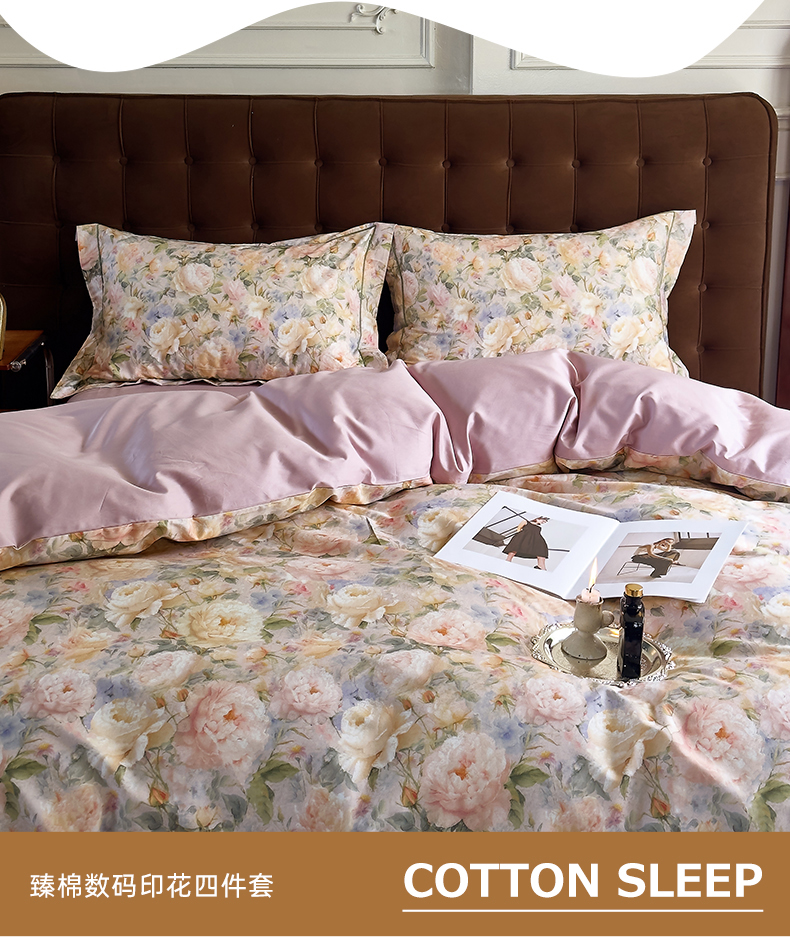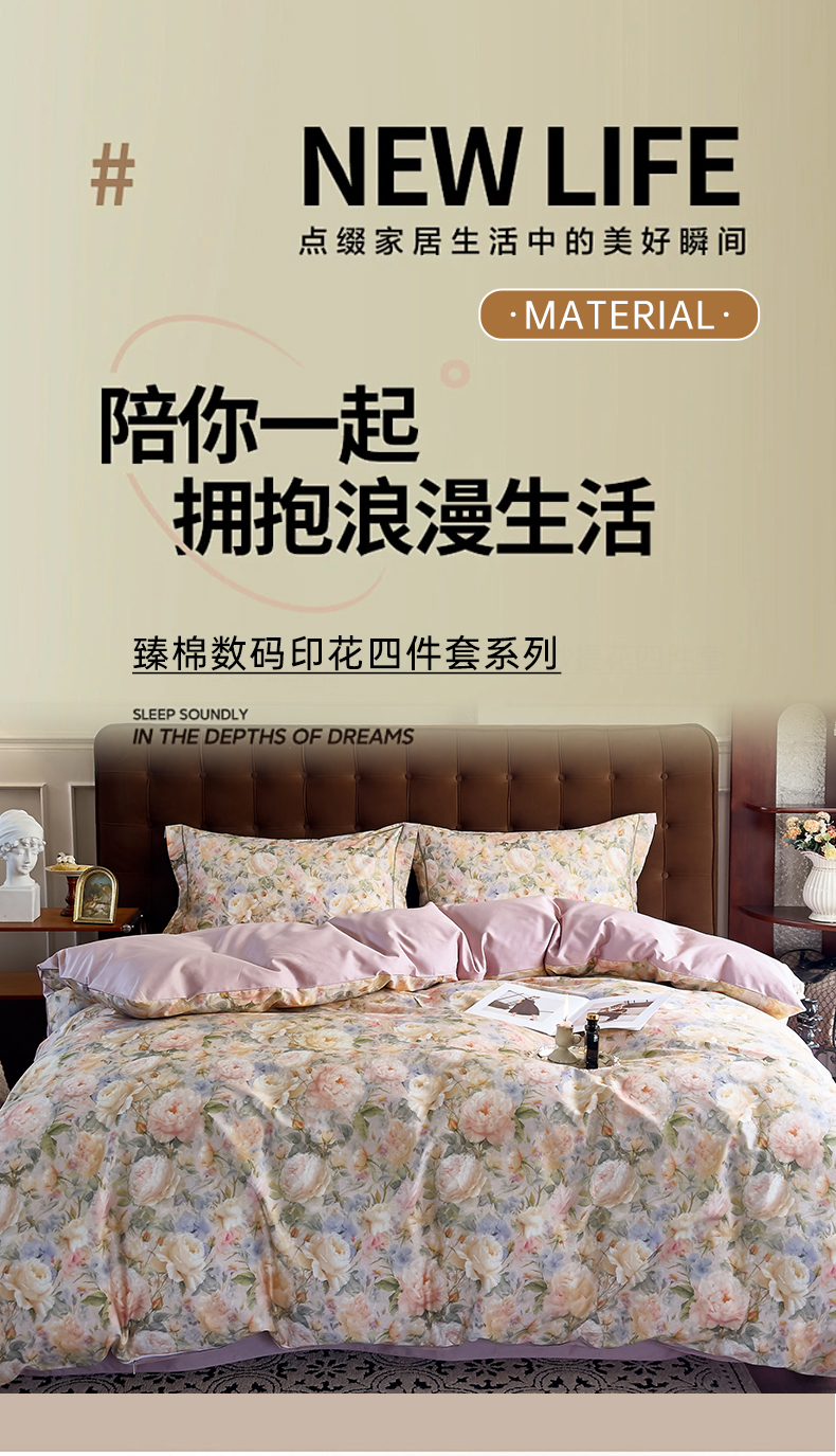 (总)由丽家纺 2025新款亲肤舒适全棉纯棉臻棉数码印花四件套系列,繁花似锦,感棉-粉,金溪-灰,金溪-咖,茂林-兰,明羽-黄,沐恩-绿,野玫瑰-紫,感棉-绿,玫瑰颂-粉