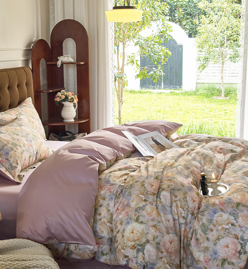 由丽家纺 2025新款亲肤舒适全棉纯棉臻棉数码印花四件套系列 野玫瑰-紫