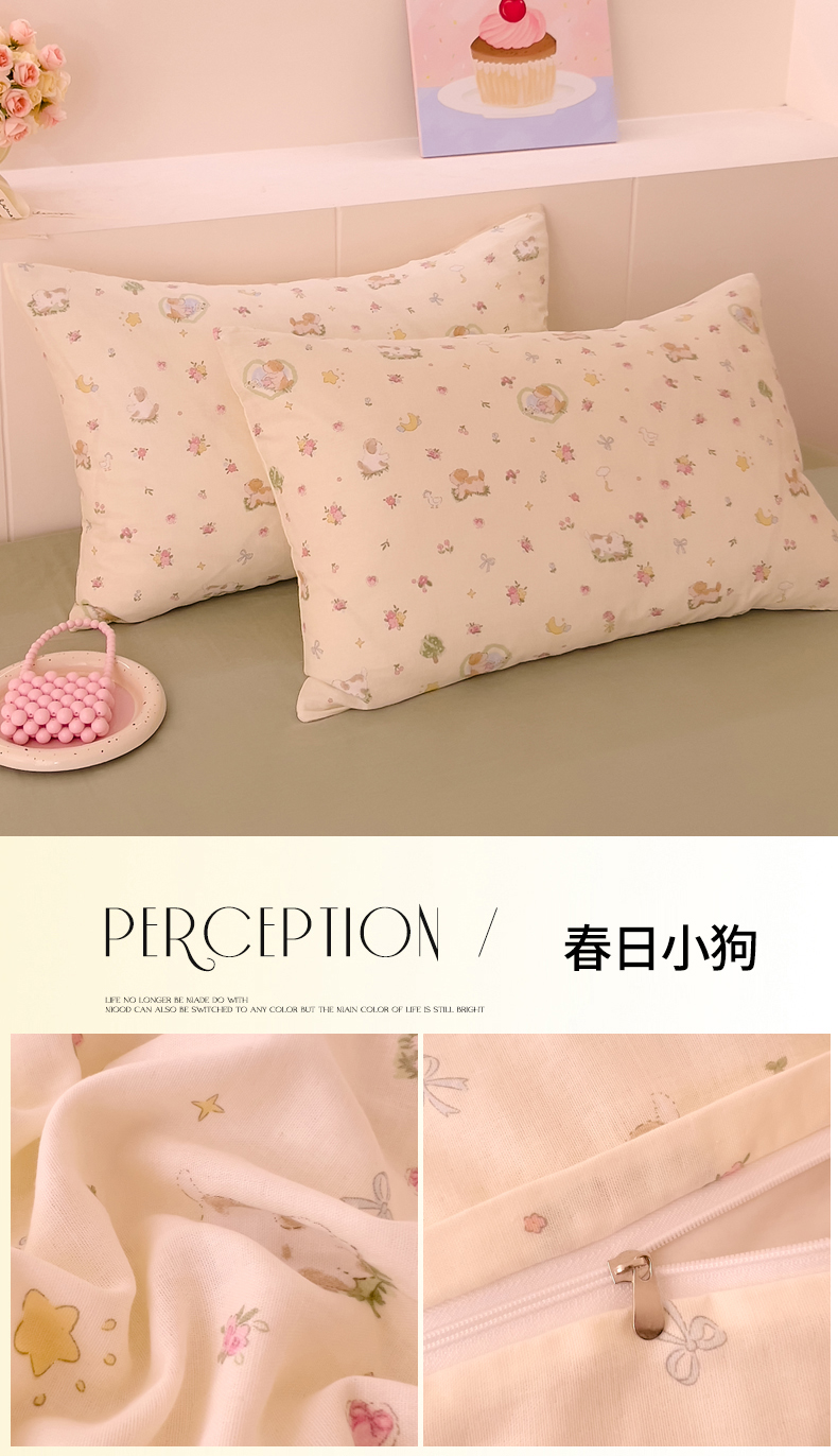 商品名称:DoDo 兜兜 2025新款全棉纯棉小温暖双层纱系列单枕套【可定做尺寸】 春日小狗