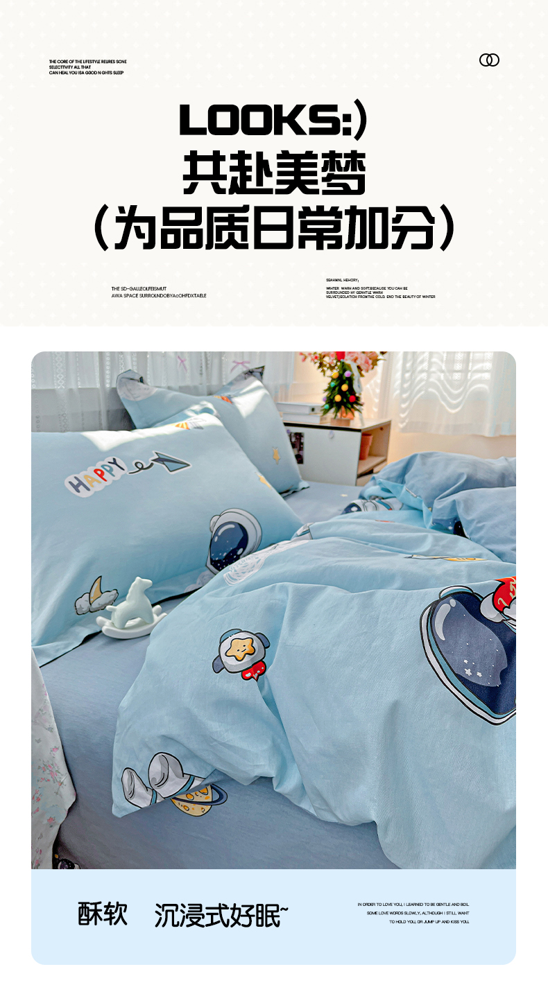 当前位置: 91家纺网 > 商品网购 > 床品套件 > 四件套 > 全棉普通四件套 > 依庭2025春夏新款12868全棉纯棉四件套 太空奇遇
