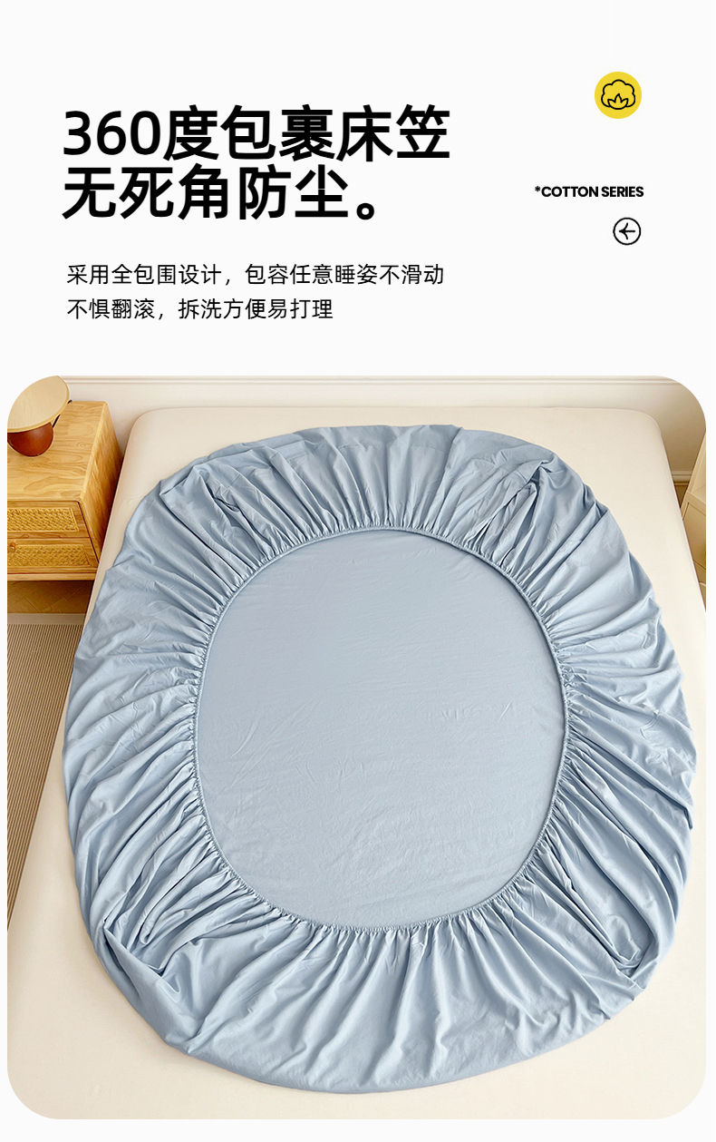 • 91家纺网 家纺一手货源 找家纺 彩韵家纺 2025新款亲肤舒适水洗m单床笠 天空蓝