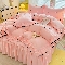 商品名称:漫布云家纺2025春夏新品韩版花边款刺绣水洗棉四件套A类母婴级针织双层纱蝴蝶结绣花纯棉全棉床裙款四件套小香风 蝶儿飞飞—樱花粉