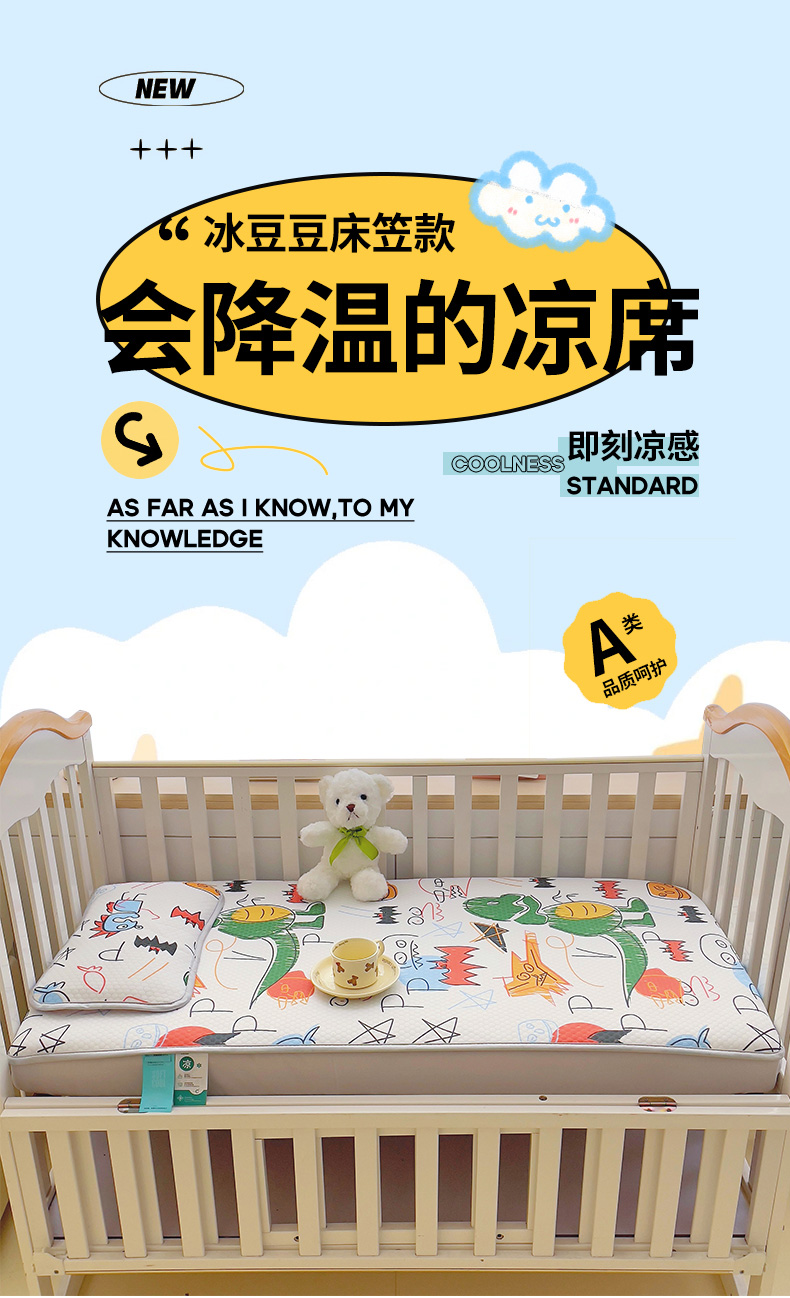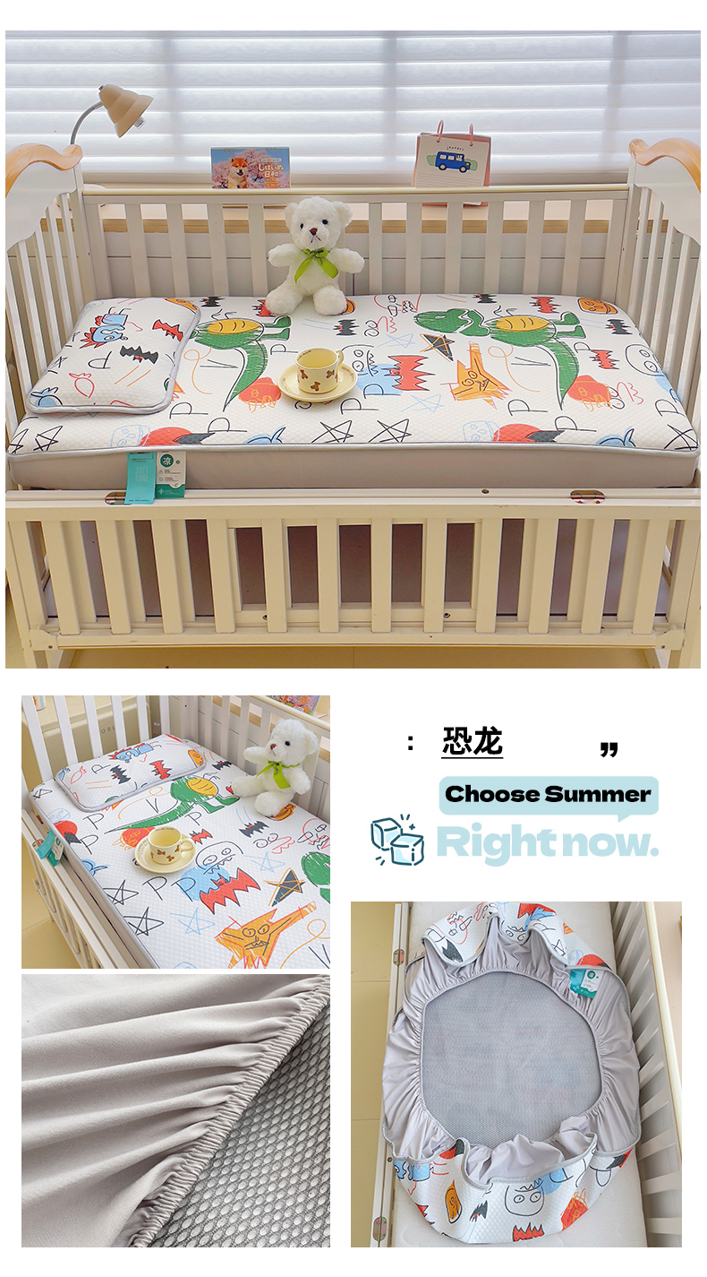 小叮当家纺仓储工厂店 (提供买家秀 爆款花型 不断货)2025新款冰豆豆儿童卡通凉席床笠 恐龙