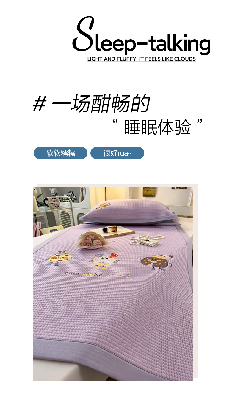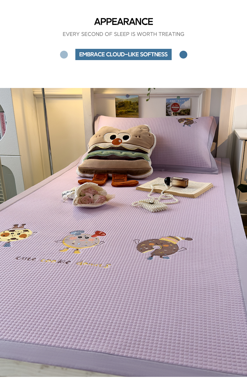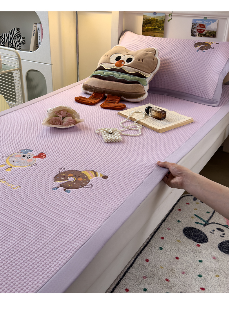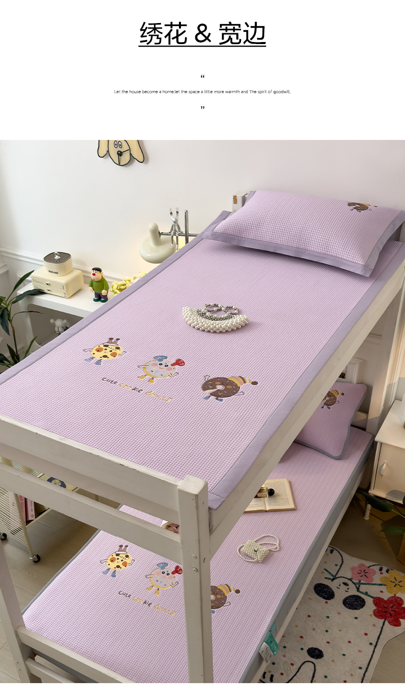 商品名称:眠多宝 2025新款凉豆豆学生宿舍用床席床笠可水洗凉席 床席床笠--床席款(绣花款) 乐享狂嗨-紫