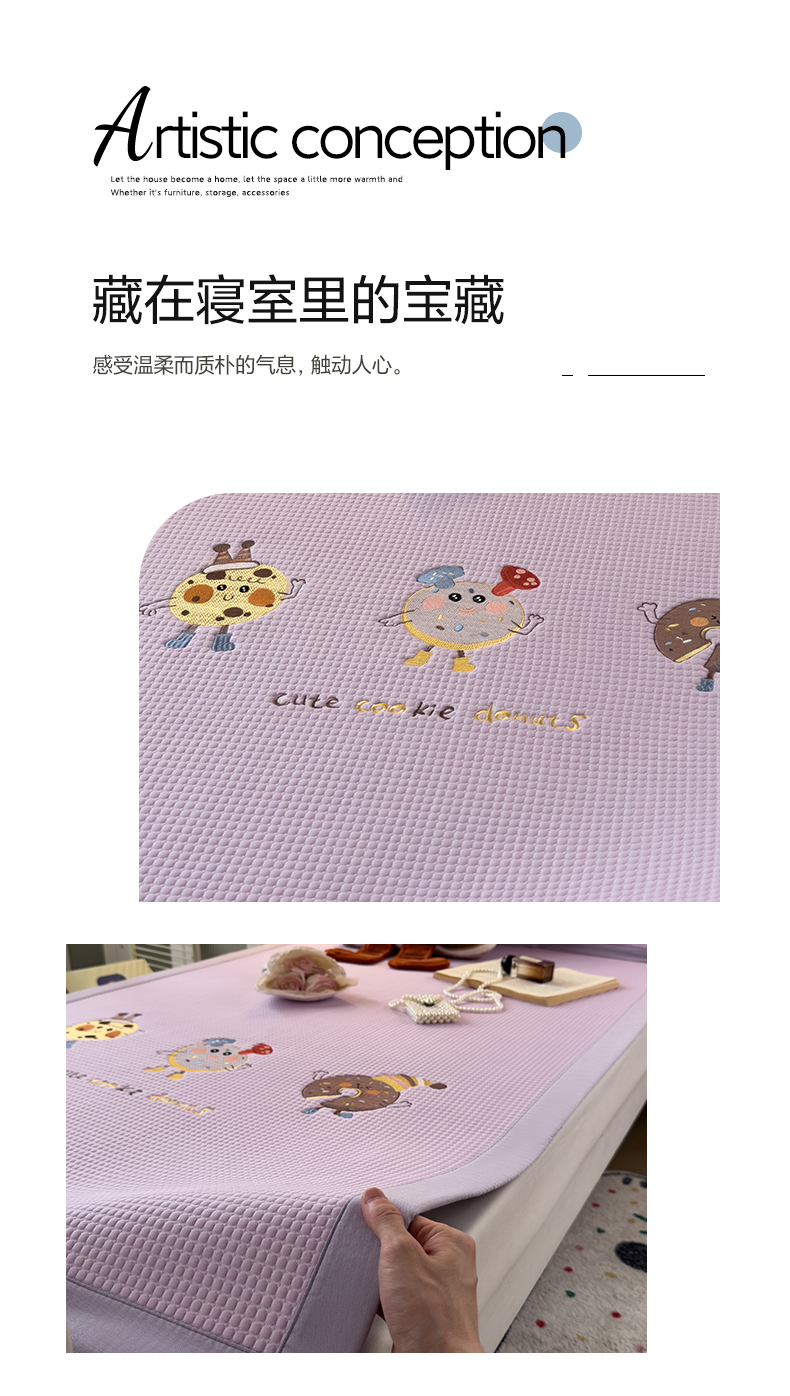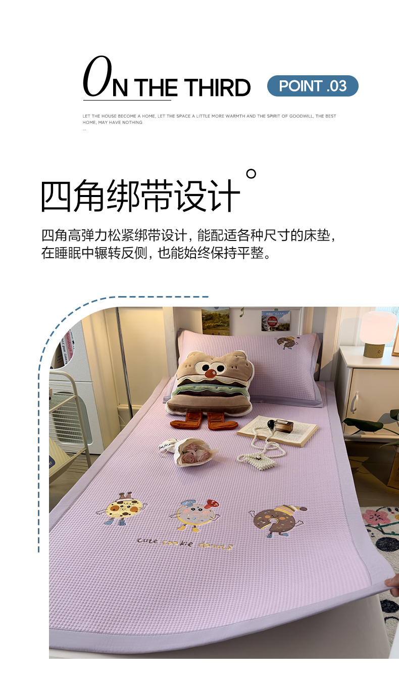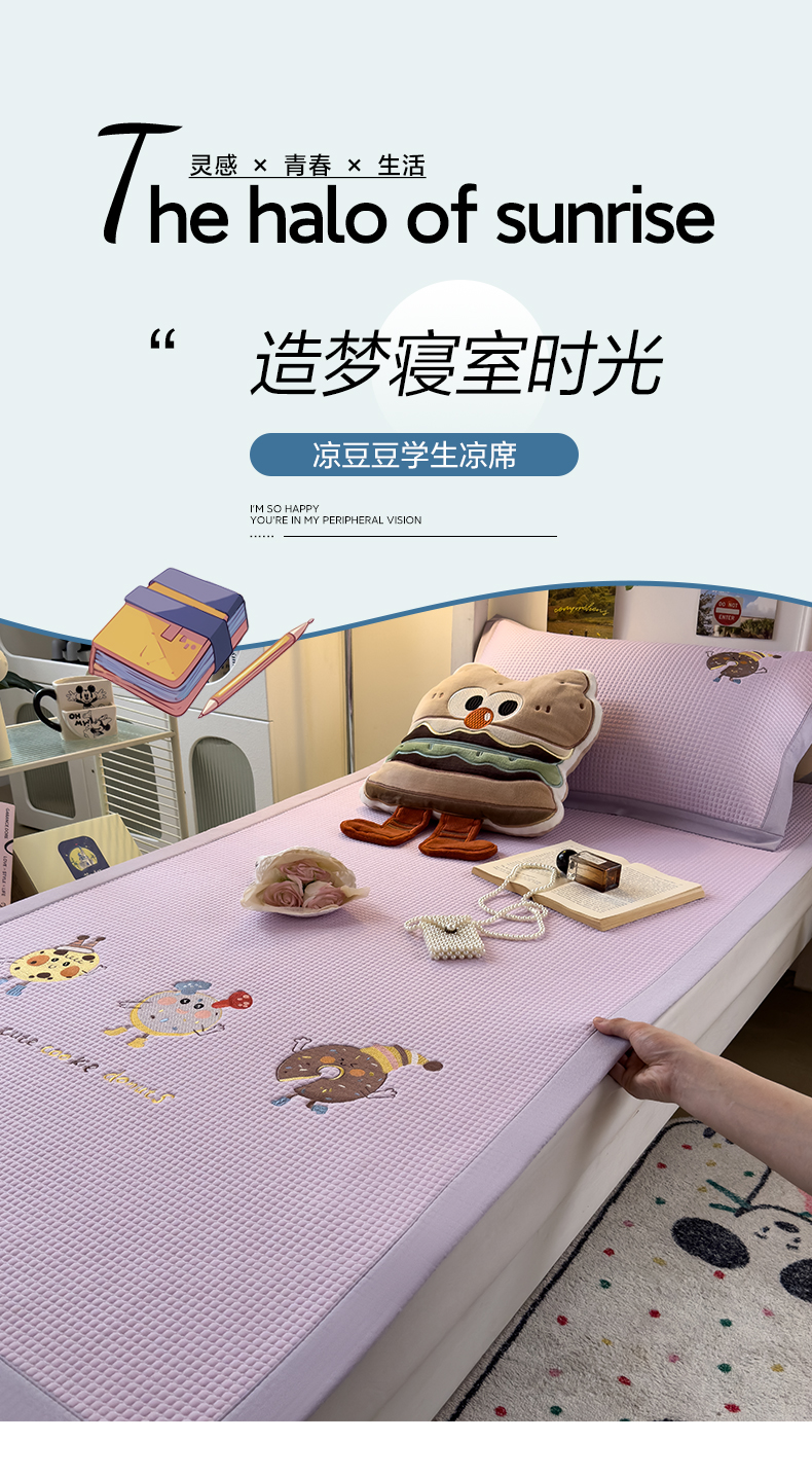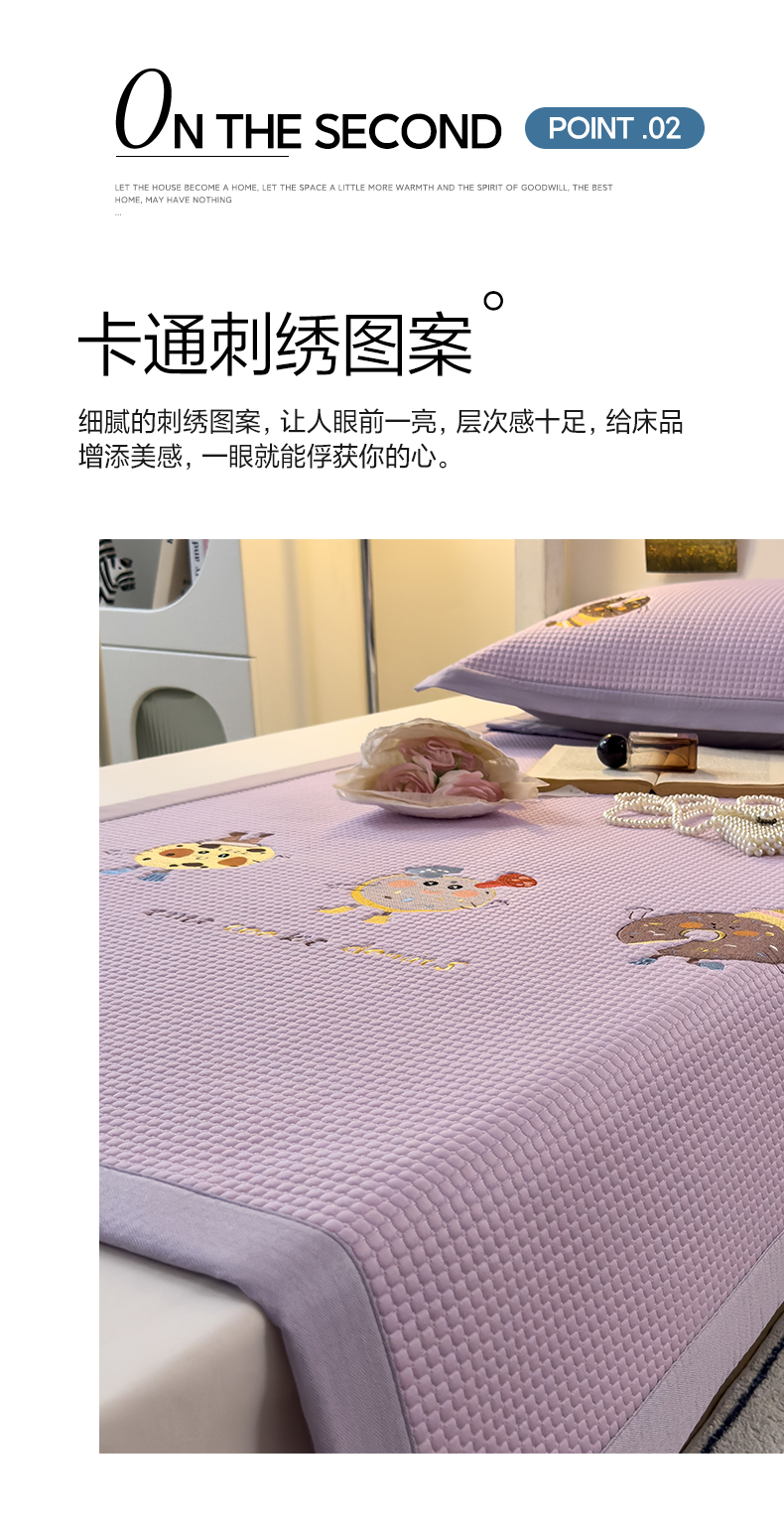 商品名称:眠多宝 2025新款凉豆豆学生宿舍用床席床笠可水洗凉席 床席床笠--床席款(绣花款) 乐享狂嗨-紫