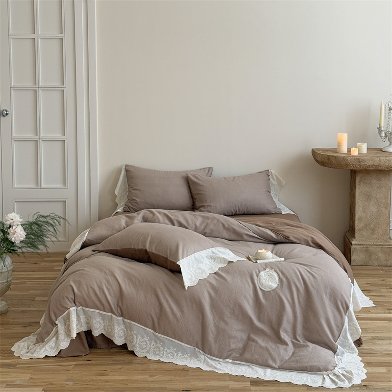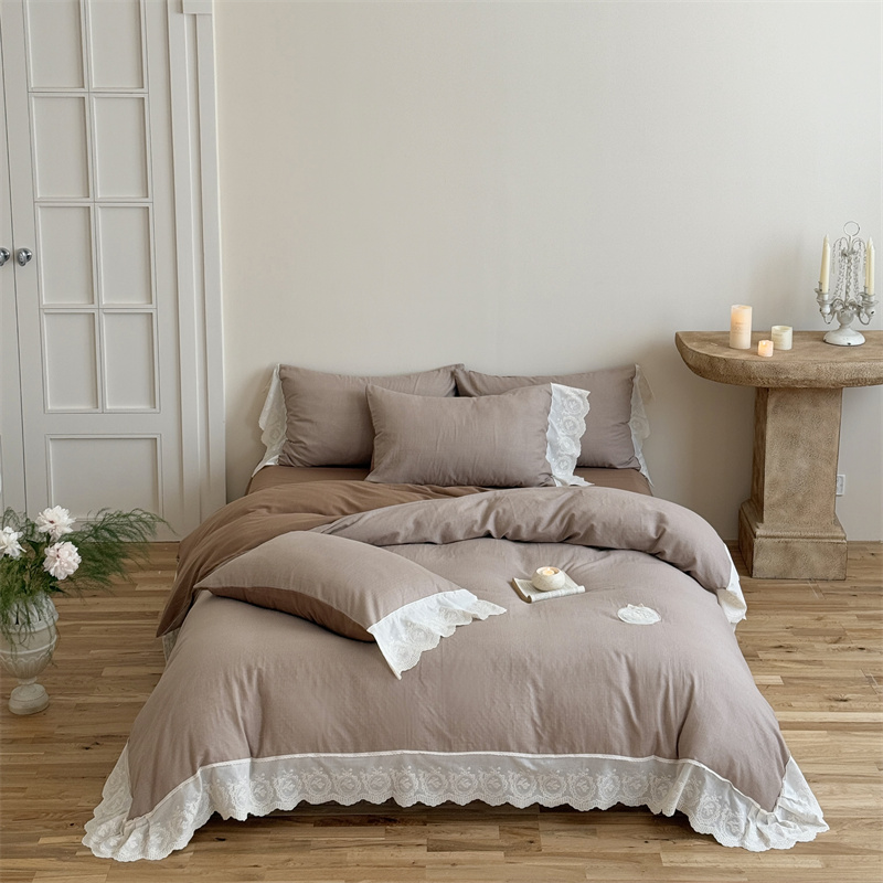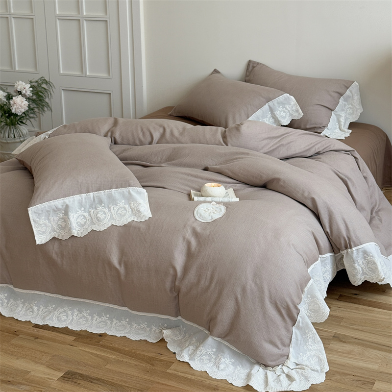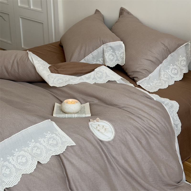 (总)曼布缇 2025新款A类双层纱花边四件套--浪漫香榭(会员减20),茶驼色,豆沙红,巧克力色