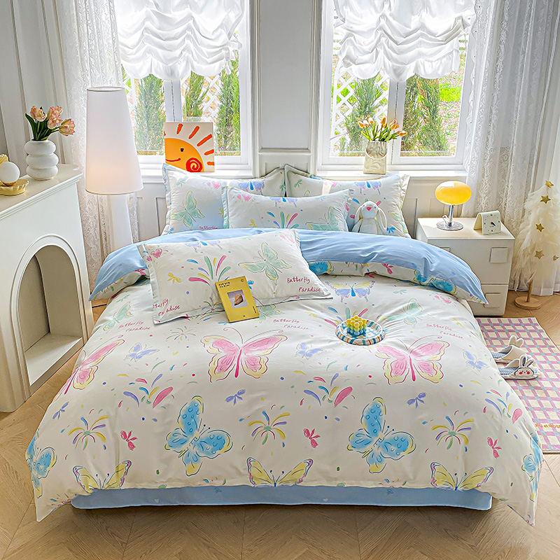 • 91家纺网 家纺一手货源 找家纺 禧安居 2025新款高支高密活性印染全棉印花被套全棉被套单被套 彩蝶