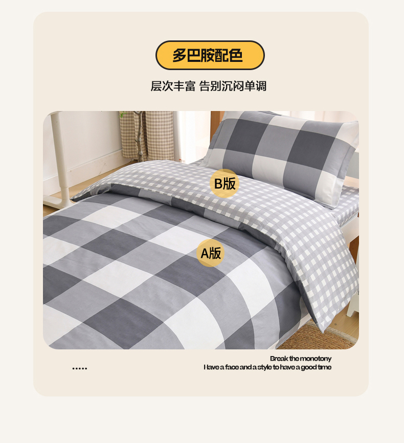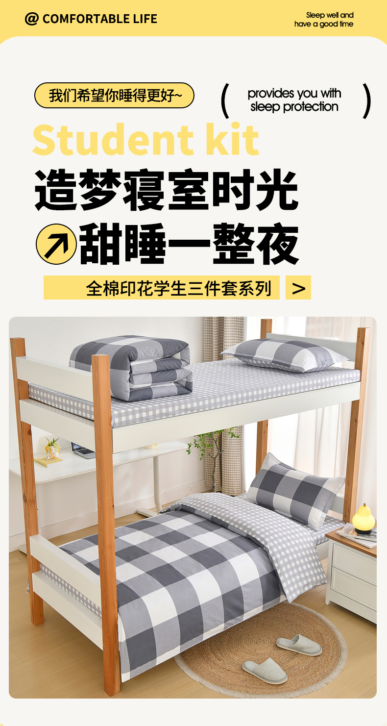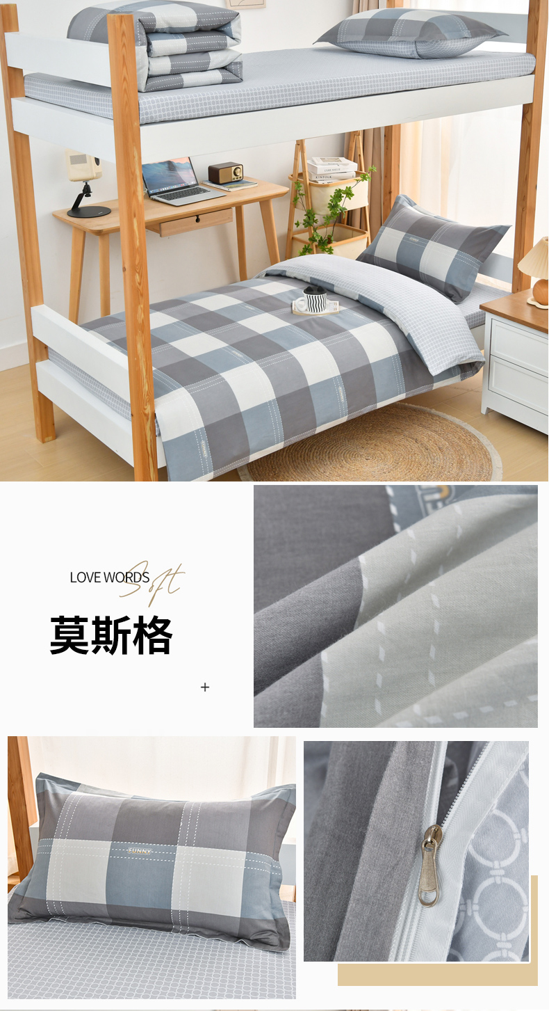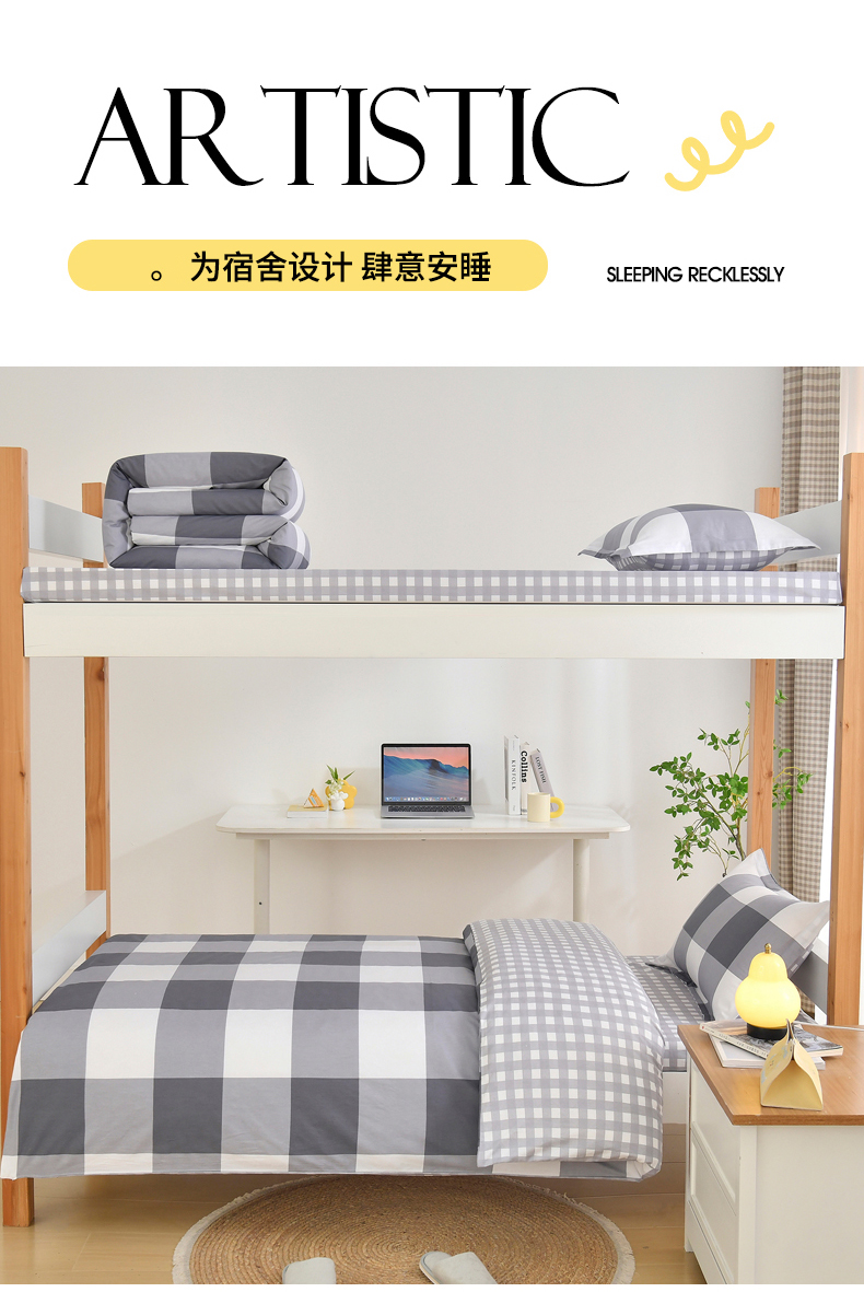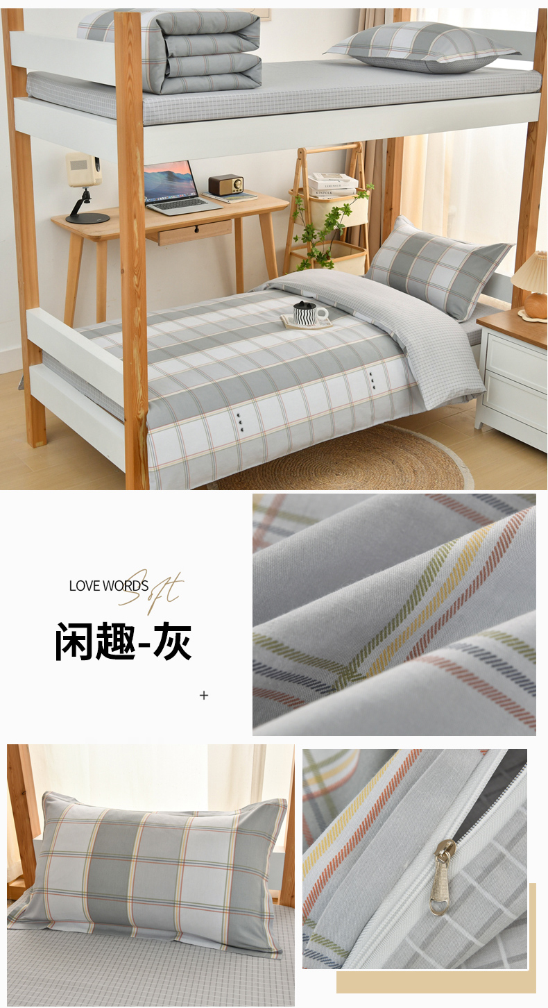 当前位置: 91家纺网 > 商品网购 > 床品套件 > 四件套 > 全棉普通四件套 > 乐旗家纺 2025新款全棉13372印花学生上下铺套件宿舍三件套 校园笔记-灰