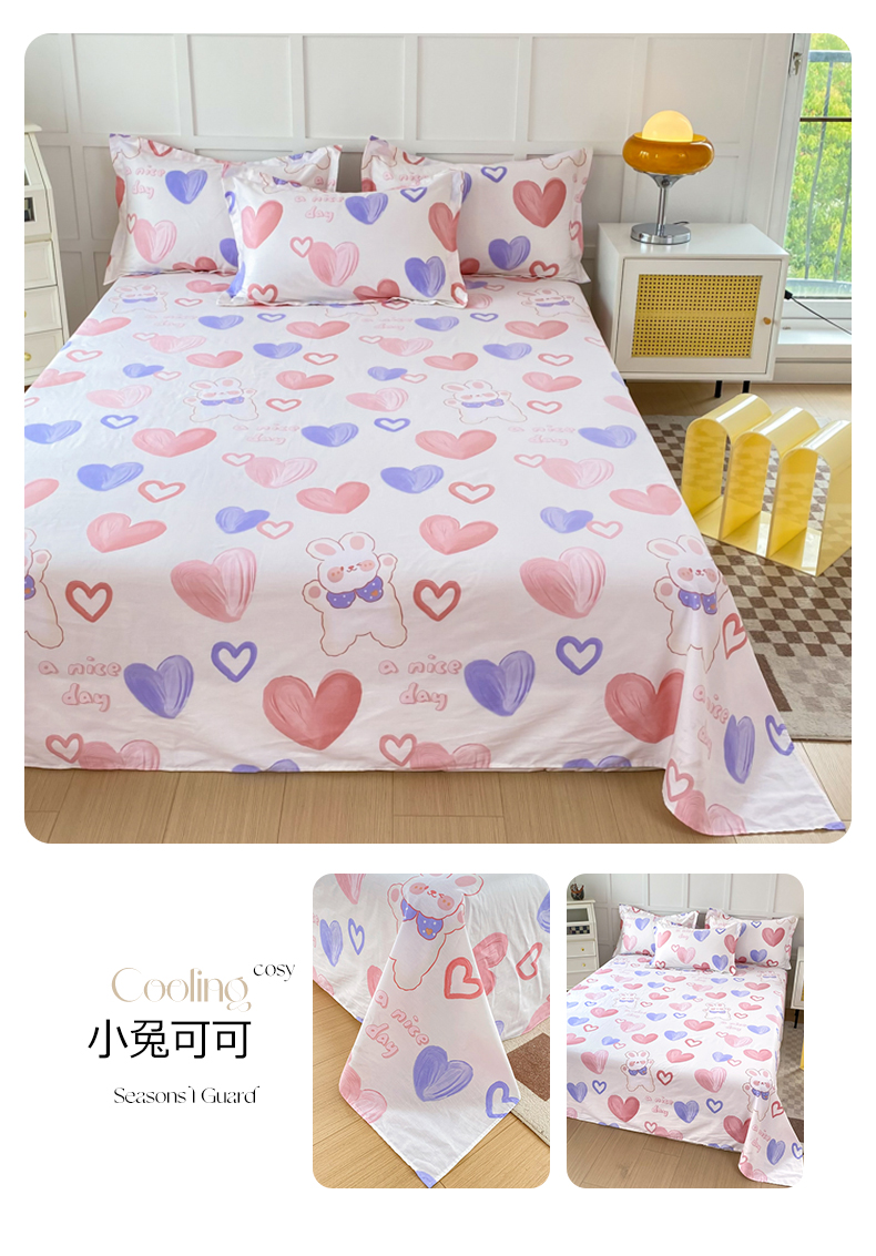 小叮当家纺仓储工厂店 (爆款花型 长期款 不断货)2025新款小清新印花条纹卡通花卉纯棉全棉单品系列--单床单 萌系新宠