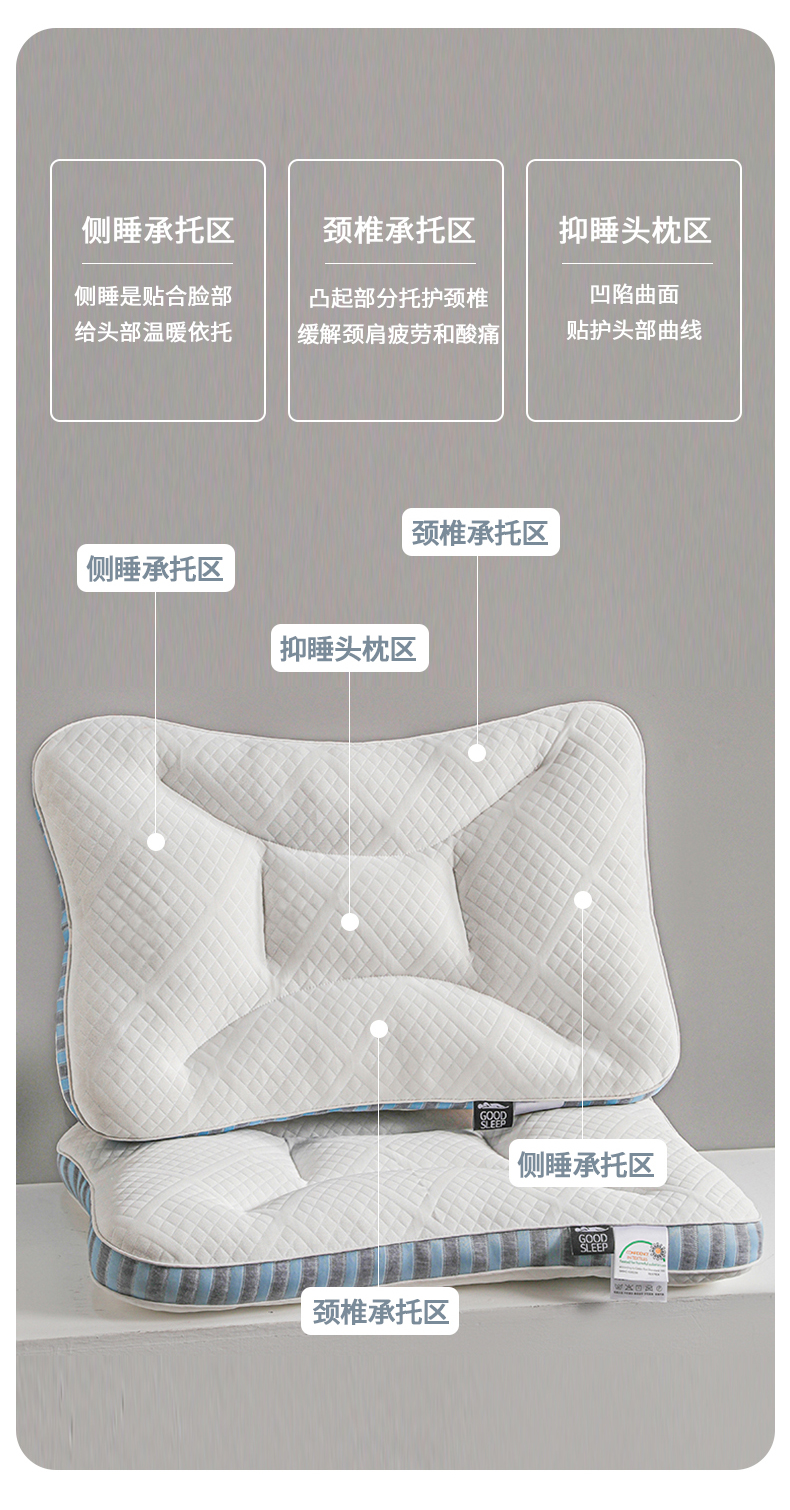 当前位置: 91家纺网 > 商品网购 > 枕头/枕芯/保健枕/颈椎枕 > 普通枕芯 > 蝶飞舞 2025新款SPA分区深睡记忆枕头枕芯护颈枕 spa低枕800g-蓝色 48*74cm