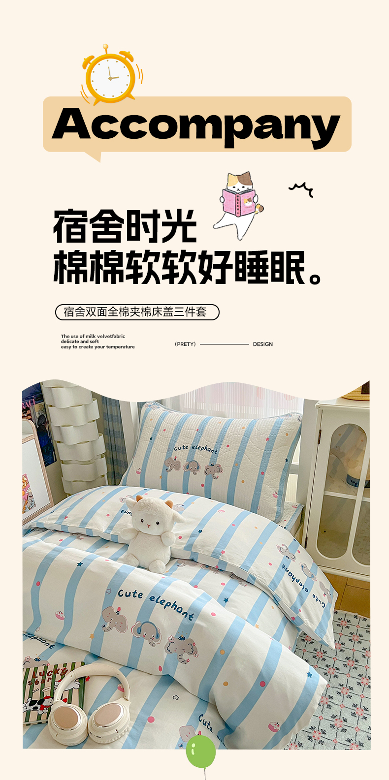 商品名称:沐纯家居 2025新款学生款双面纯棉棉花床盖三件套 快乐伙伴
