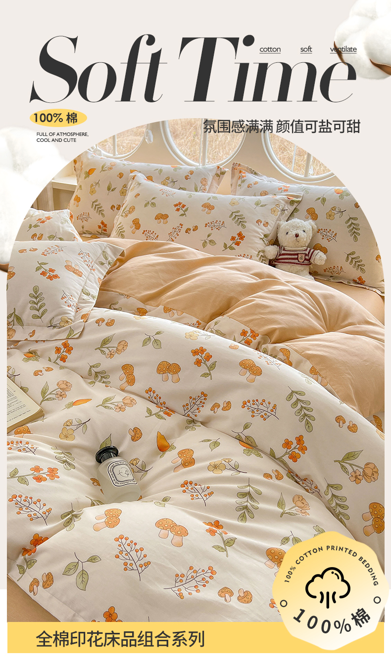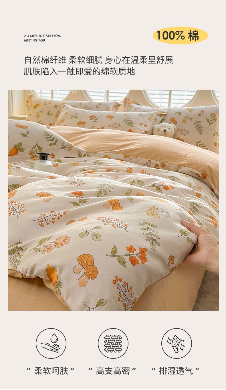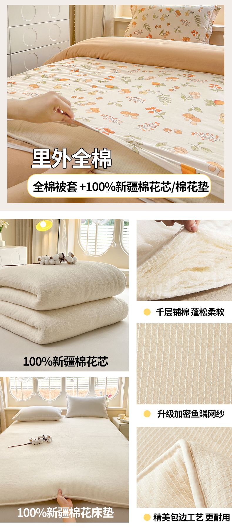 商品名称:西域种棉人·千百笠 2025新款全棉纯棉大学生宿舍100%新疆棉花被子被褥一整套枕头床垫三件套六件套 蘑菇花园