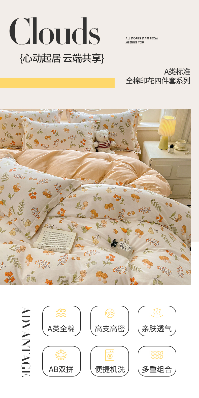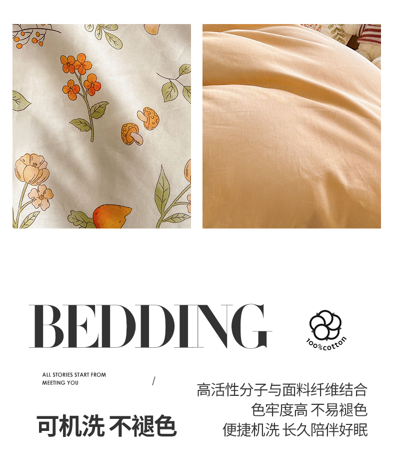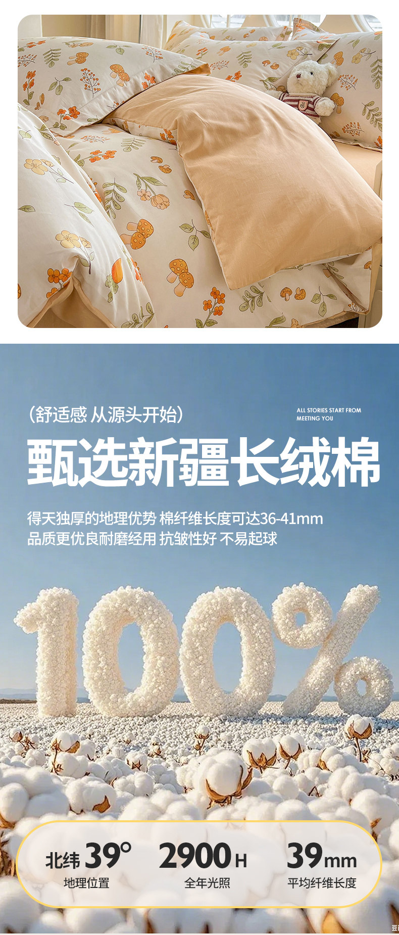 商品名称:西域种棉人·千百笠 2025新款全棉纯棉大学生宿舍100%新疆棉花被子被褥一整套枕头床垫三件套六件套 蘑菇花园