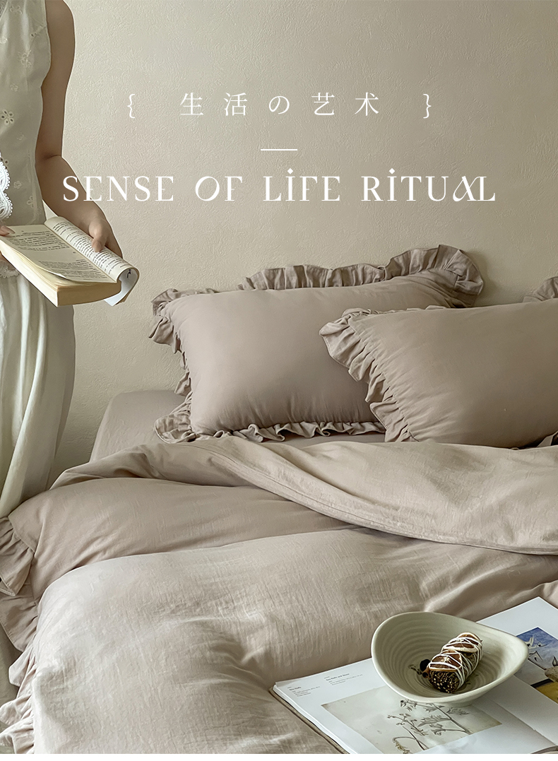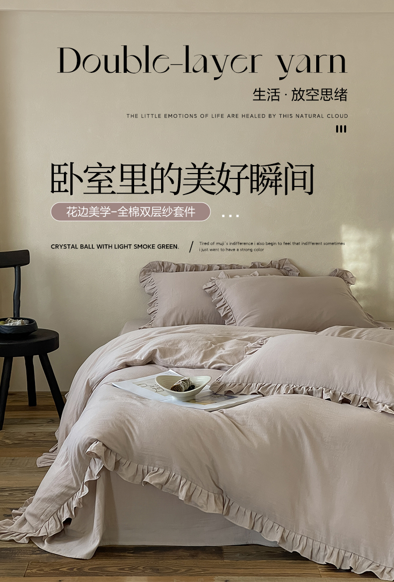 三味舒屋2025新款花边美学-全棉双层纱四件套 复古棕