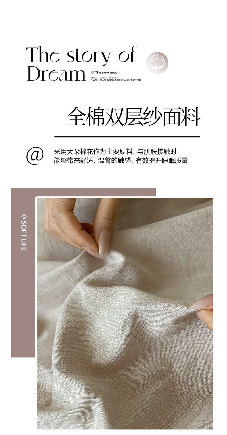 商品名称:三味舒屋2025新款花边美学-全棉双层纱四件套 复古棕