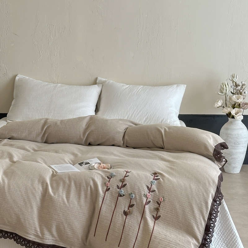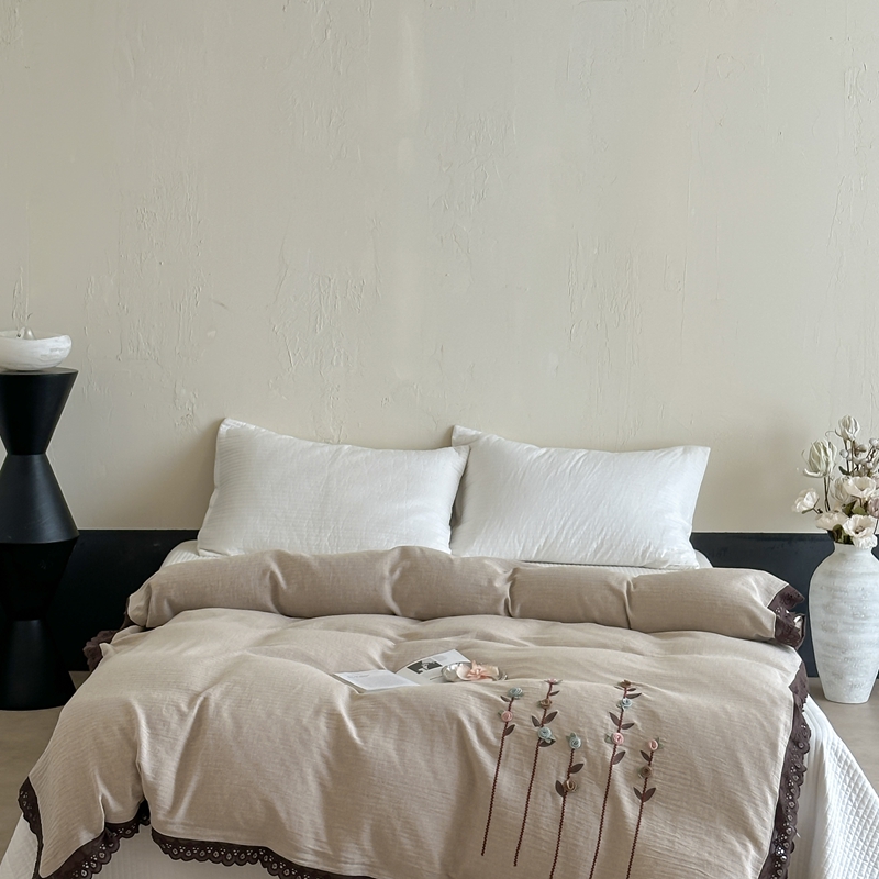 (总)月夏 2025新款全棉纯棉棉麻单被套被套单件-缤纷花语,缤纷花语-灰色,缤纷花语-咖色,缤纷花语-米白色