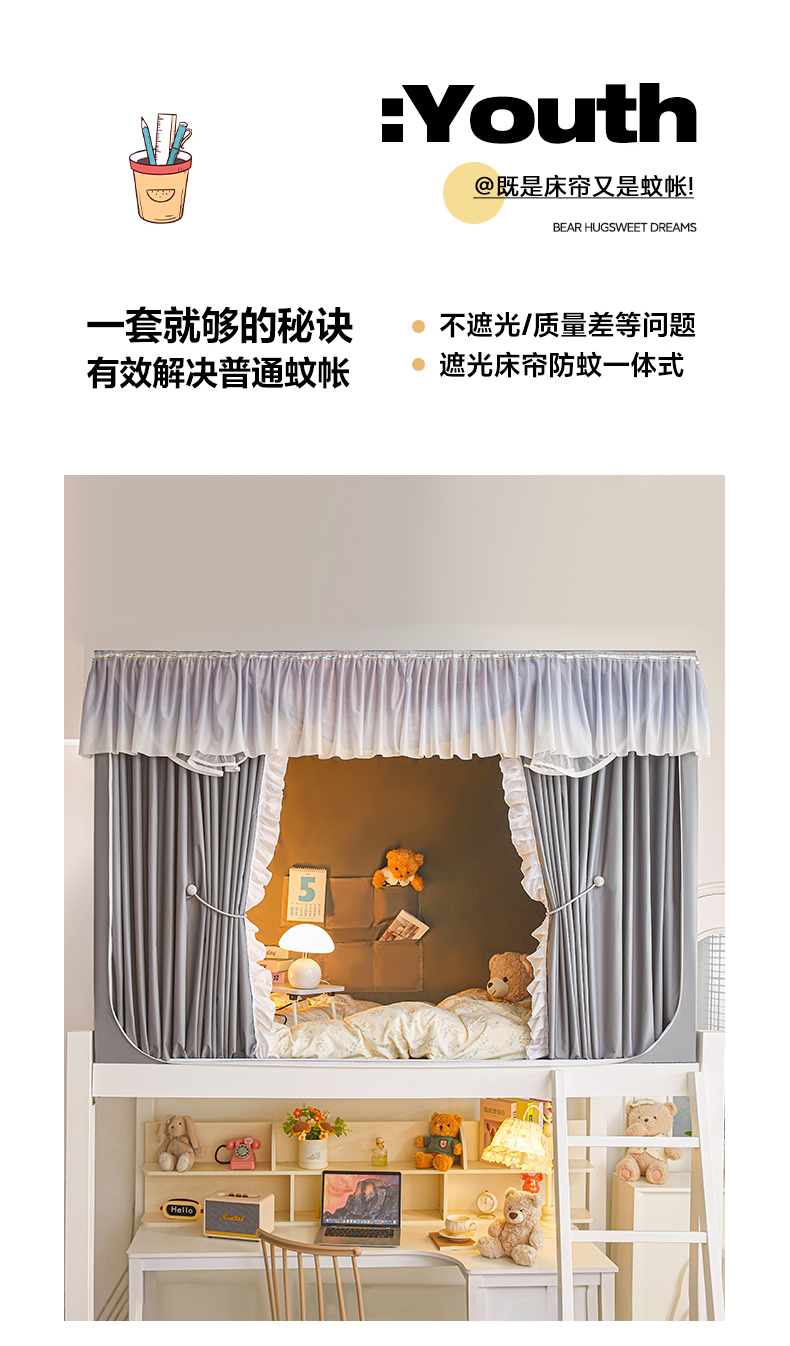 (总)锦逸家居 2025新款卡通抱抱熊强遮光床帘款学生蚊帐,可爱熊-卡其,好朋友-天蓝,蝴蝶结-嫩黄,幸运熊和狗-粉