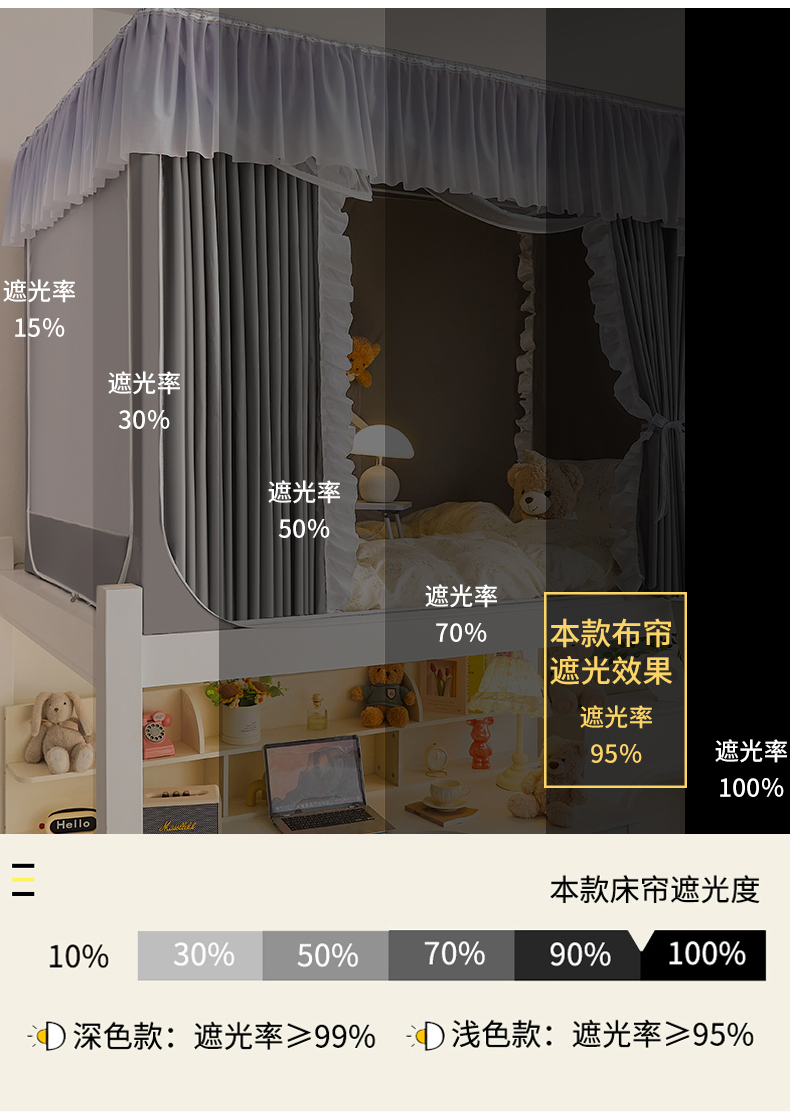 (总)锦逸家居 2025新款遮光防摔床帘式坐床蚊帐-仲夏之夜,米黄色,粉色,浅紫色,天蓝色,雾霾蓝,荧光黄,玉色