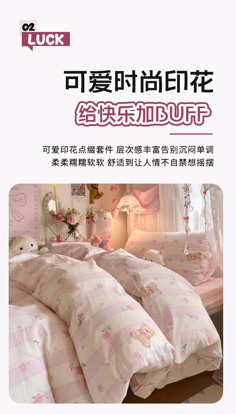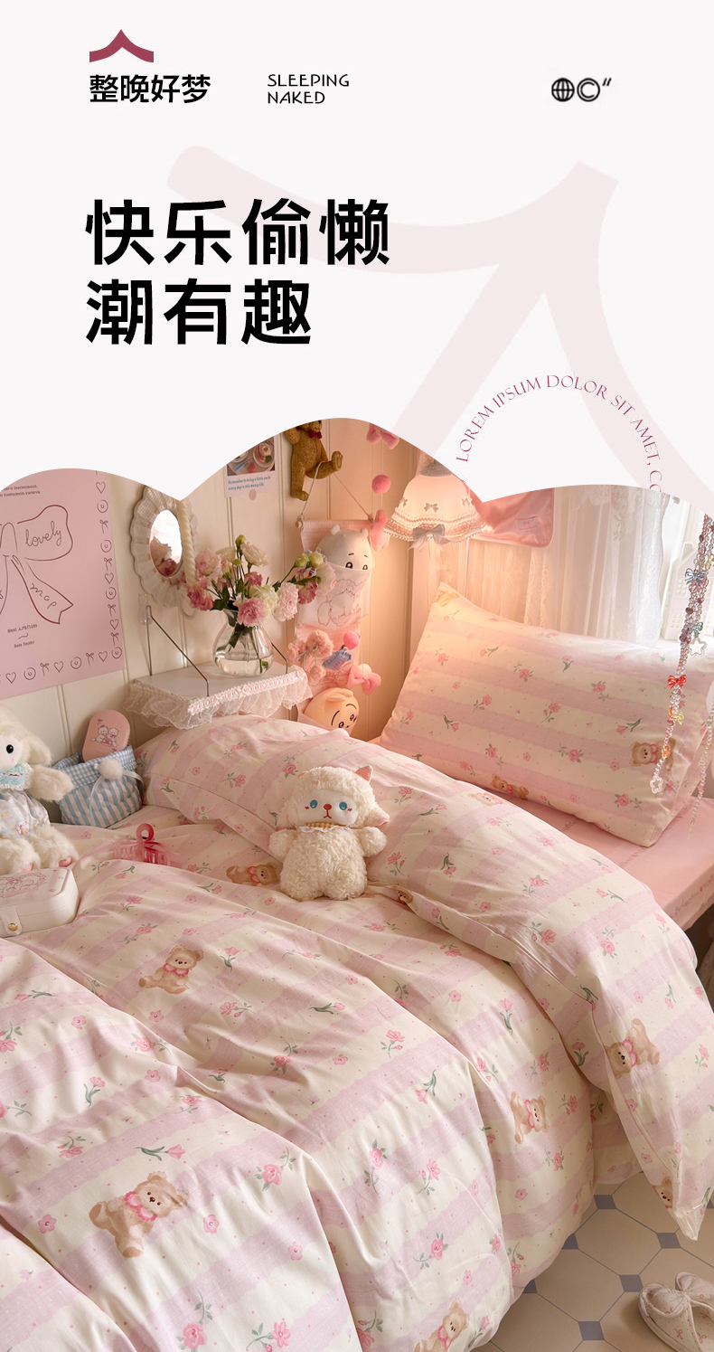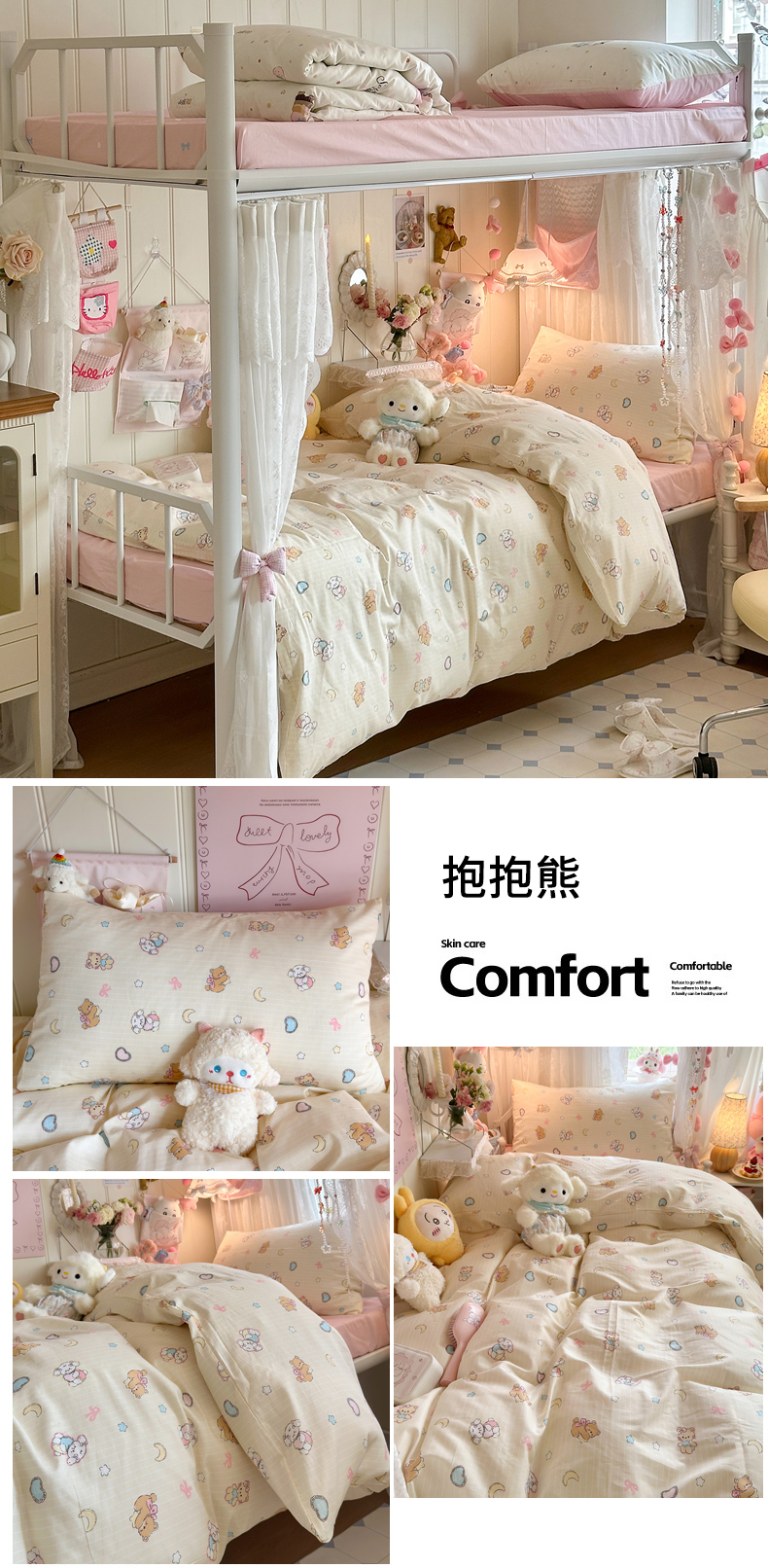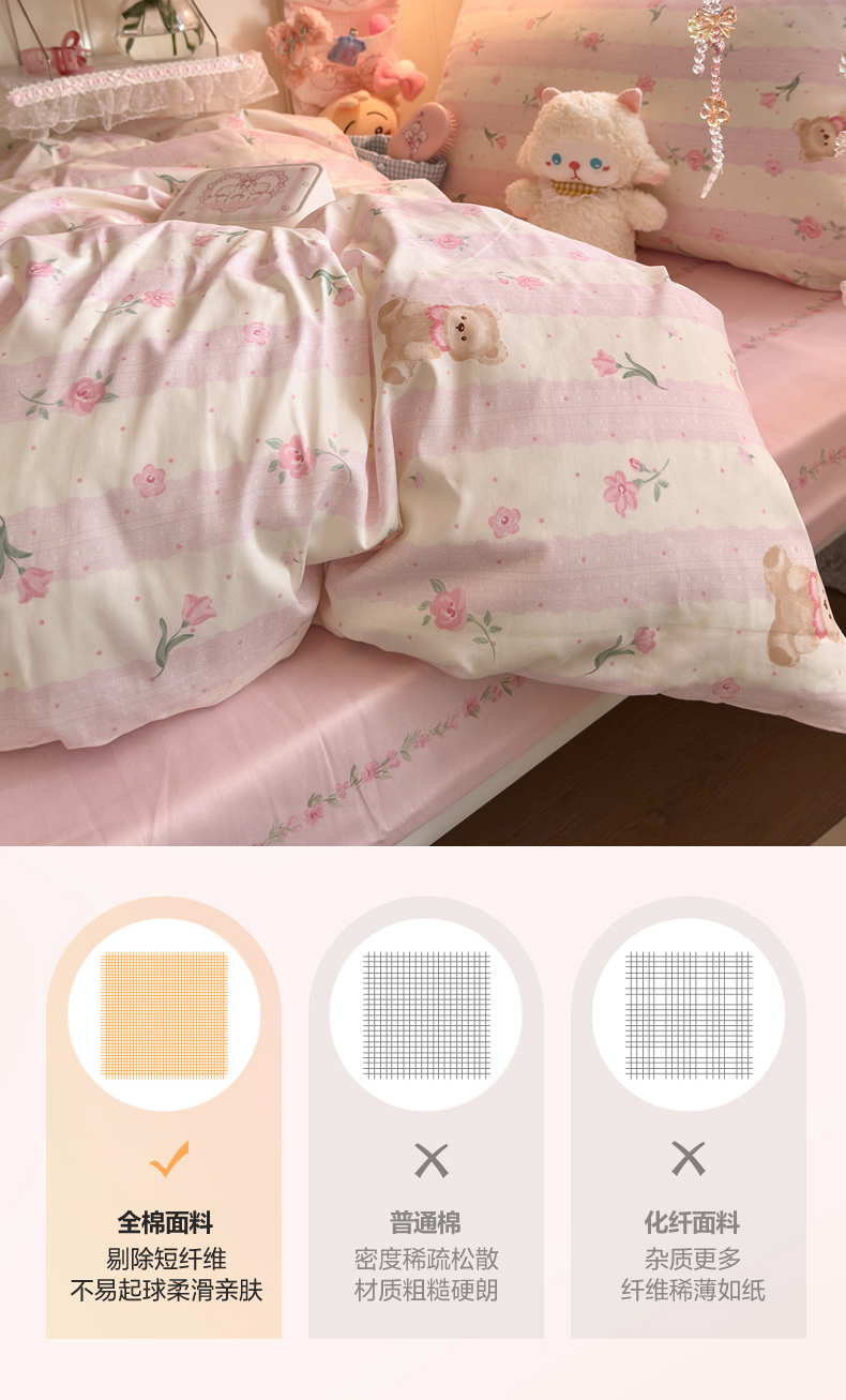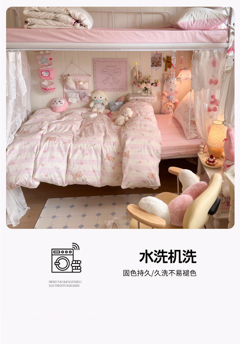 商品名称:Sweet dreams甜梦 2025新款学生床全棉纯棉三套件学生三件套宿舍三件套上下铺三件套 花花小熊