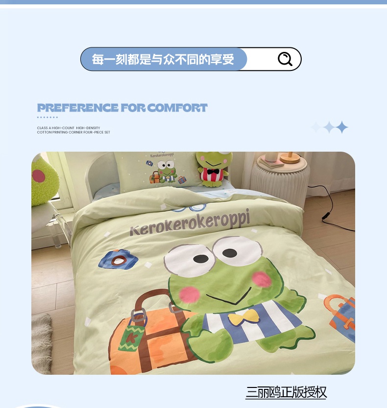 (总)蘭菲家纺 2026新款全棉三丽欧印花卡通四件套,必爱乐奶茶,波点KT,车站KT,大杯奶茶KT,逛街狗,精致狗狗,可爱KT灰,快乐小库,快乐休假,露营快乐,美乐必爱,轻松美乐蒂,涂鸦KT,夏日快乐,小库儿,小库故事