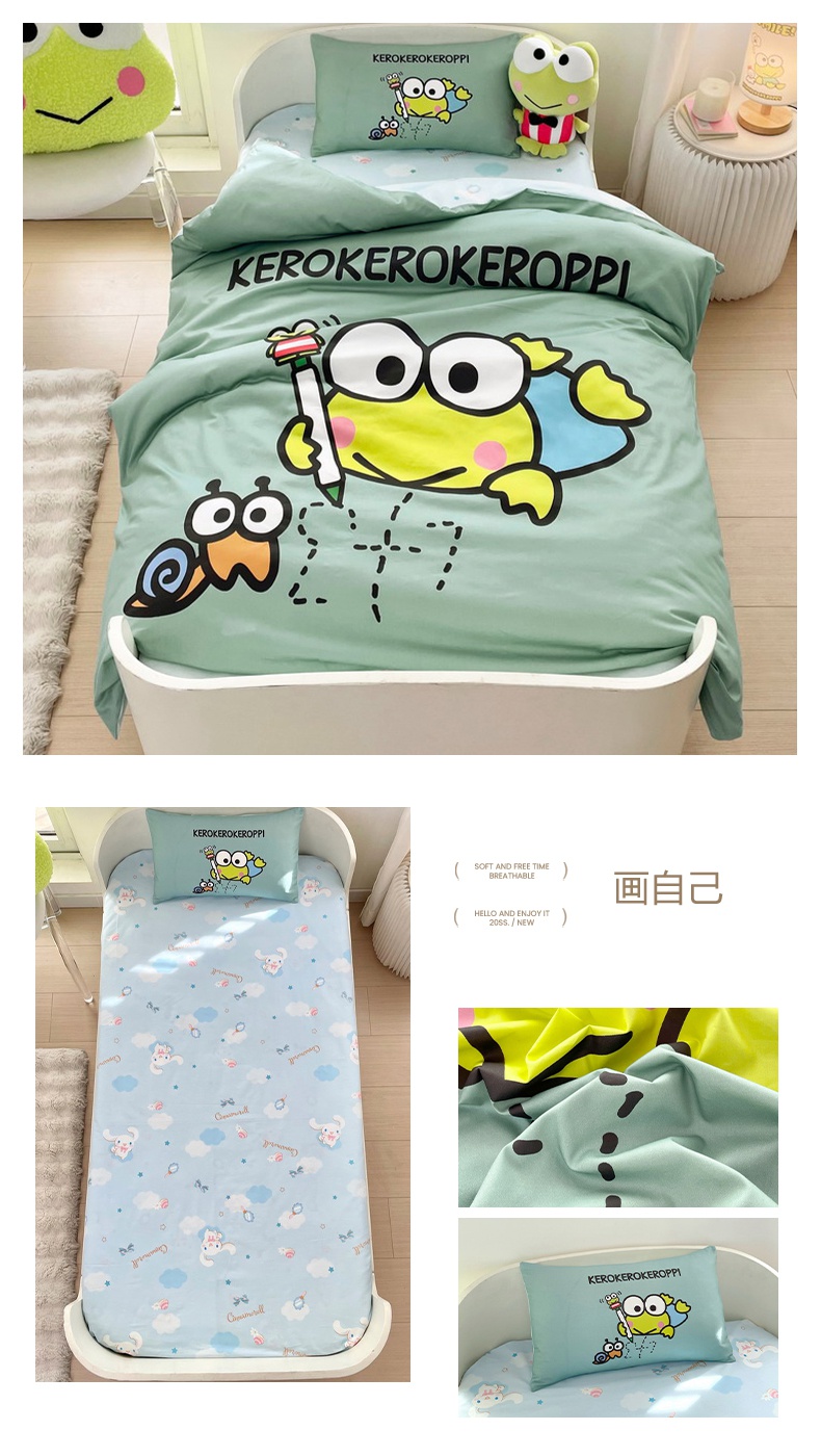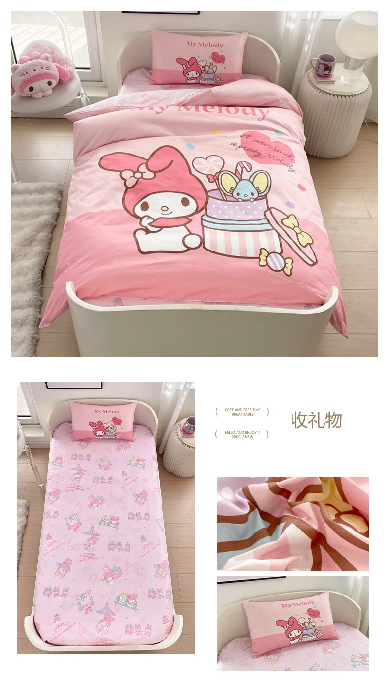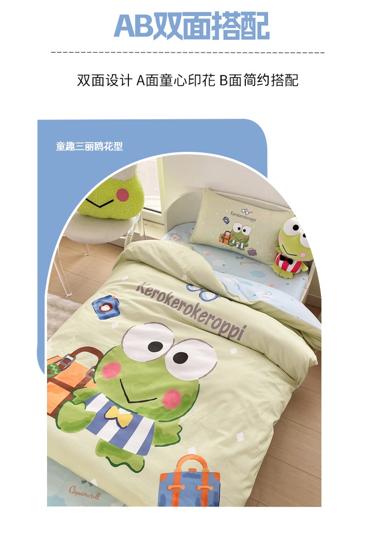 商品名称:蘭菲家纺 2025新款学生季全棉幼儿园三丽鸥三件套大版系列 旅行家