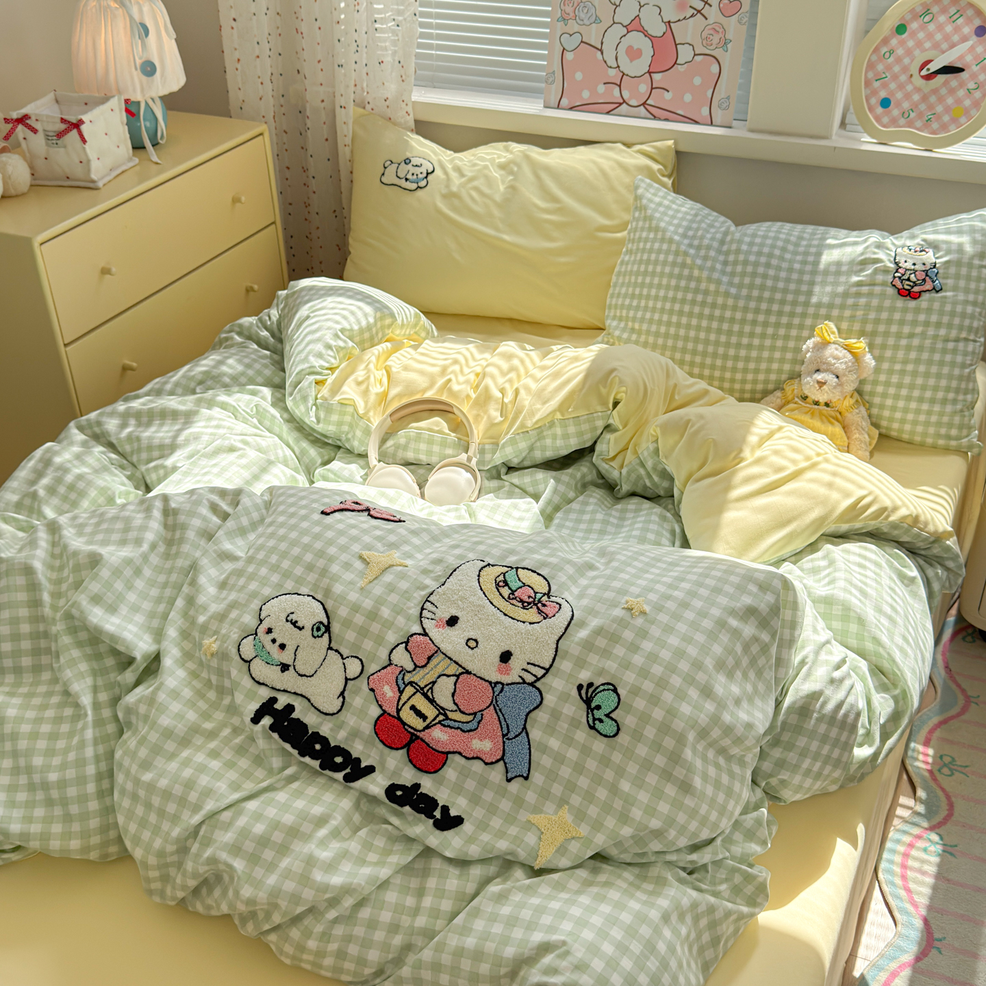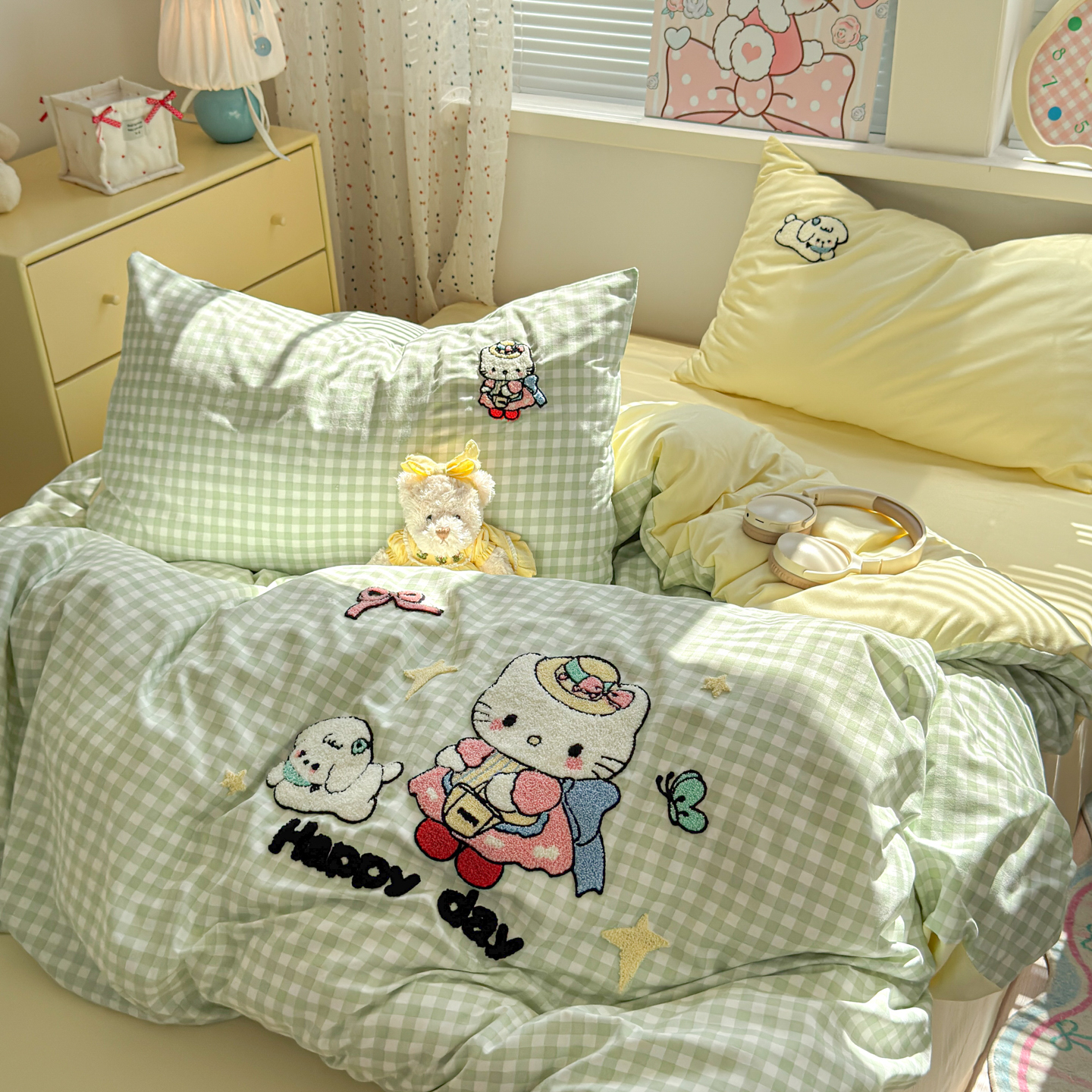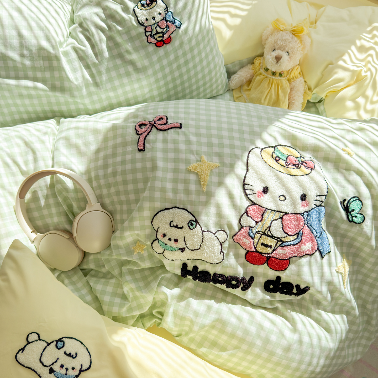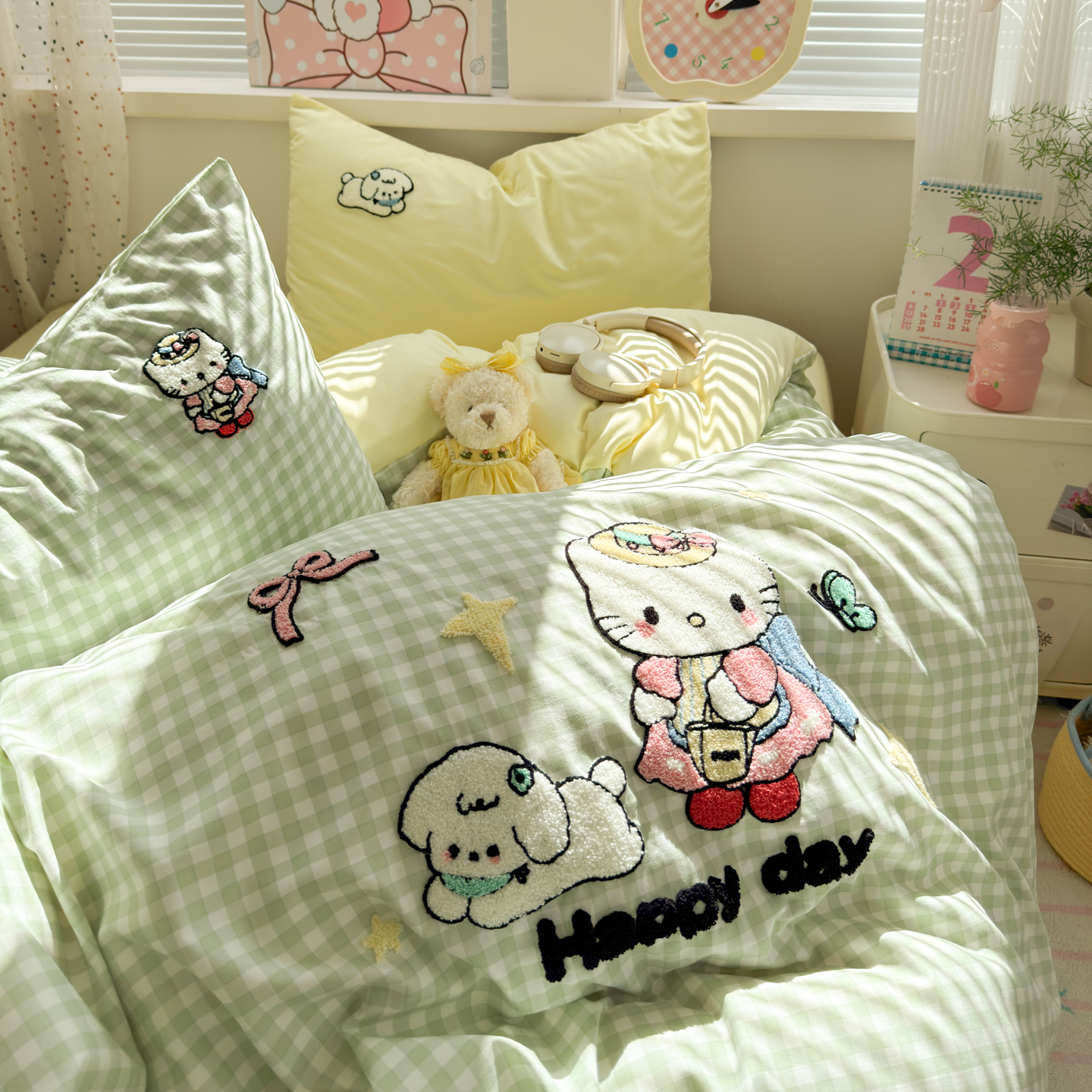 当前位置: 91家纺网 > 商品网购 > 床品套件 > 四件套 > 毛巾绣四件套 > 一霖家纺 2025新款高克重云朵棉毛巾绣印绣四件套-小清新系列-第三波 元气KT