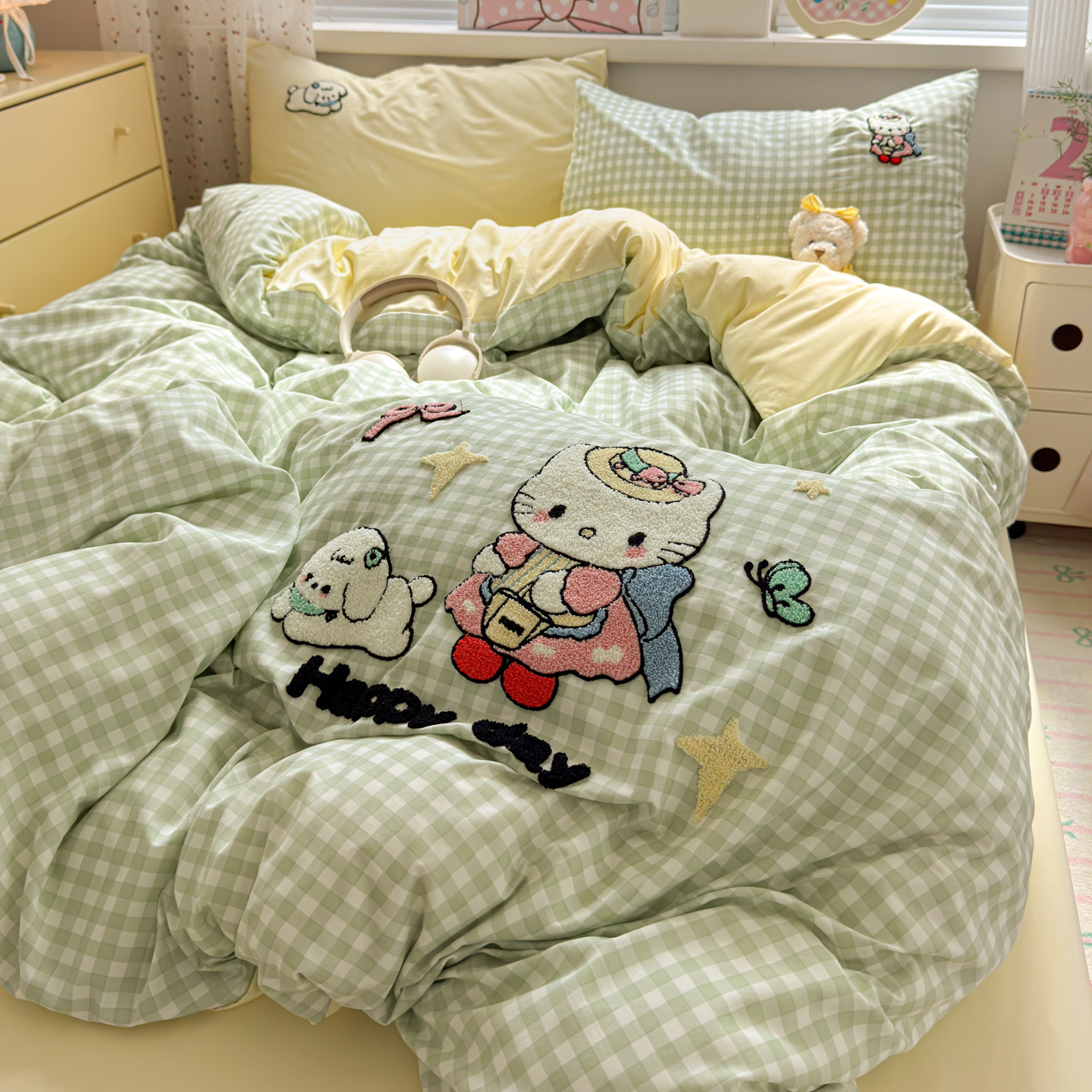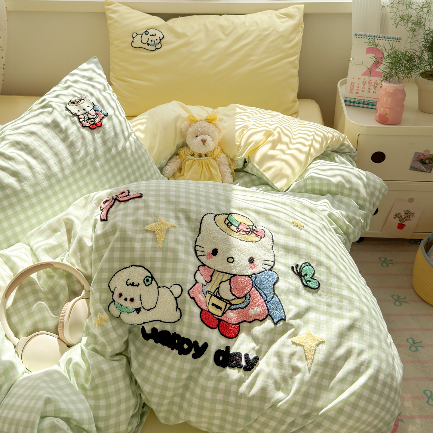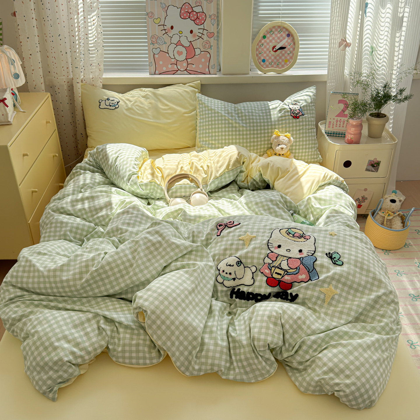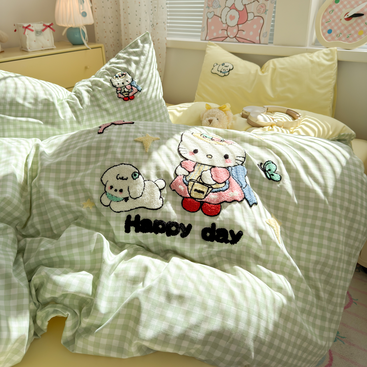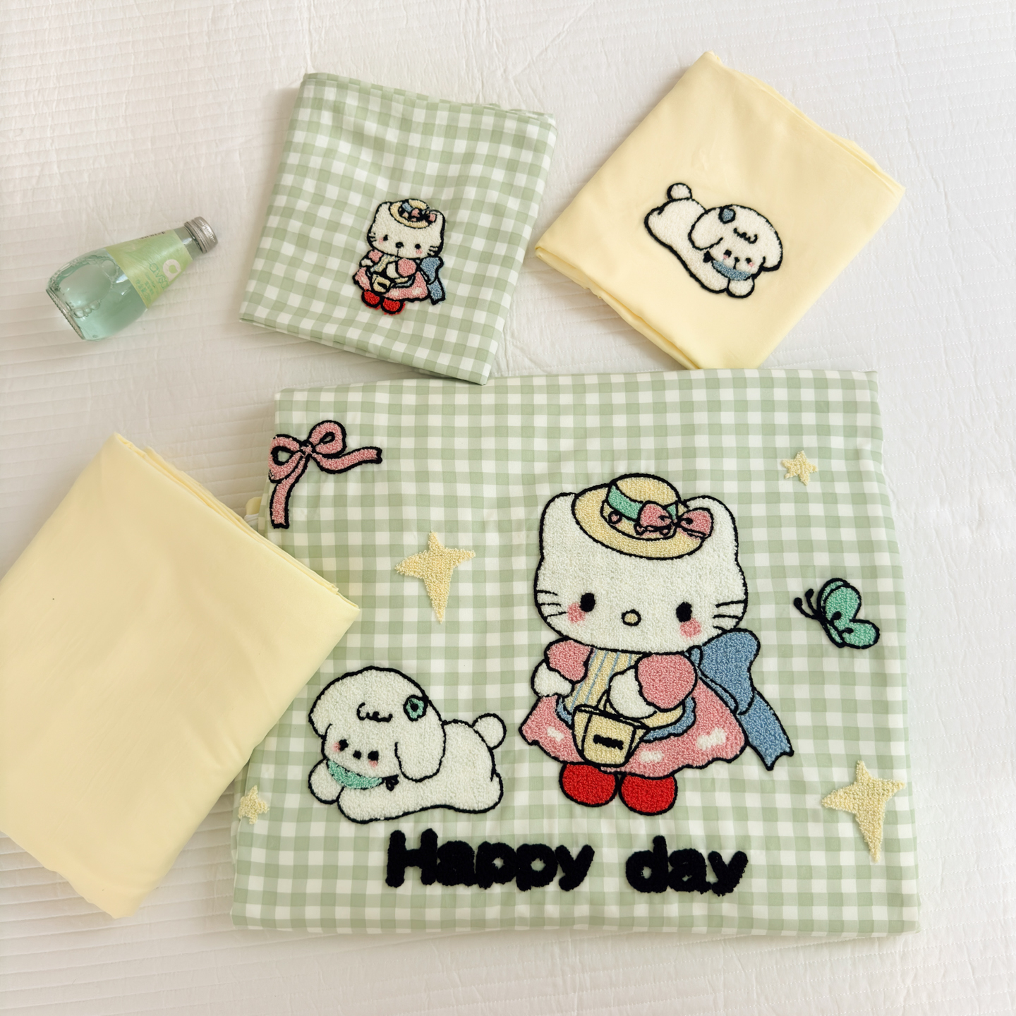 当前位置: 91家纺网 > 商品网购 > 床品套件 > 四件套 > 毛巾绣四件套 > 一霖家纺 2025新款高克重云朵棉毛巾绣印绣四件套-小清新系列-第三波 元气KT