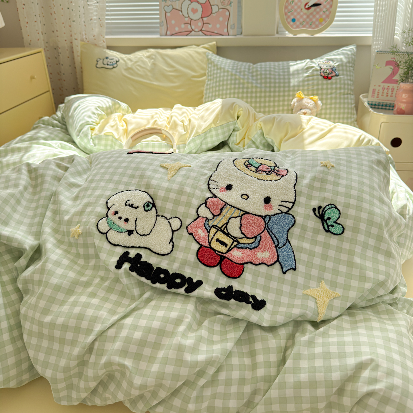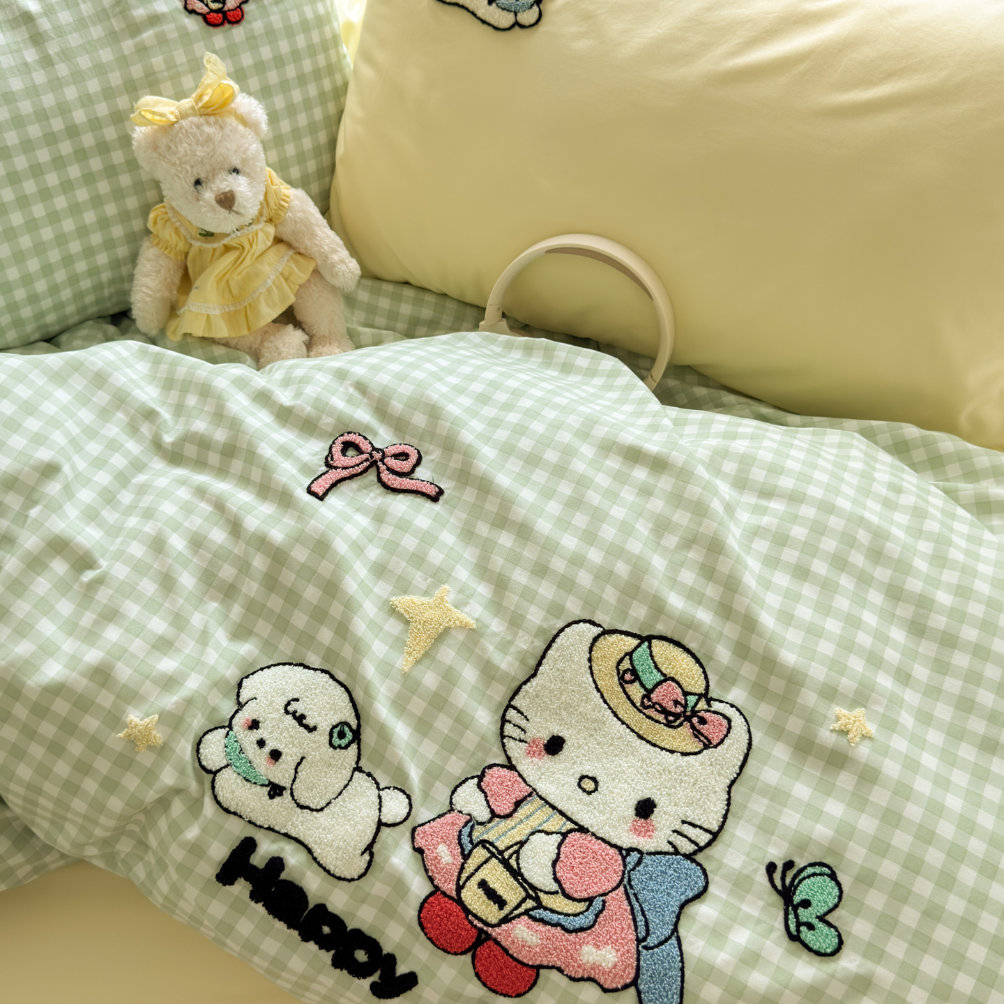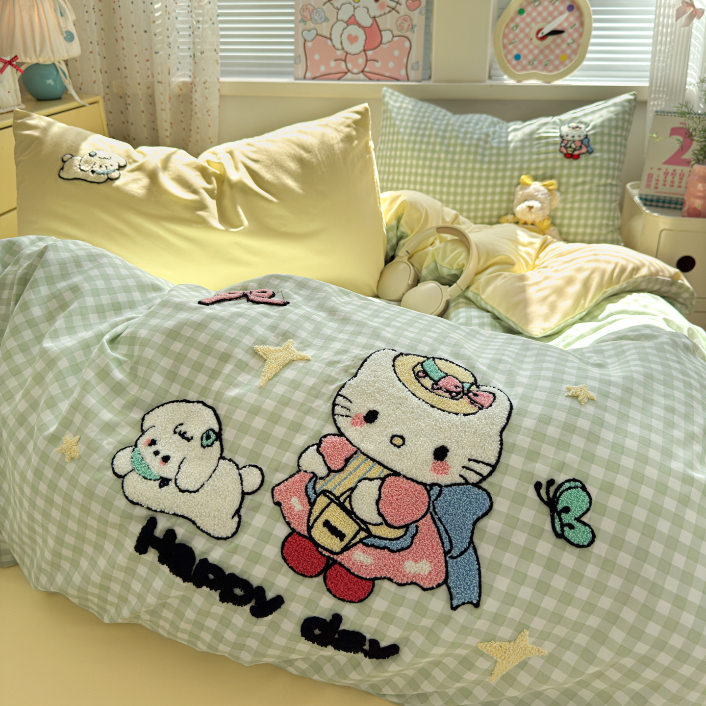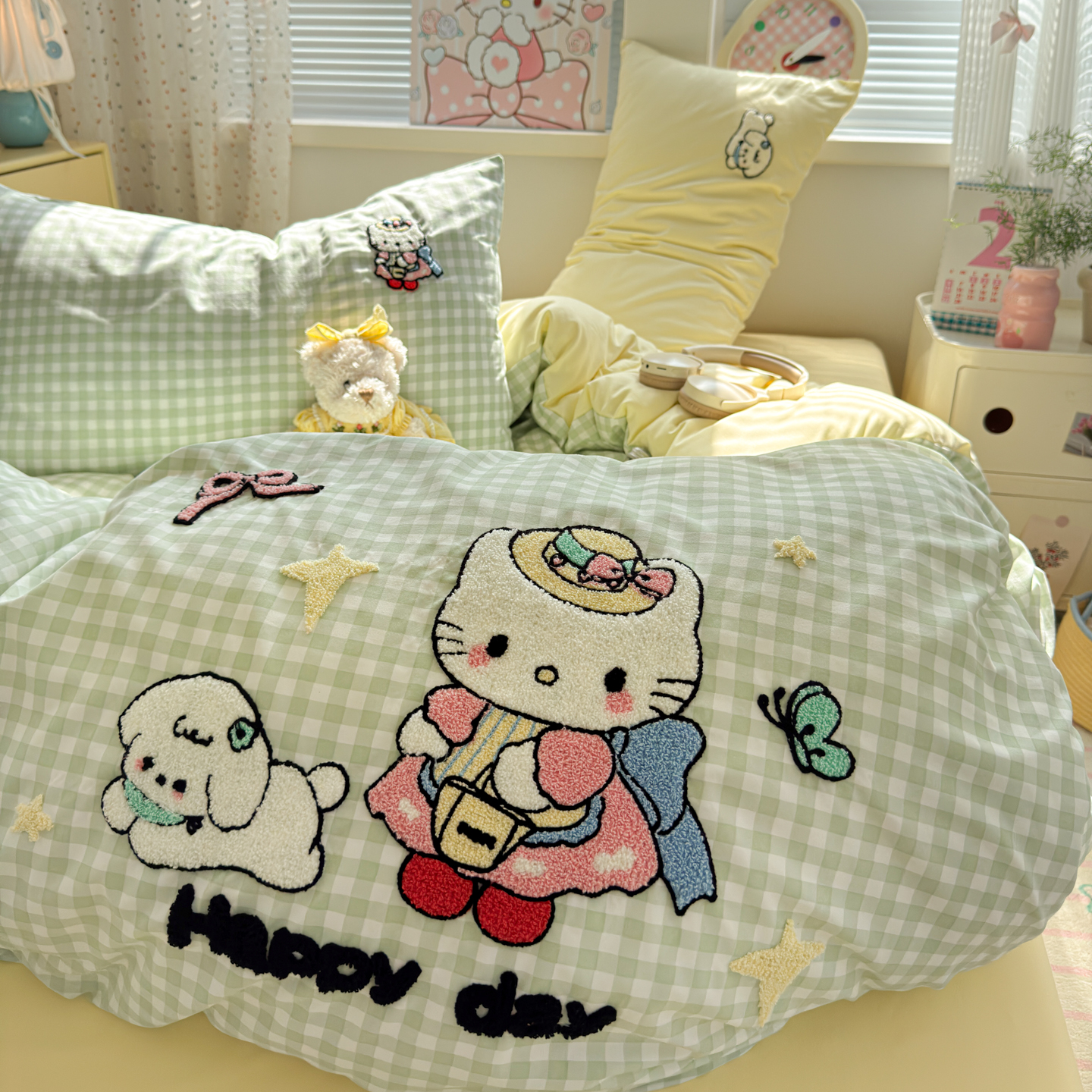 当前位置: 91家纺网 > 商品网购 > 床品套件 > 四件套 > 毛巾绣四件套 > 一霖家纺 2025新款高克重云朵棉毛巾绣印绣四件套-小清新系列-第三波 元气KT