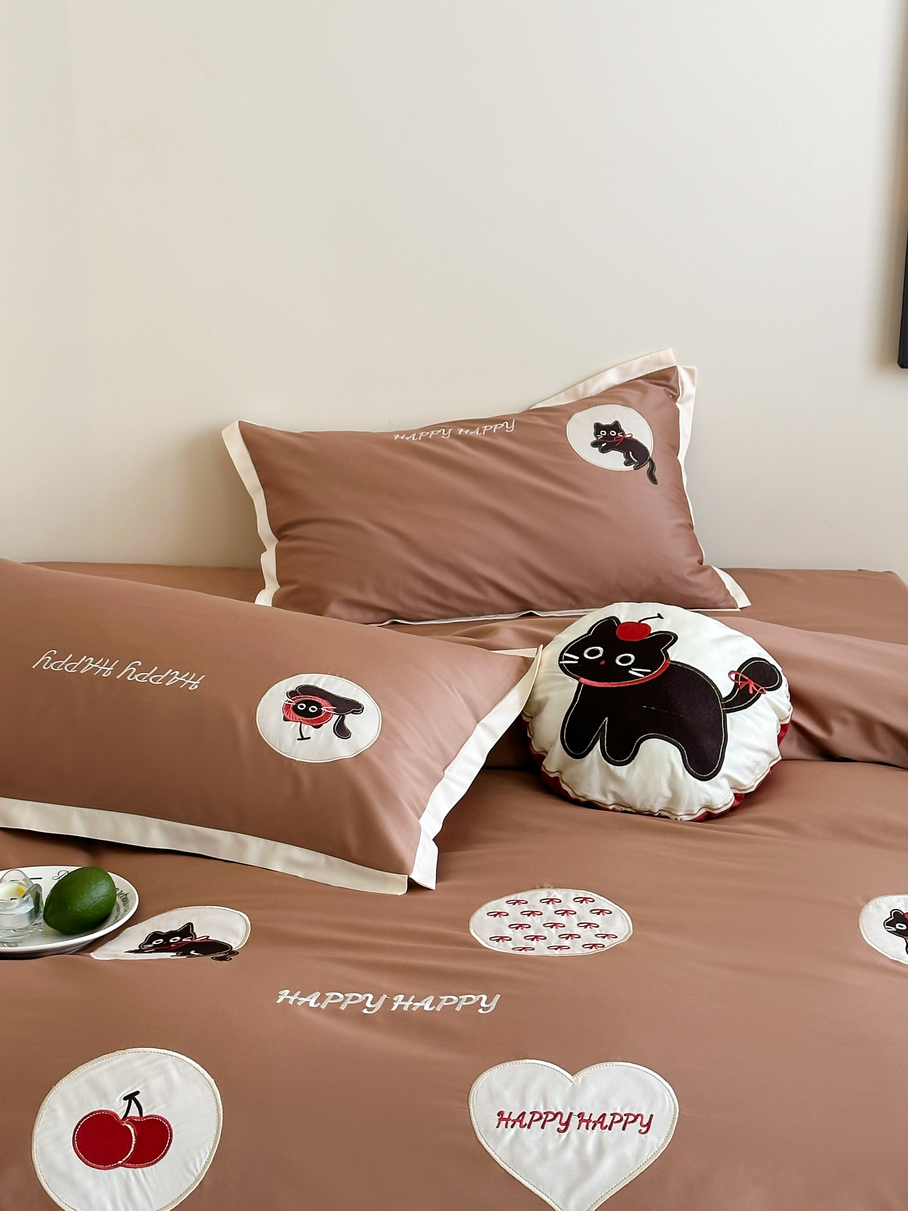 (总)紫桐 Lila lndus 2025新款50支双股长绒棉纯棉四件套,假日猫咪-粉,假日猫咪-红,假日猫咪-咖