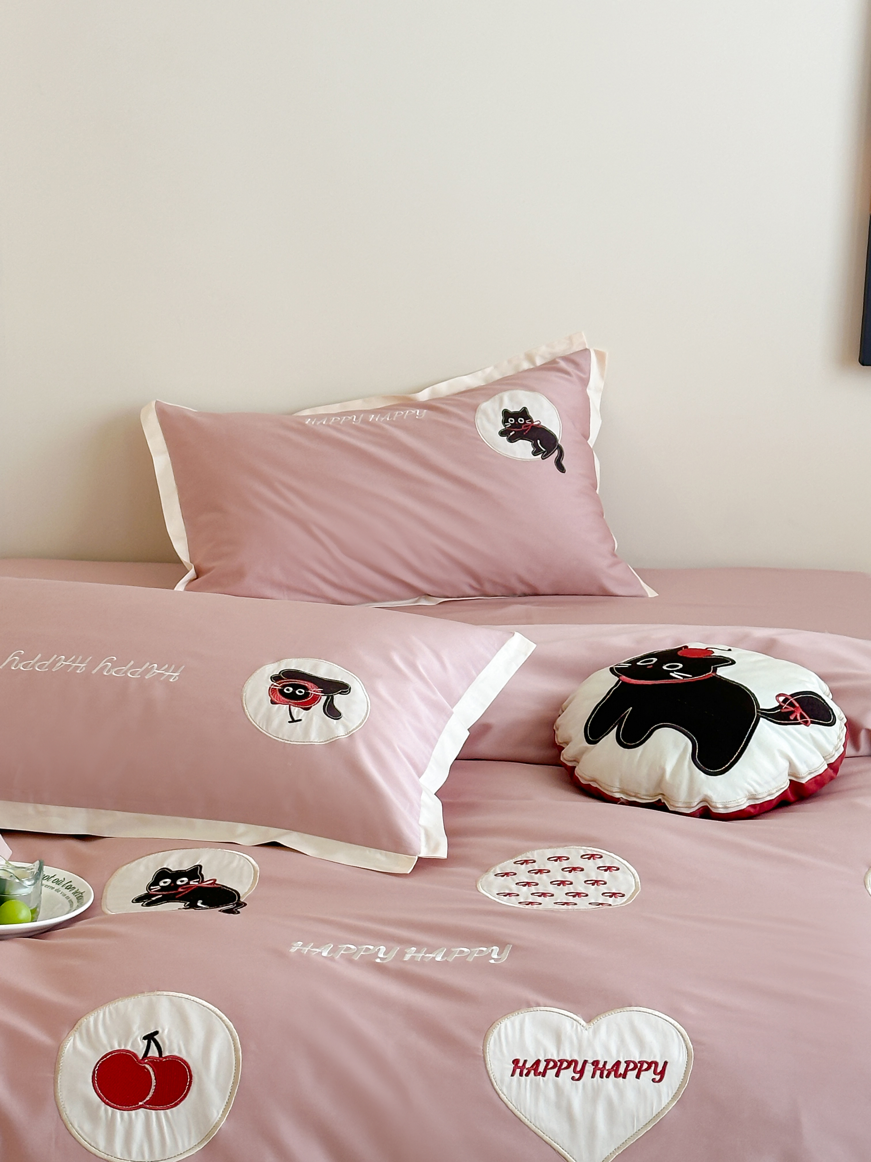 商品名称:紫桐 Lila lndus 2025新款50支双股长绒棉纯棉四件套 假日猫咪-粉