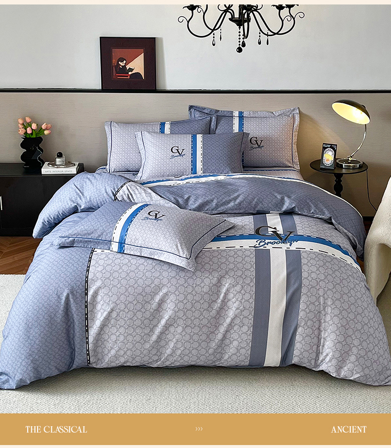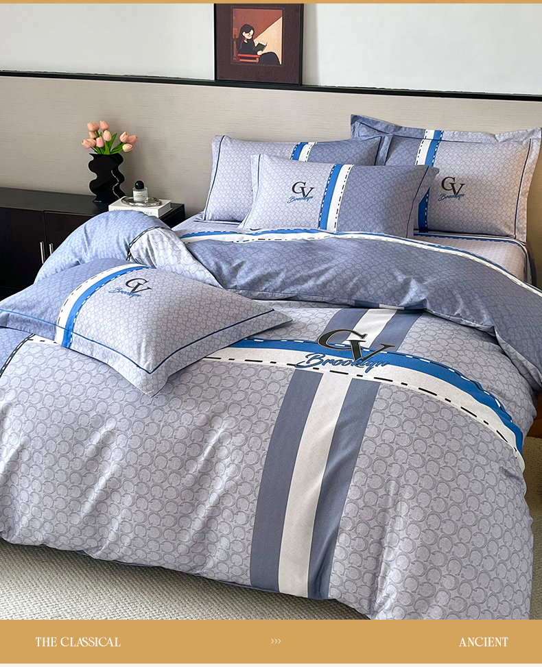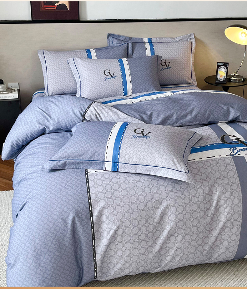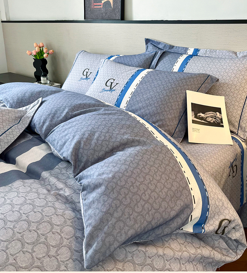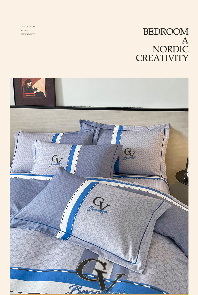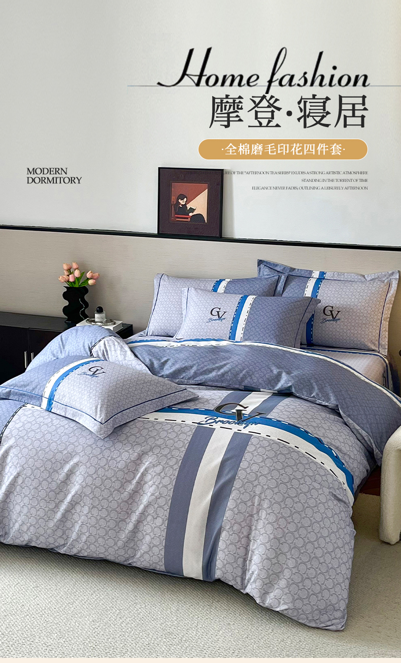 曼秀琳 2025秋冬新款全棉磨毛印花四件套 思维-兰
