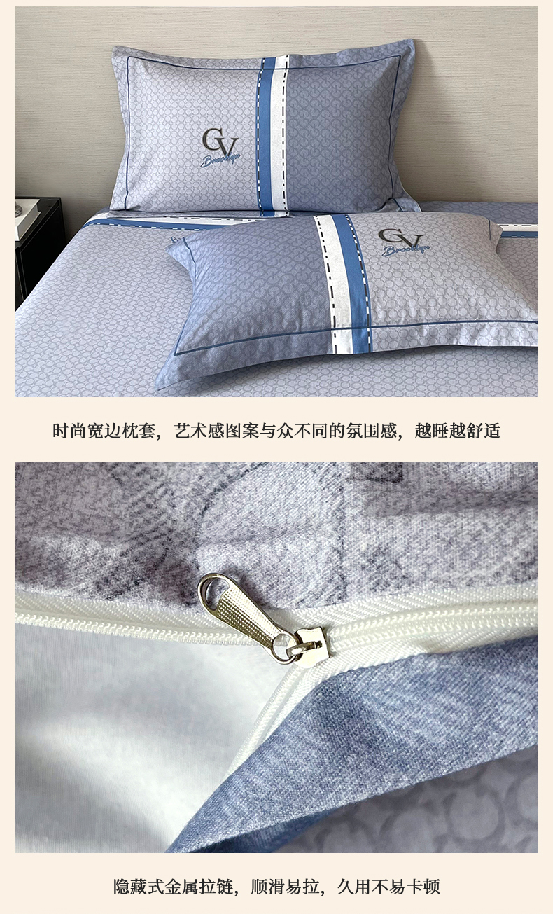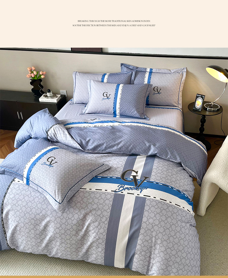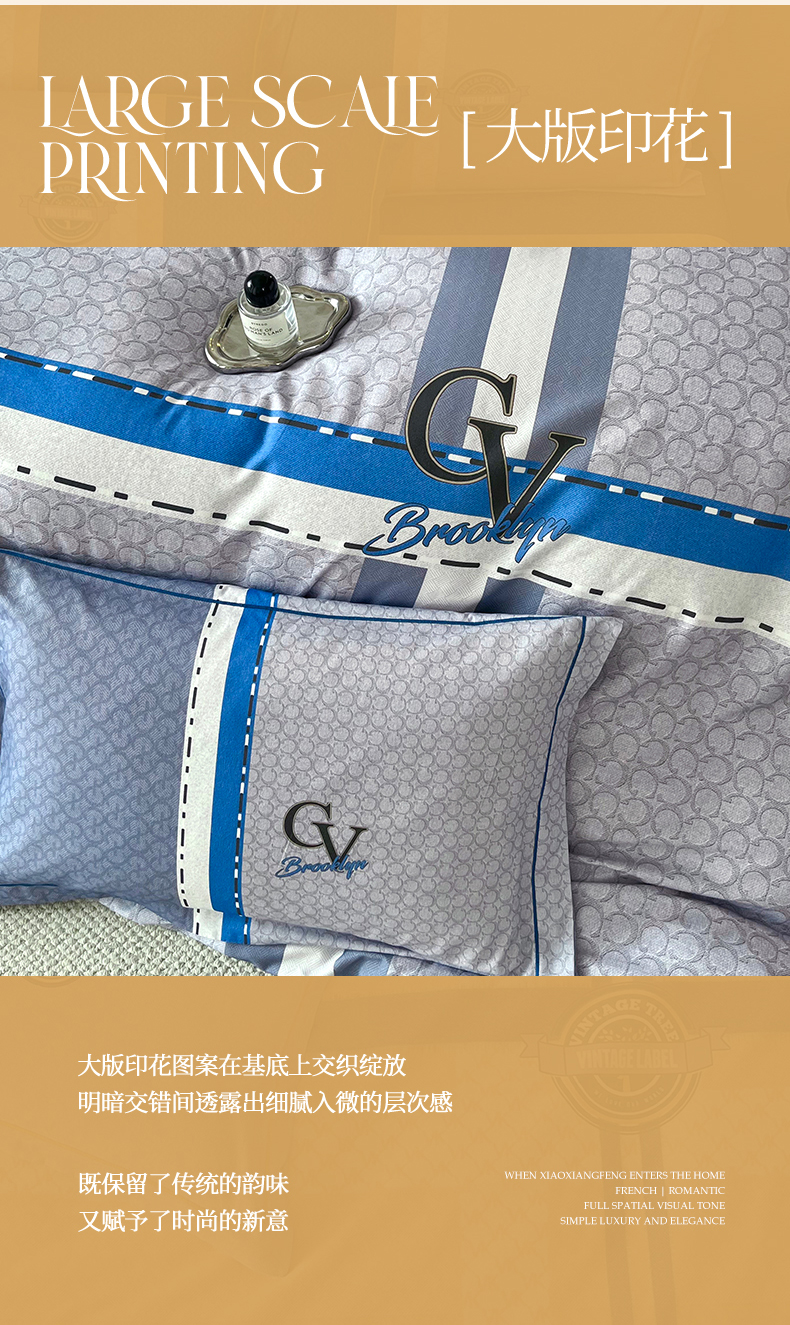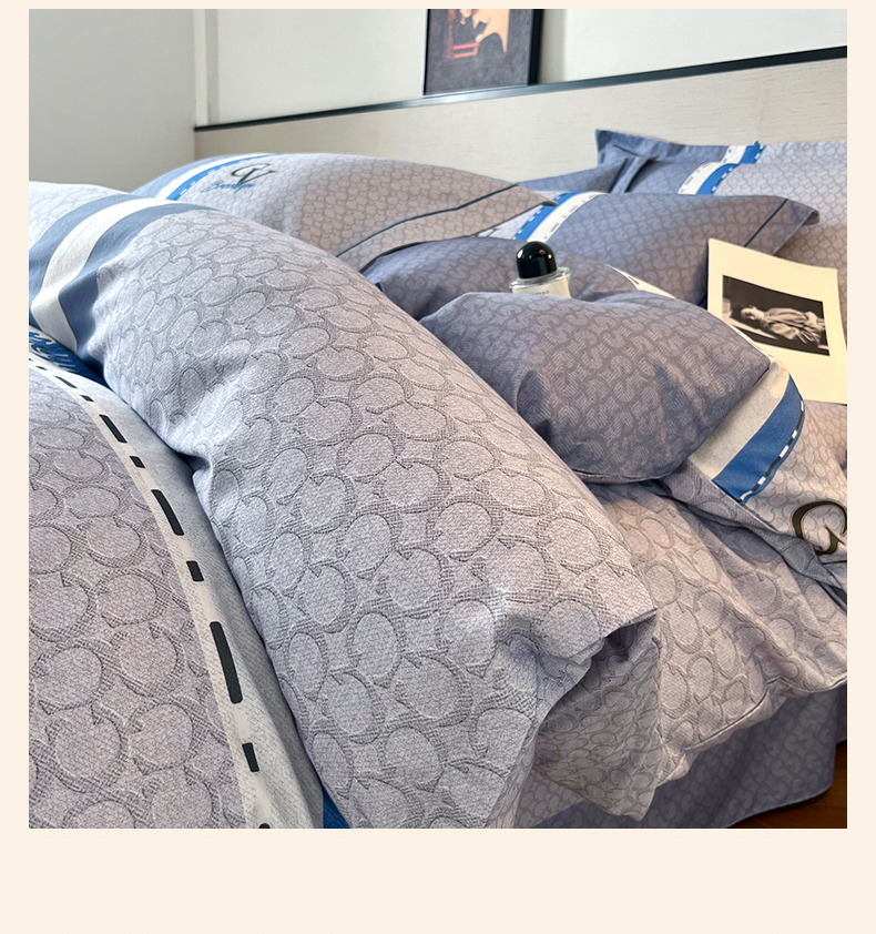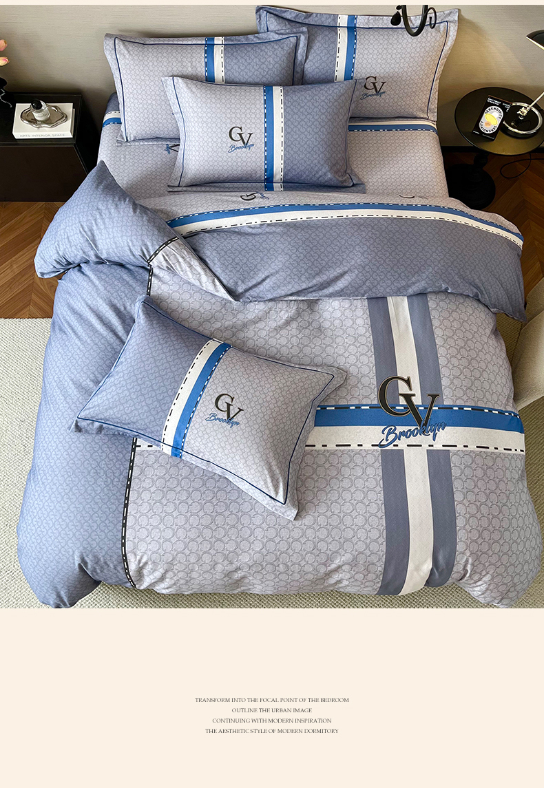 曼秀琳 2025秋冬新款全棉磨毛印花四件套 思维-兰