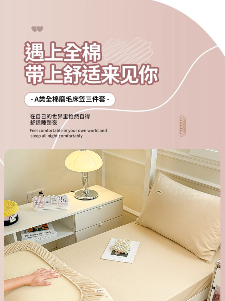 • 91家纺网 家纺一手货源 找家纺 眠博士 2025新款纯色全棉纯棉磨毛学生床床笠单品床笠床笠单件 磨毛床笠-陶瓷杏