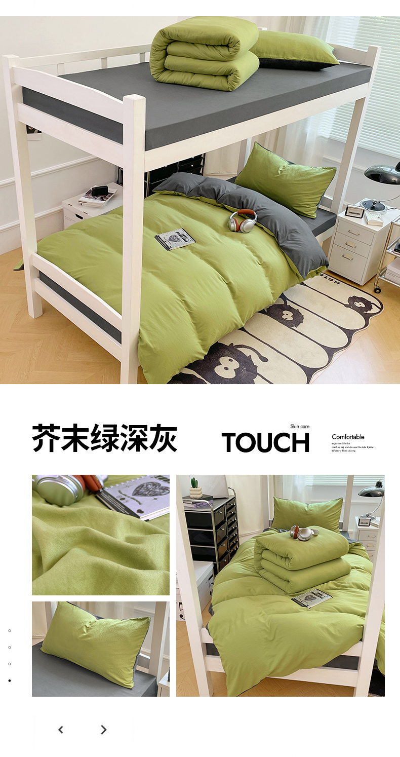 当前位置: 91家纺网 > 商品网购 > 床品套件 > 四件套 > 水洗棉四件套 > 梦卓家纺 2025新款学生宿舍上下铺纯色水洗棉三件套 芥末绿深灰
