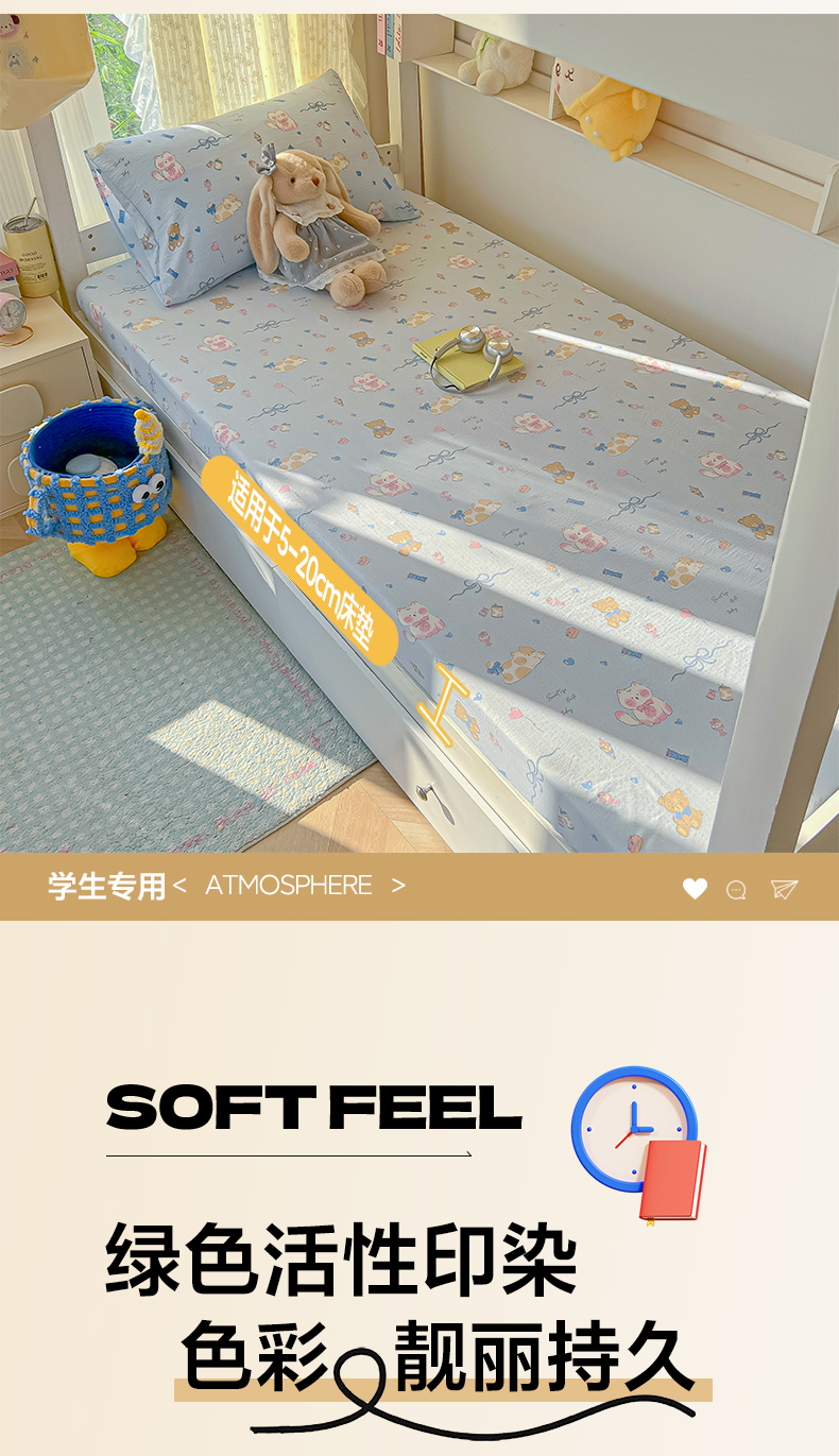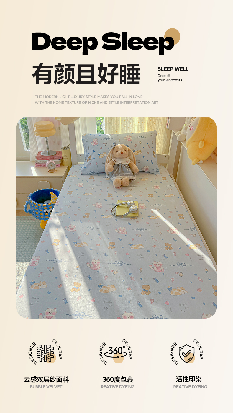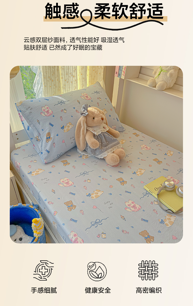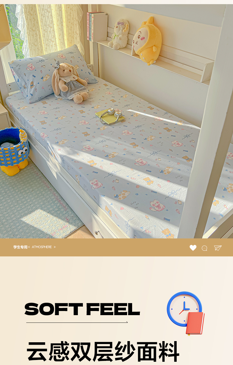 • 91家纺网 家纺一手货源 找家纺 韩巢家纺 2025新款双层纱学生宿舍寝室床笠单件单床笠上下铺防滑床单床垫套 小猫时光篮