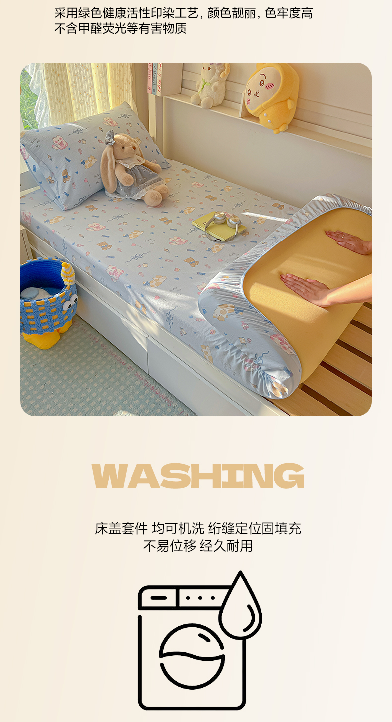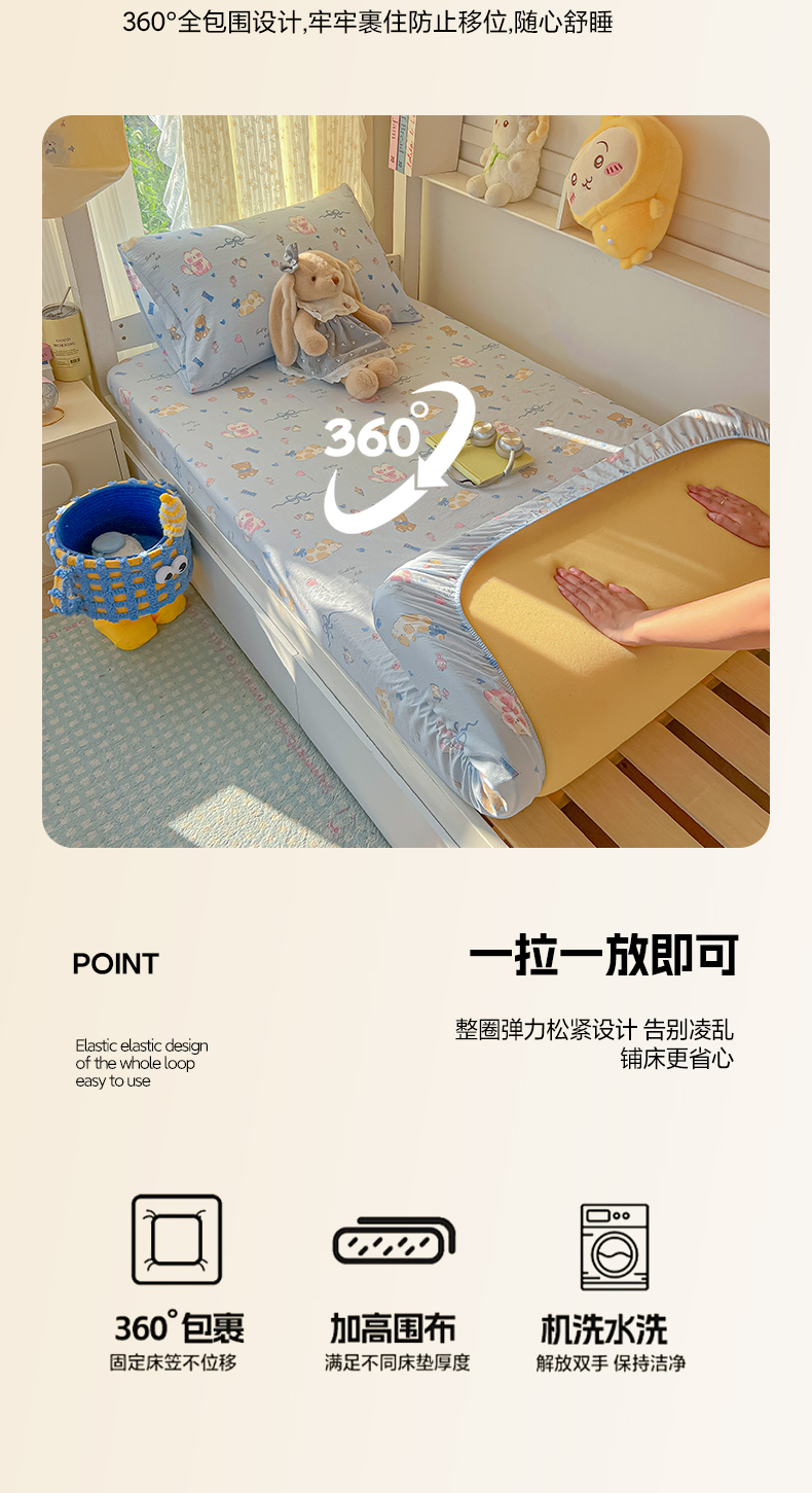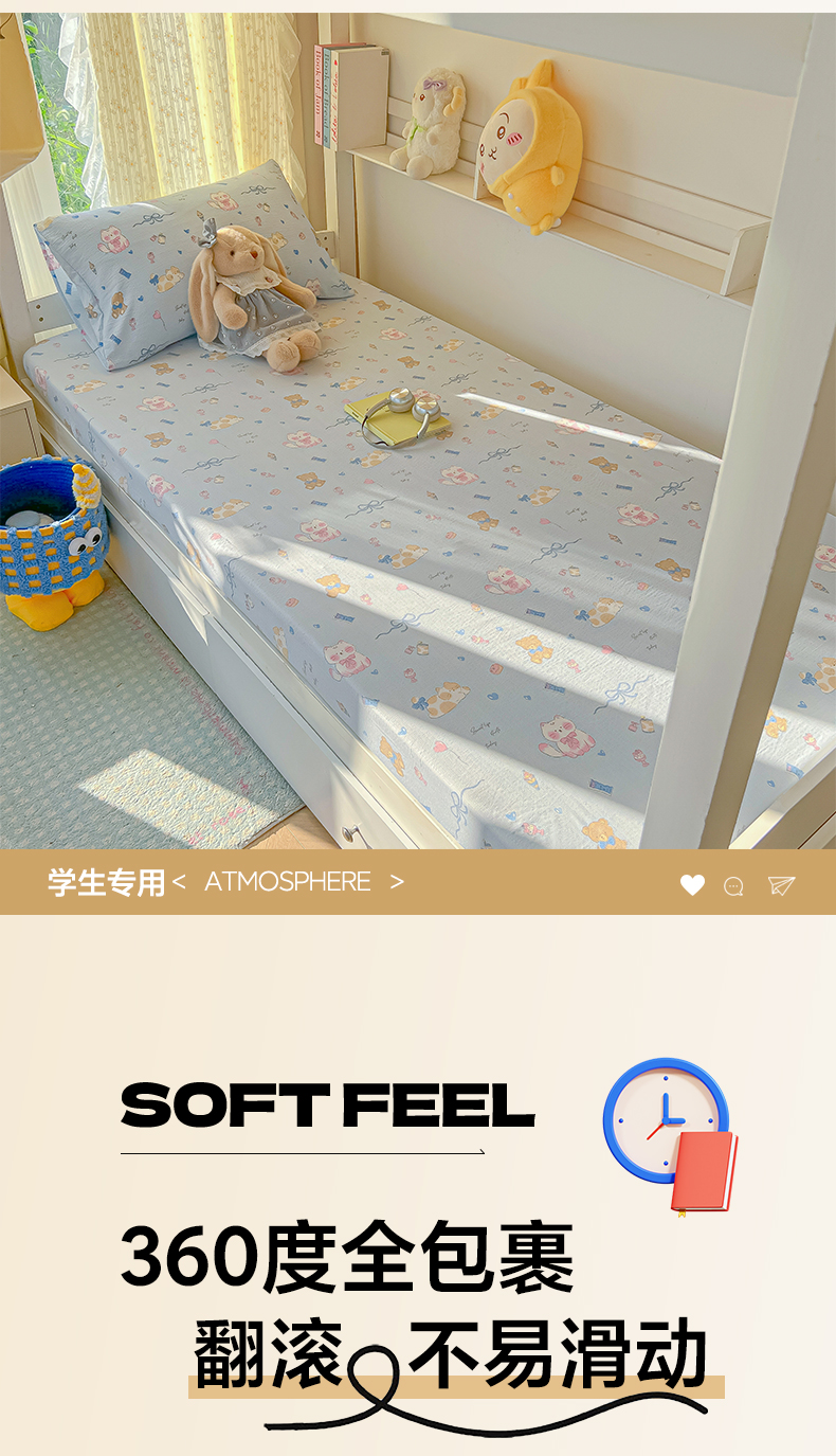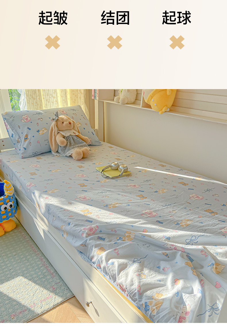 • 91家纺网 家纺一手货源 找家纺 韩巢家纺 2025新款双层纱学生宿舍寝室床笠单件单床笠上下铺防滑床单床垫套 小猫时光篮