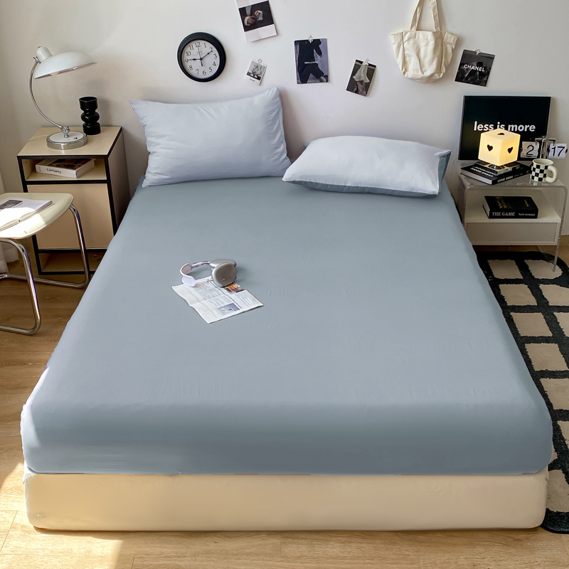 商品名称:夜笙家纺 2025新款纯色水洗棉双层纱单品床笠 天空蓝