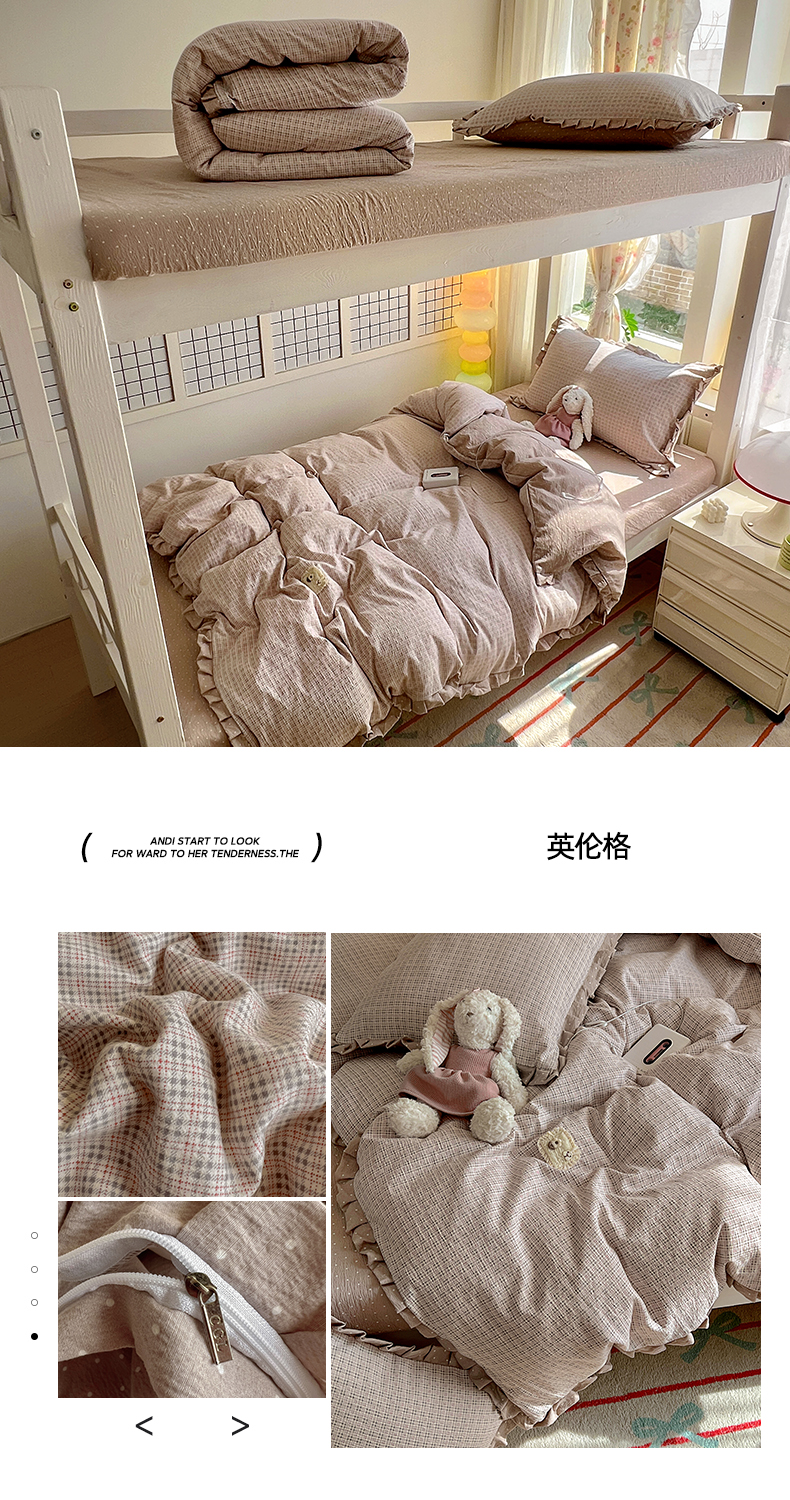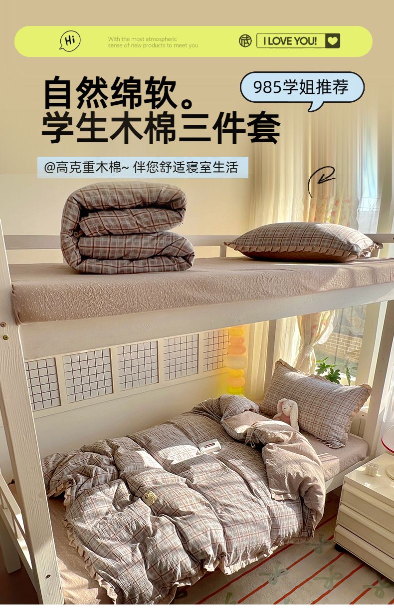 当前位置: 91家纺网 > 商品网购 > 床品套件 > 三件套 > 春光里 2025新款高克重皱皱纱学生床三件套 苏格兰格