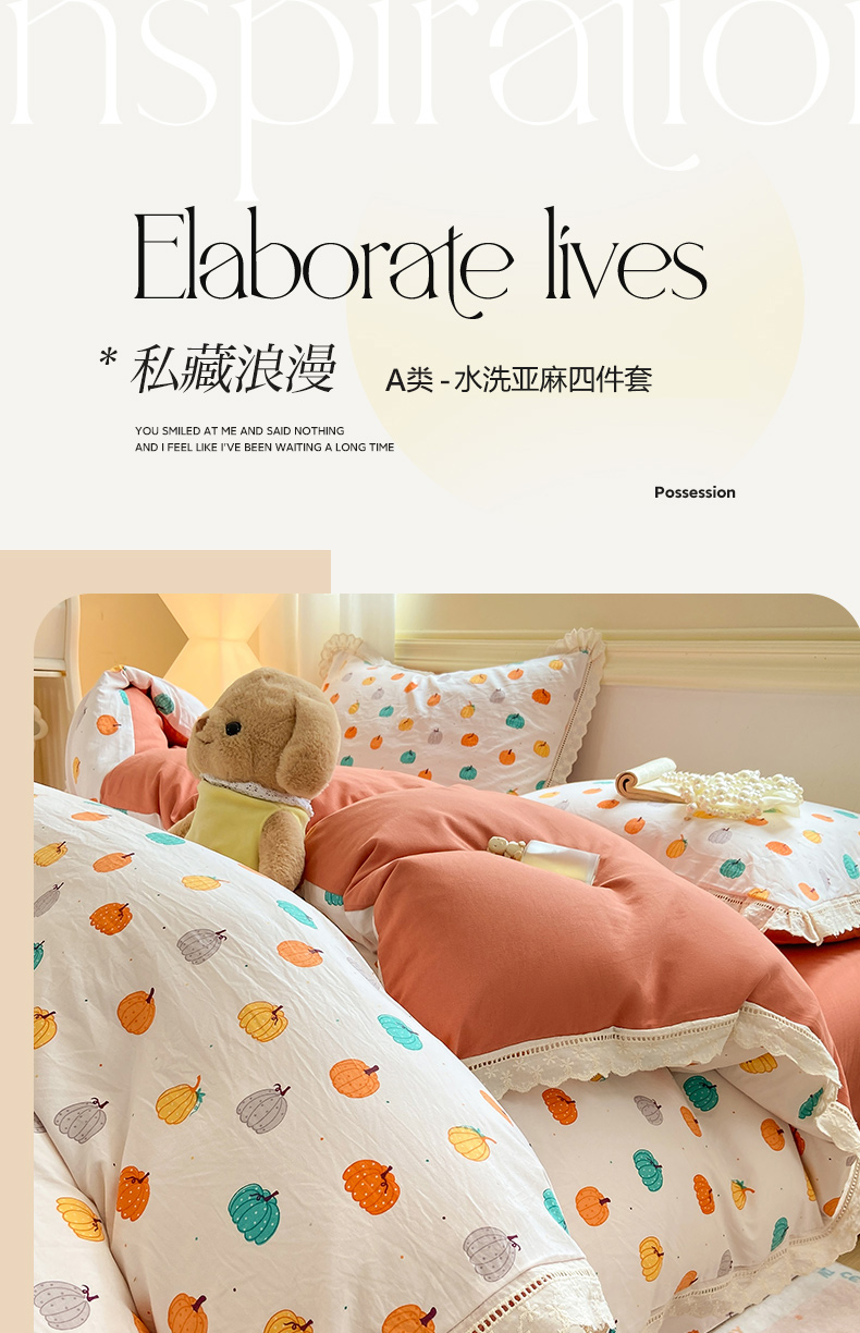 (总)大麦家纺 2025新款水洗亚麻花边四件套,粉黛佳人,风木槿咖,浮生花语,海棠花溪,花颜,锦瑟,满园花开,山花浪漫,颂青时,香榭花园,玉茗