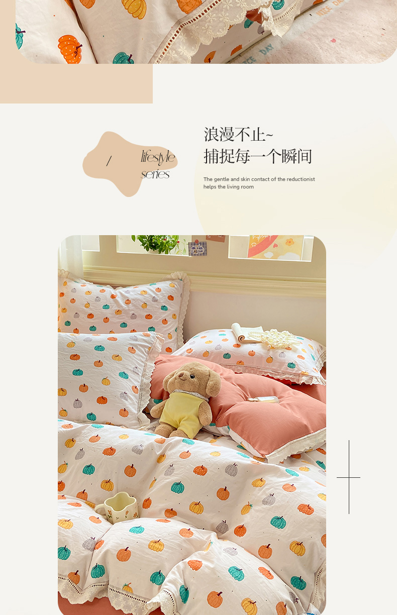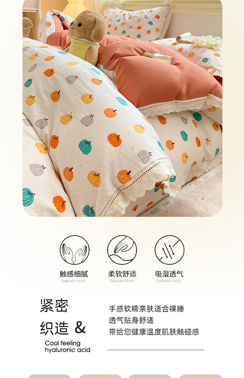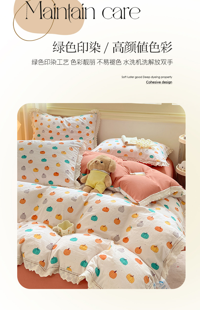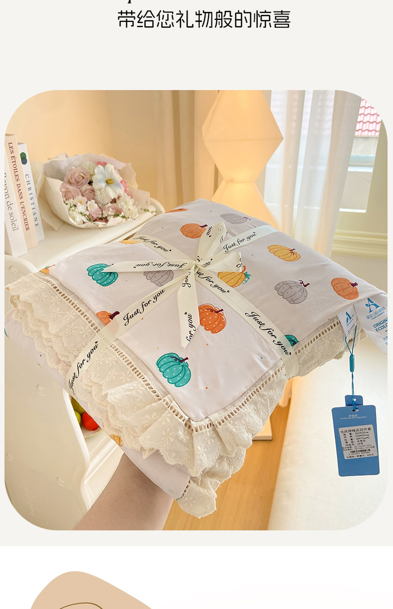 大麦家纺 25年新款高克重印花水洗棉花边四件套 童话小南