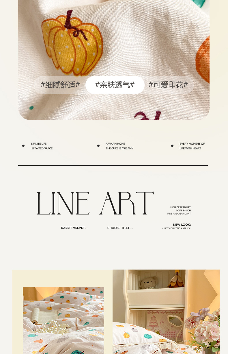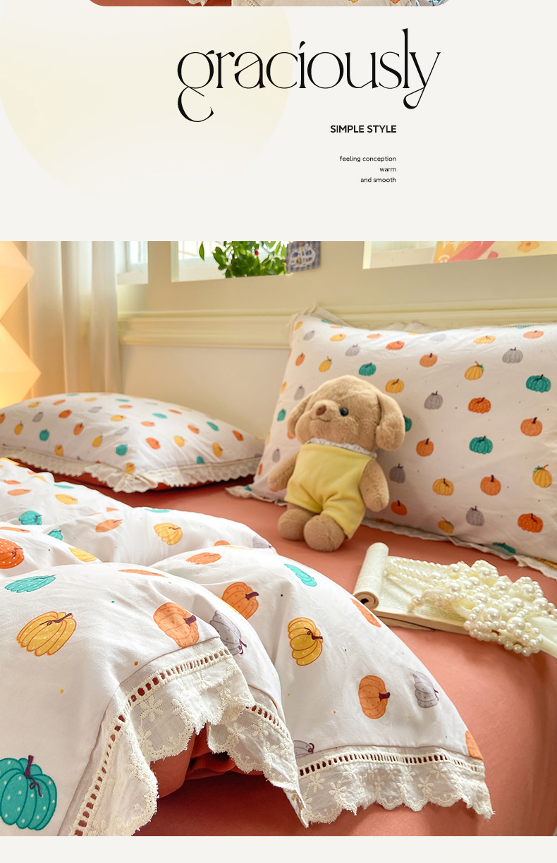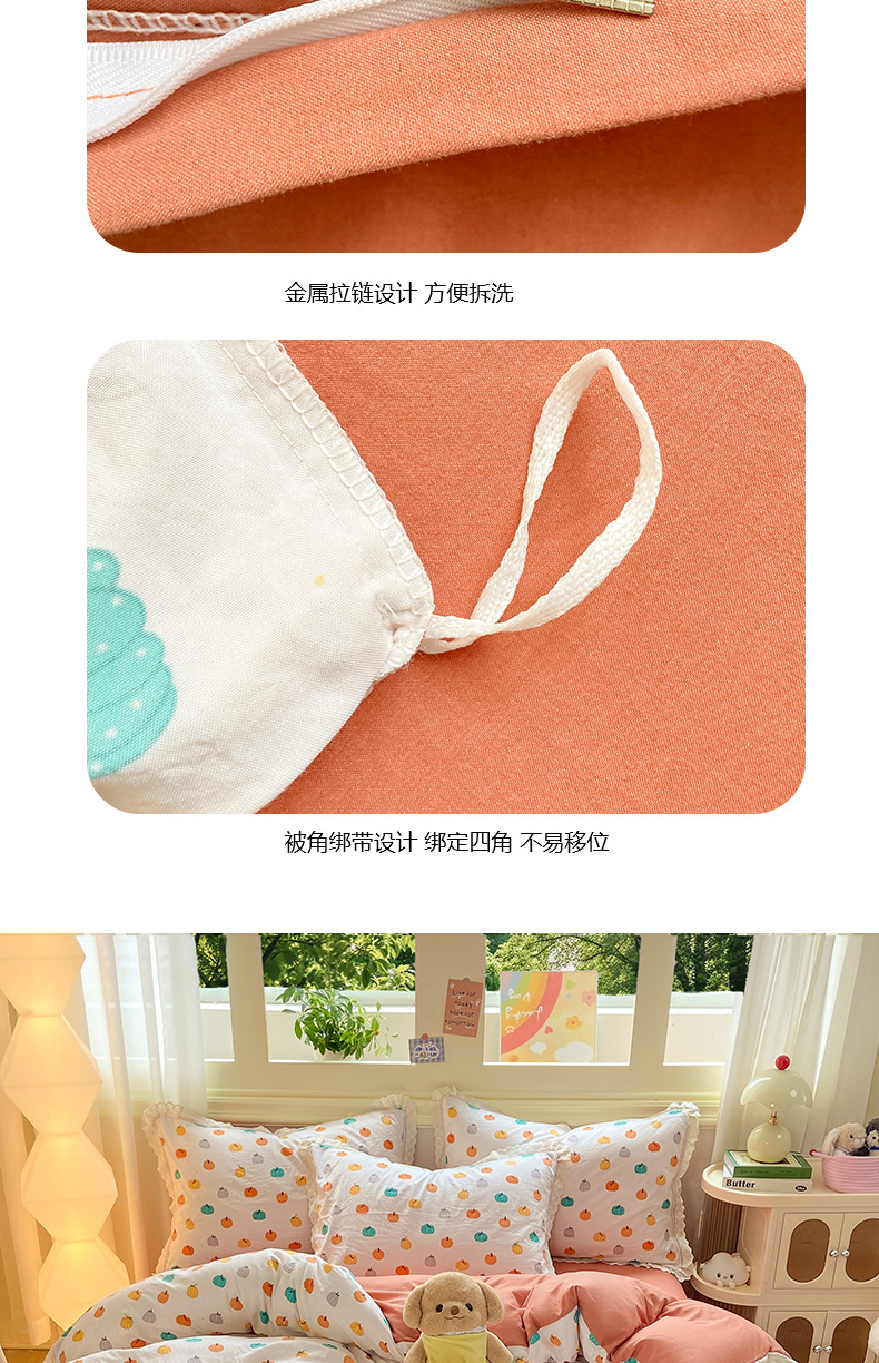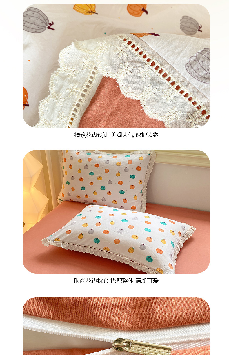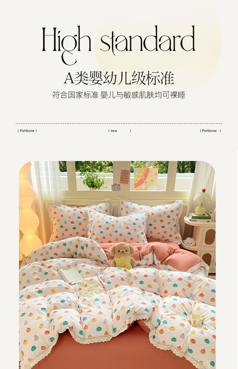 大麦家纺 25年新款高克重印花水洗棉花边四件套 童话小南