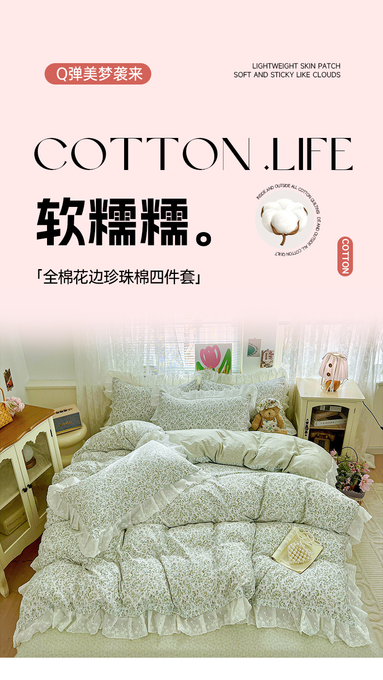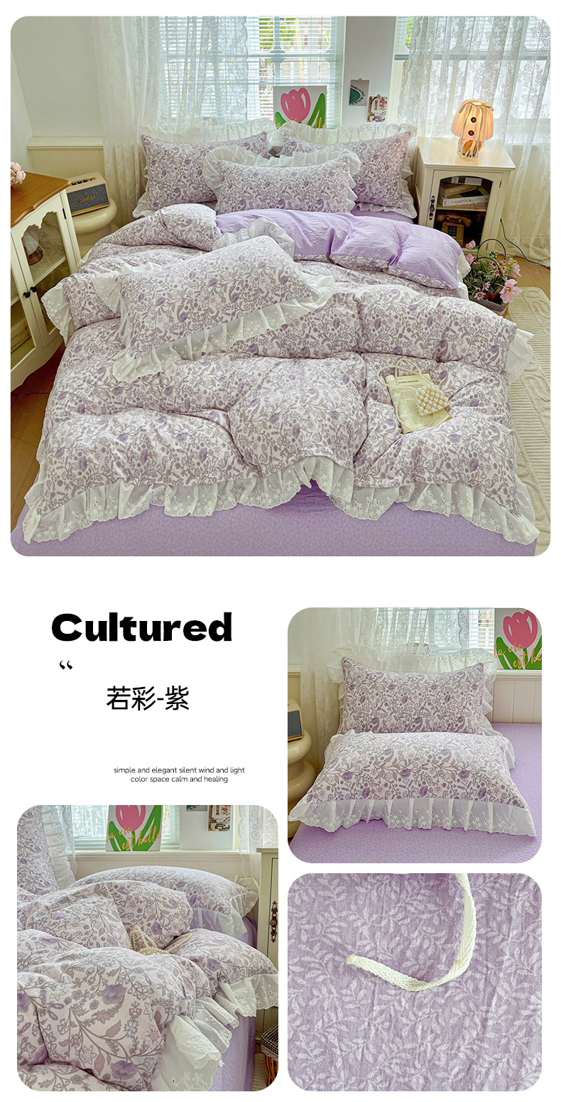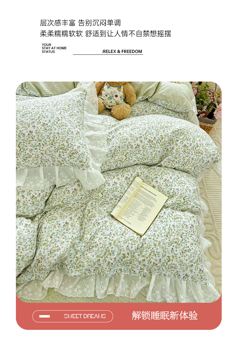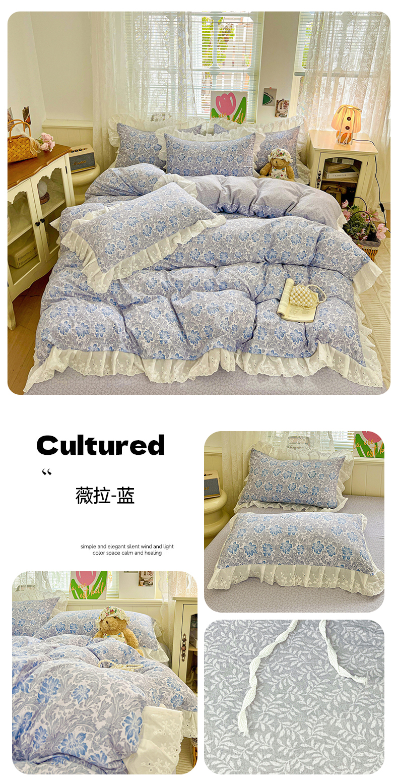 商品名称:赛丽雅 2025新款花边韩版水洗珍珠棉四件套 薇拉-蓝
